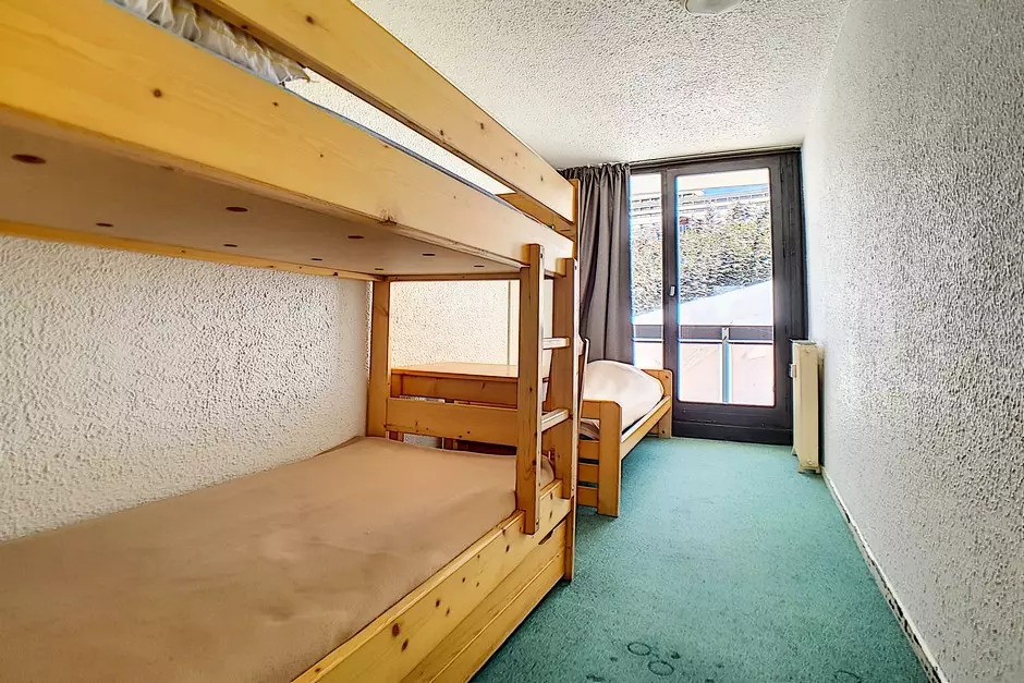 Chambre 1 : 1 lit 1 personne et 2 lits simples superposés.
