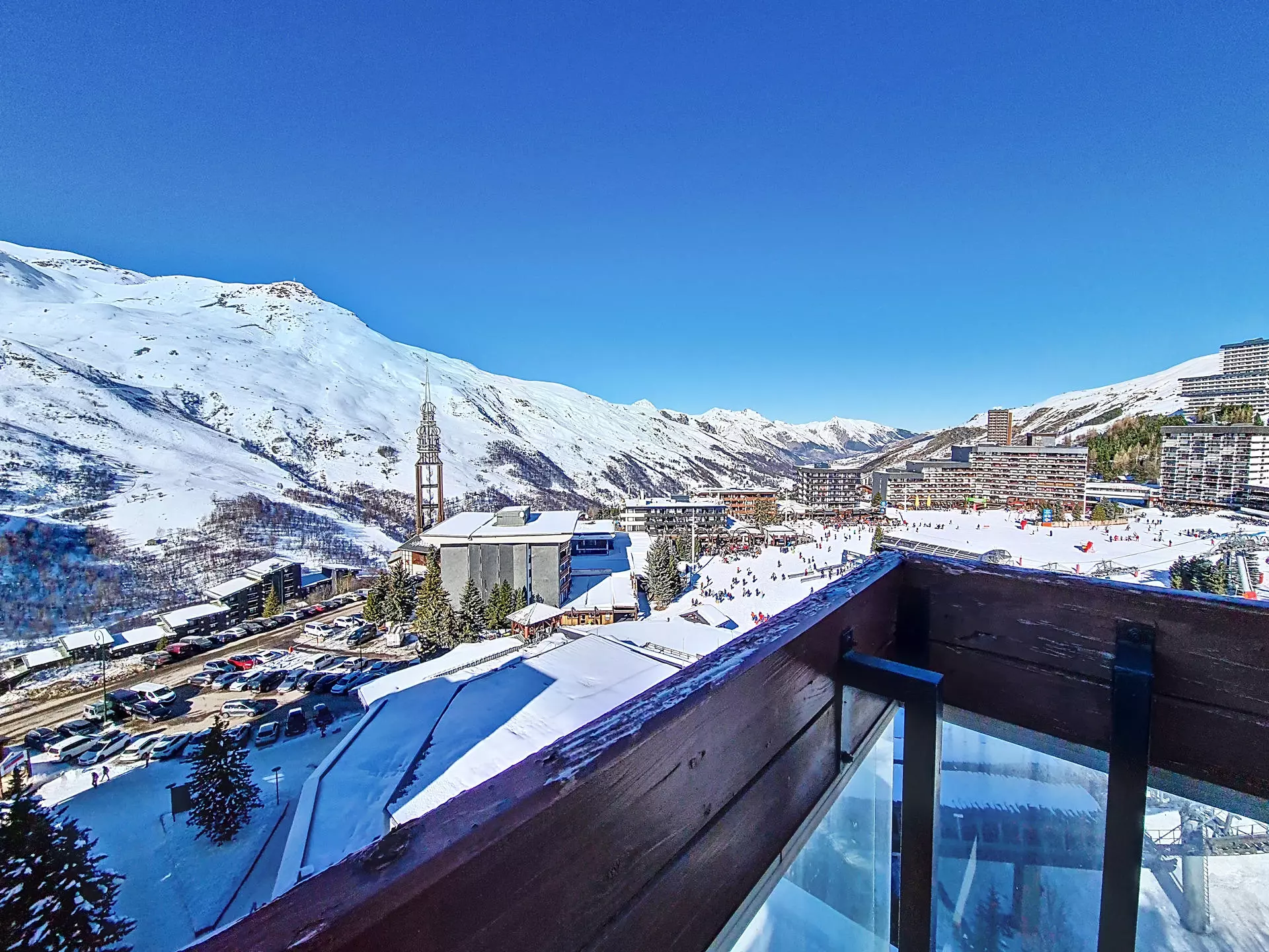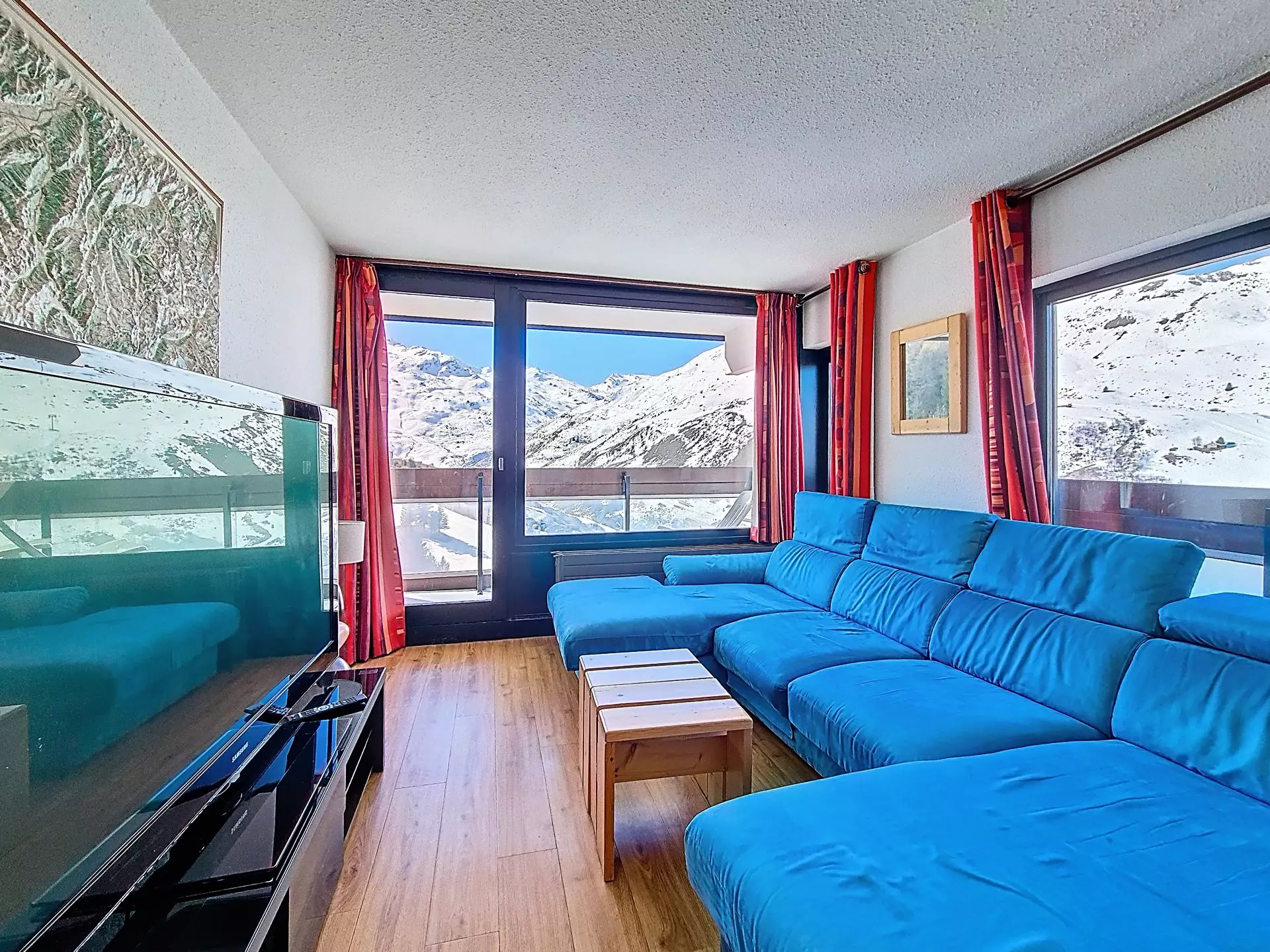 Appartement de 3 pièces, très lumineux. Il fait 54 m² pour 6 personnes. Il est situé au 7ème étage et possède un balcon orienté Sud.