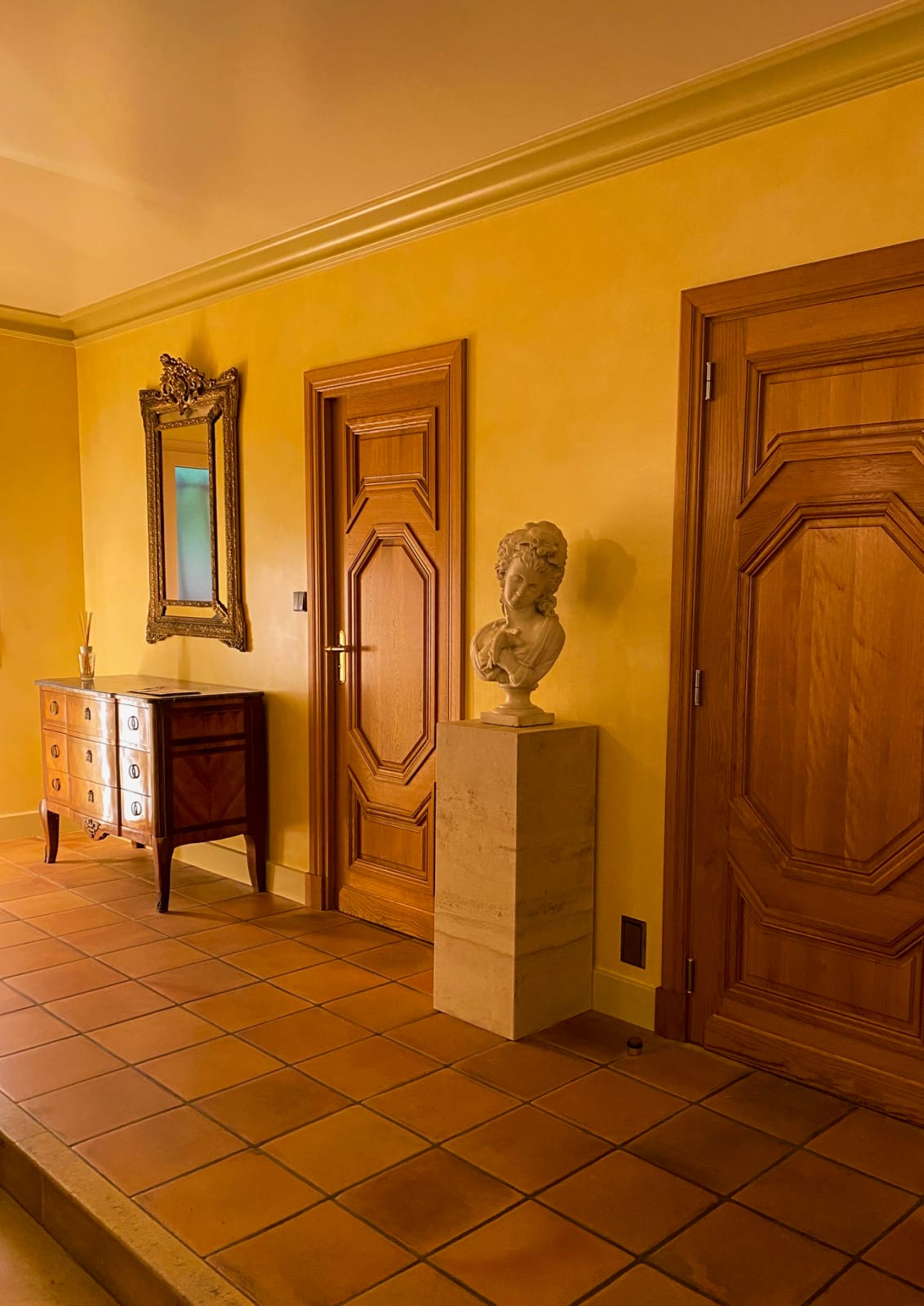 Chambre, rez-de-chaussée. La chambre propose un lit double 160x200. Salle de bain privée avec douche à l’italienne, toilettes séparées dans la salle de bain. La chambre est équipée d’un grand dressing.