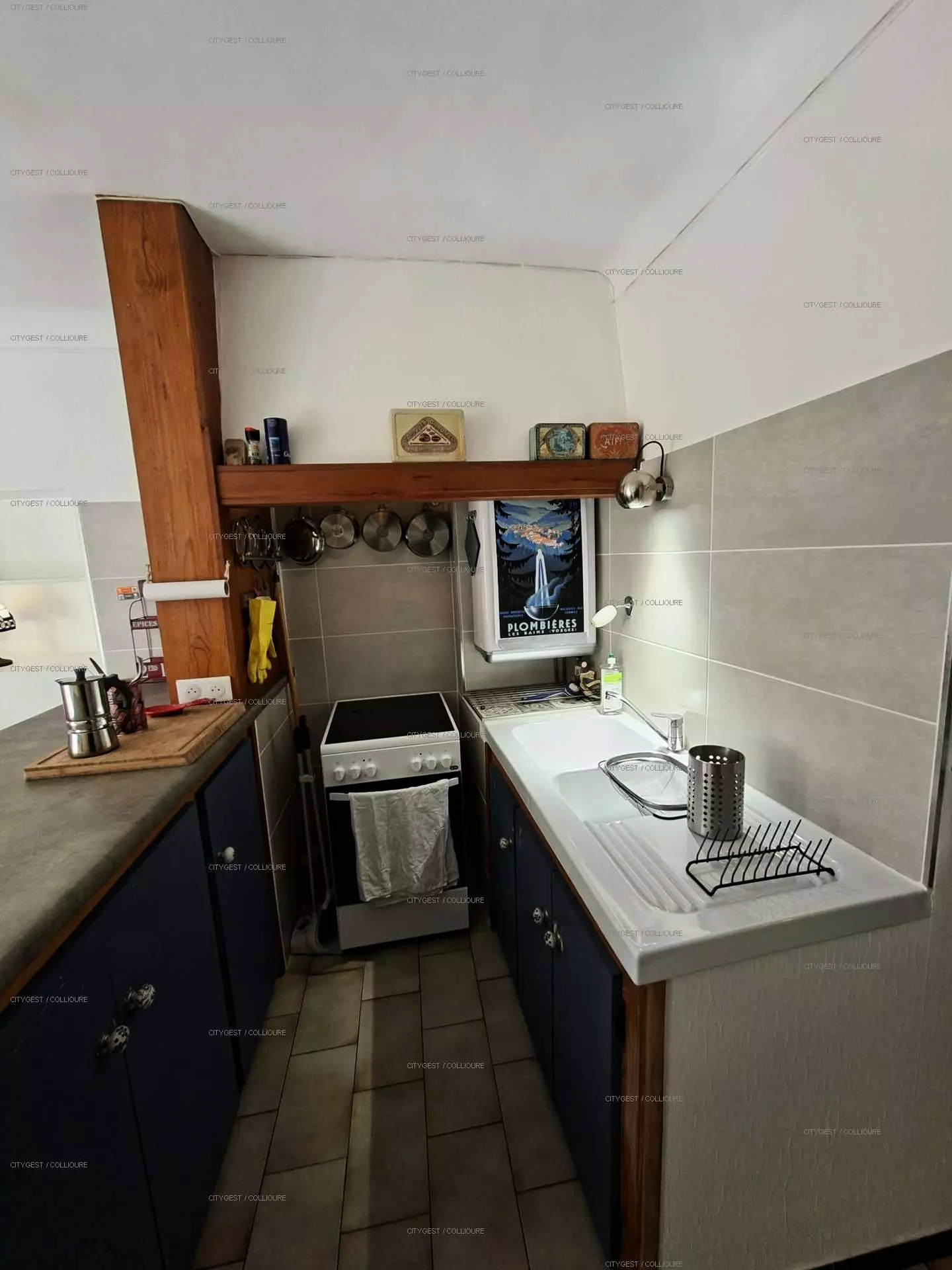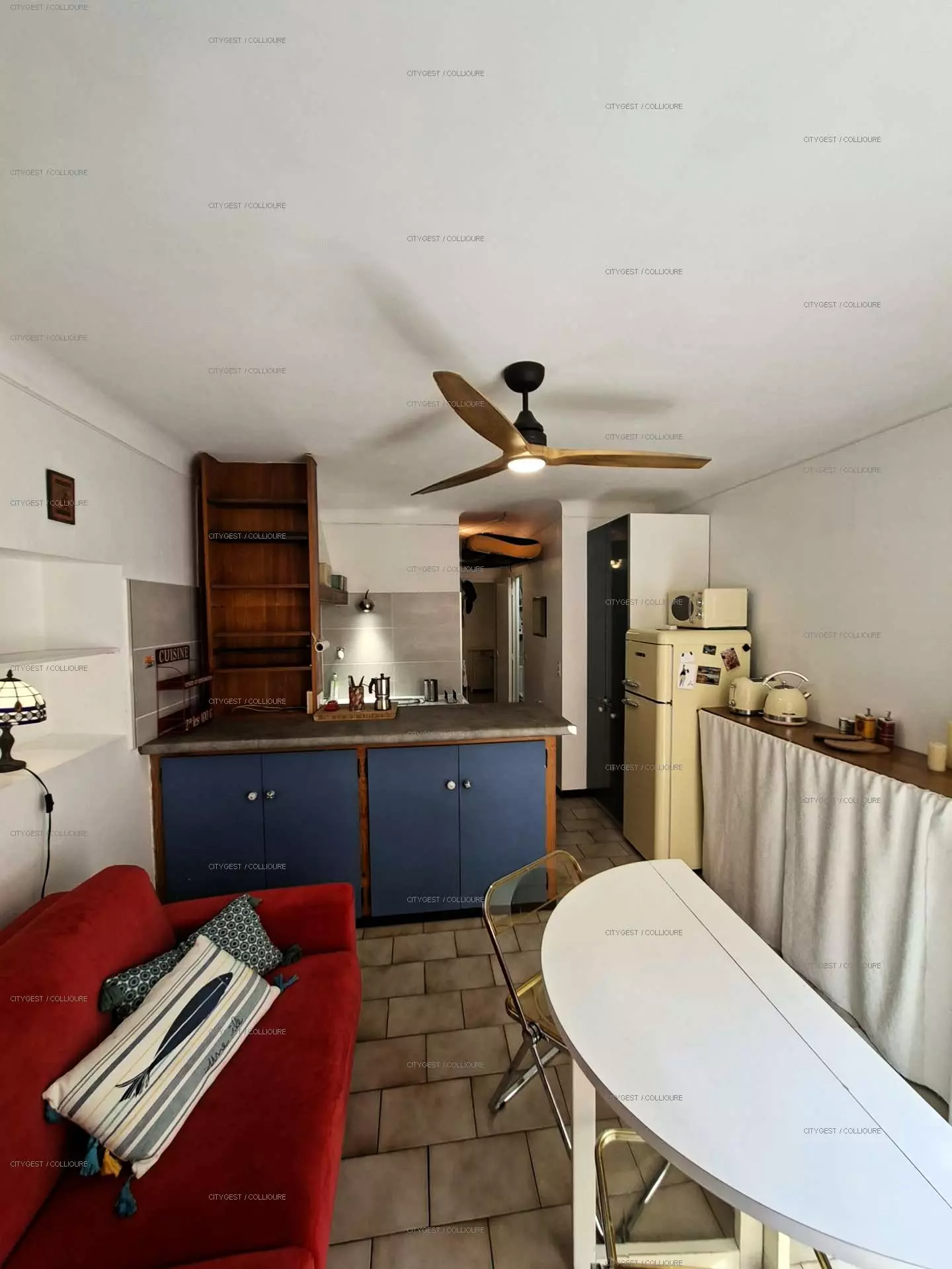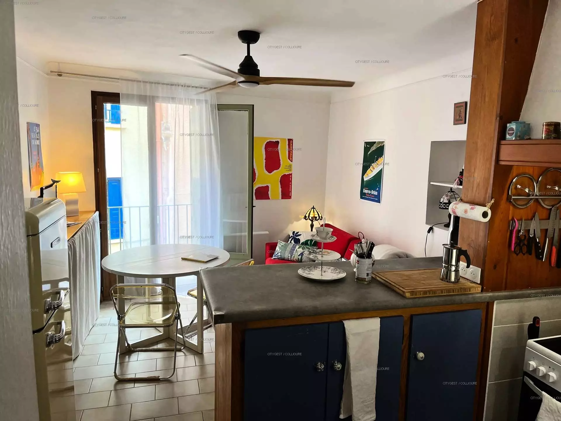 4TOAU8-1 Idéalement situé rue de la Tour d'Auvergne secteur FAUBOURG à Collioure - A environ 100 m de la plage et des commerces - charmant appartement Appartement situé au 1er étage d'un immeuble ancien typique, comprenant un salon-séjour avec canapé et un coin cuisine équipée (gazinière éléctrique plaques vitrocéramique et four électrique, micro-ondes réfrigérateur-congélateur), une chambre avec un lit de 150 cm , une salle d'eau-WC et un balcon. Wifi privée.