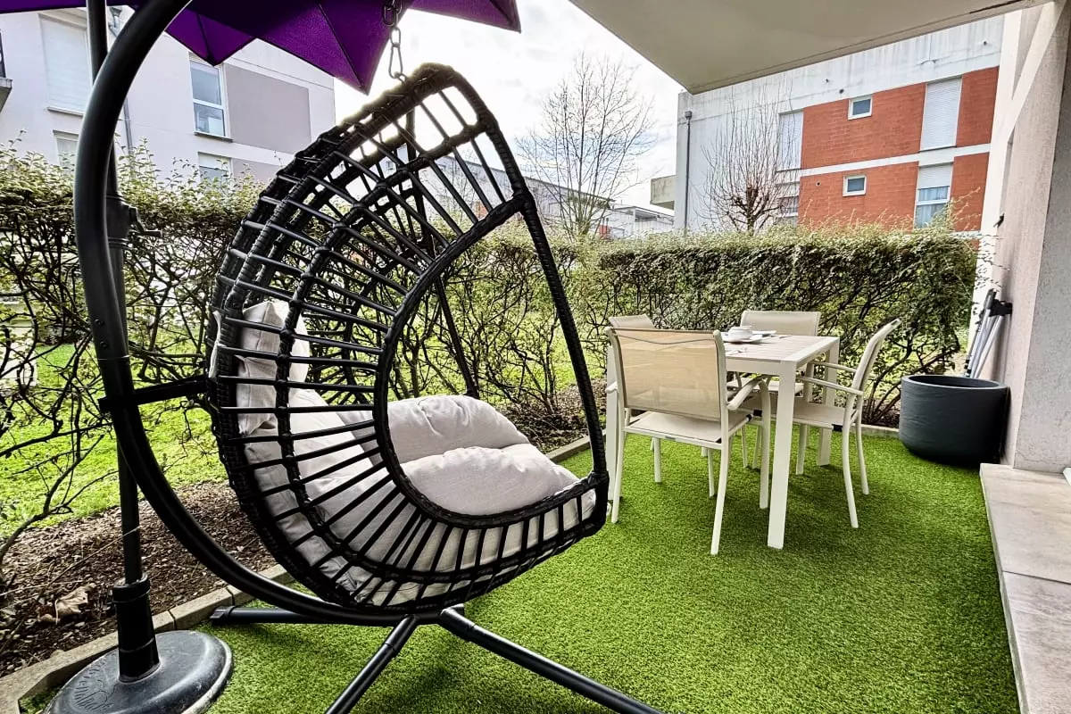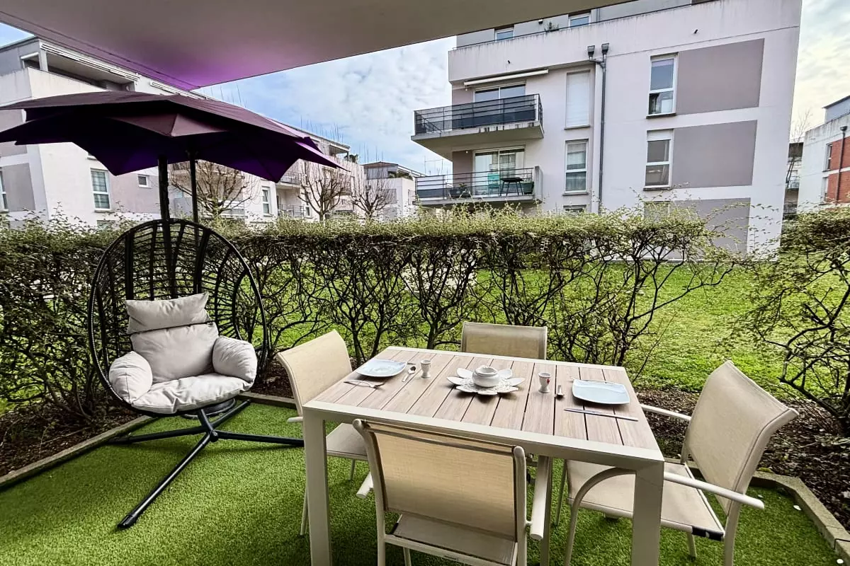 Ce logement baigné de lumière dispose d'une belle terrasse privée offrant une vue dégagée, parfaite pour vos moments de détente après une journée de découvertes alsaciennes.