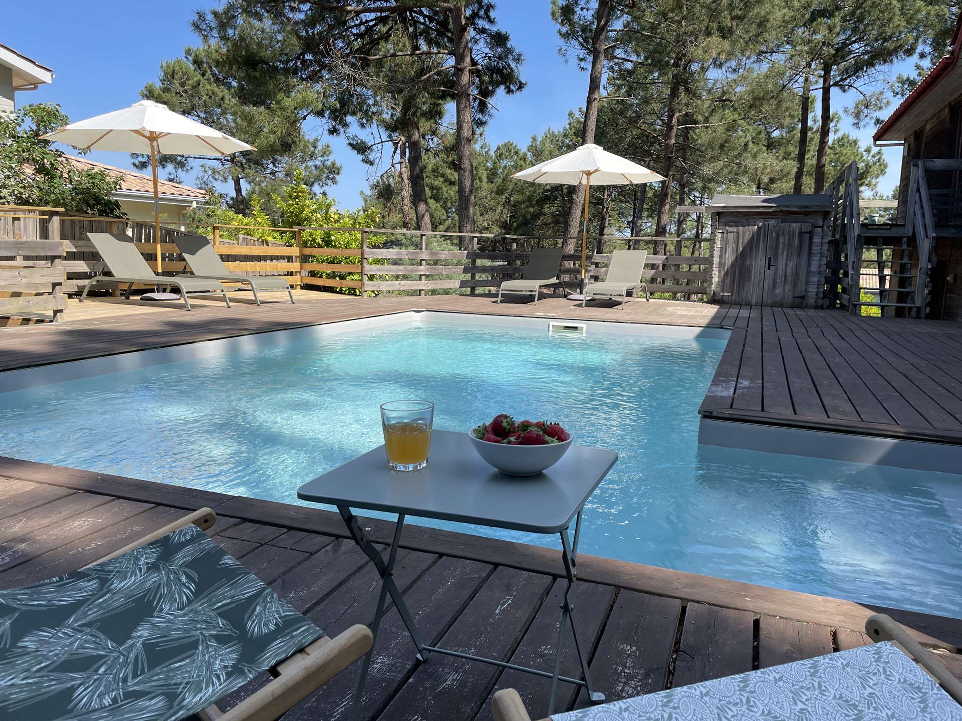 Vous bénéficierez d’une piscine privée sécurisée par un rideau électrique, idéale pour allier confort et sérénité. Un lieu parfait pour des vacances entre espace, nature et tranquillité à Lacanau Océan en étant à 10 minutes de la plage par la piste cyclable et proche des golfs