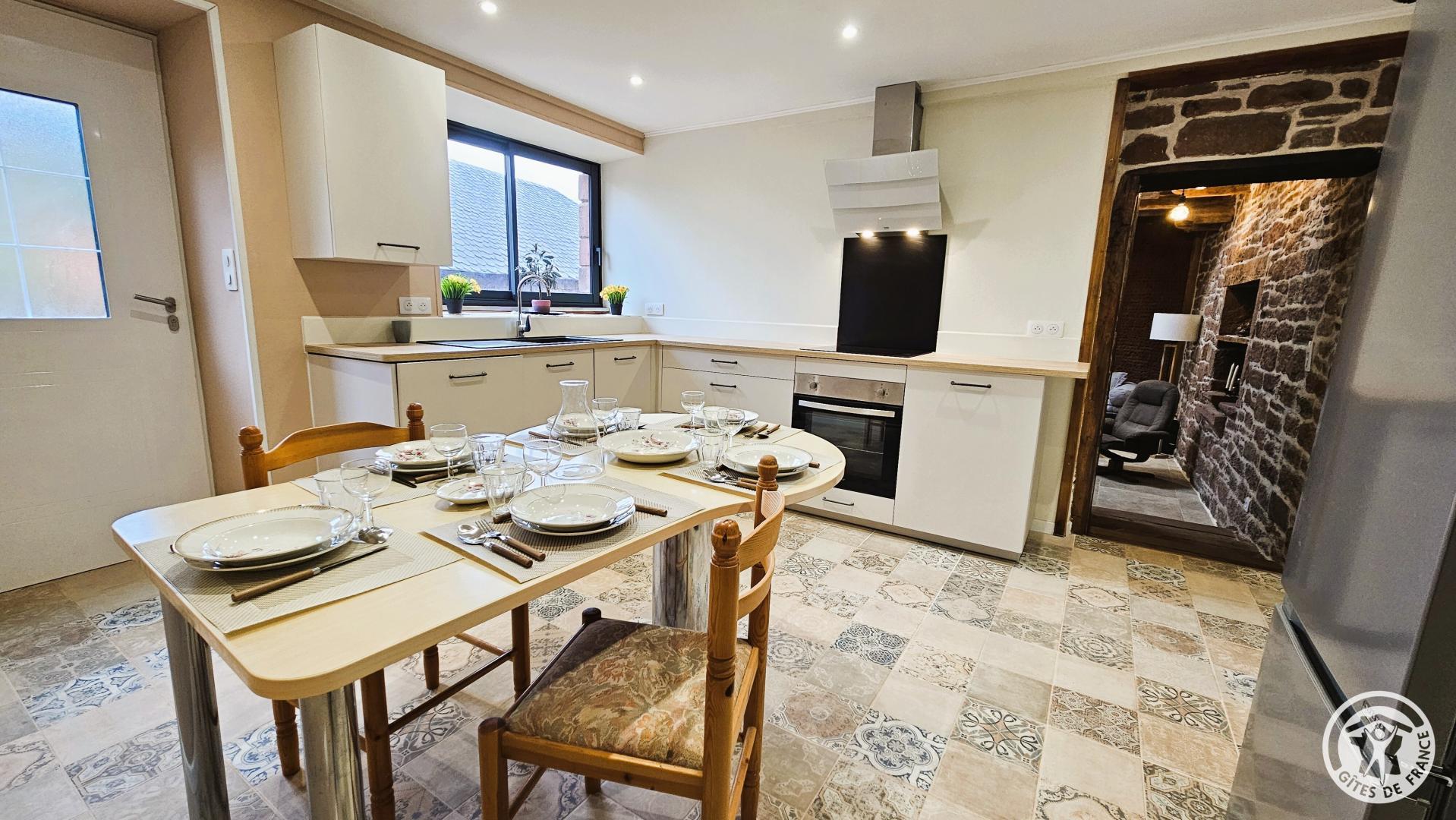 Dès votre arrivée, vous serez séduits par l'authenticité des lieux : murs en pierre apparente, ambiance chaleureuse et décoration soignée. La cuisine, entièrement neuve et équipée, offre un espace fonctionnel et convivial, idéal pour partager de bons moments. Le salon/séjour, quant à lui, a conservé toute son âme avec ses matériaux d'origine et son atmosphère cosy.