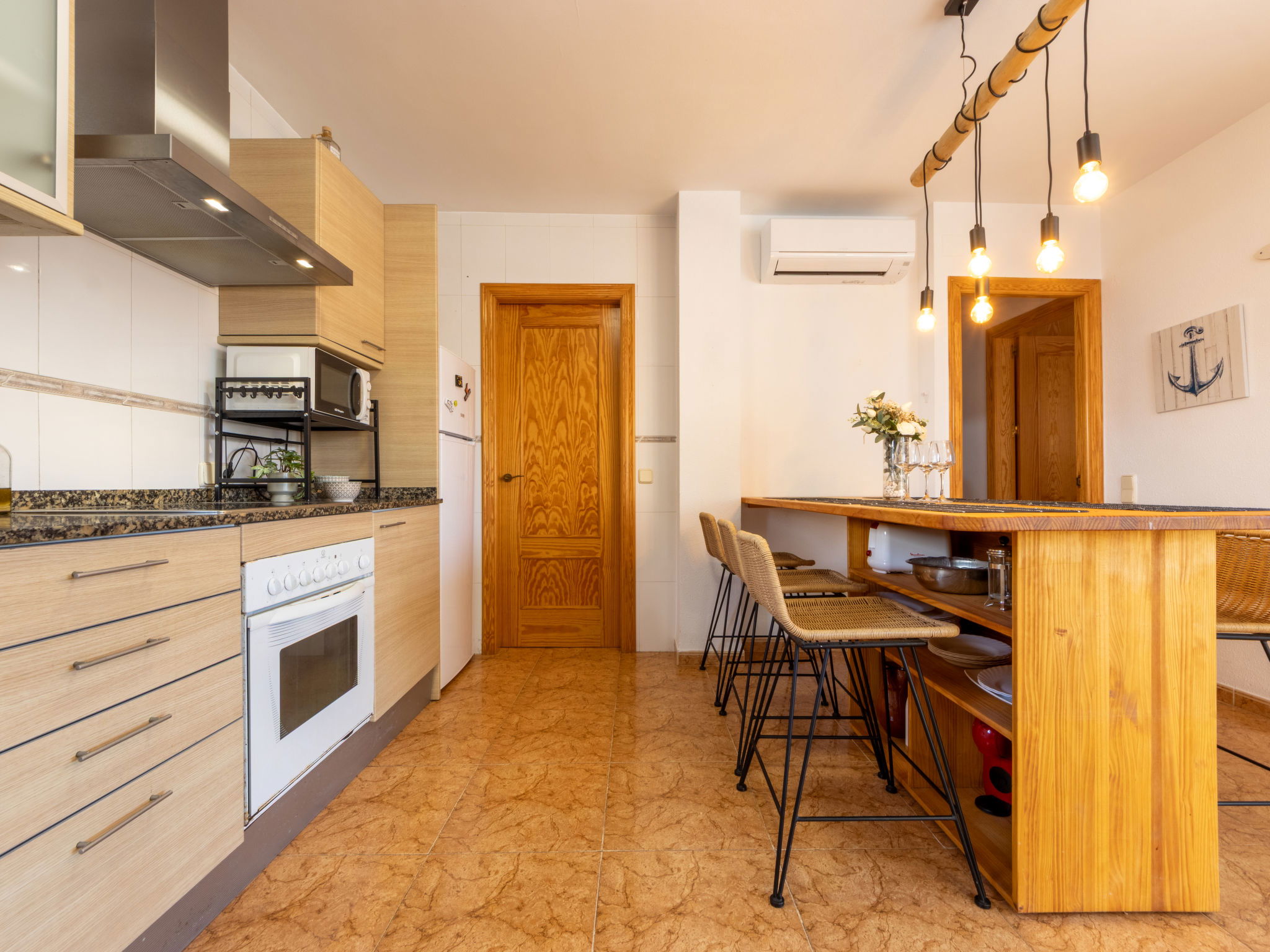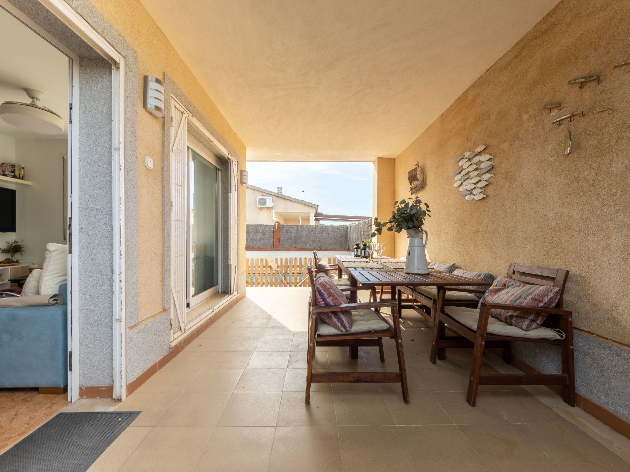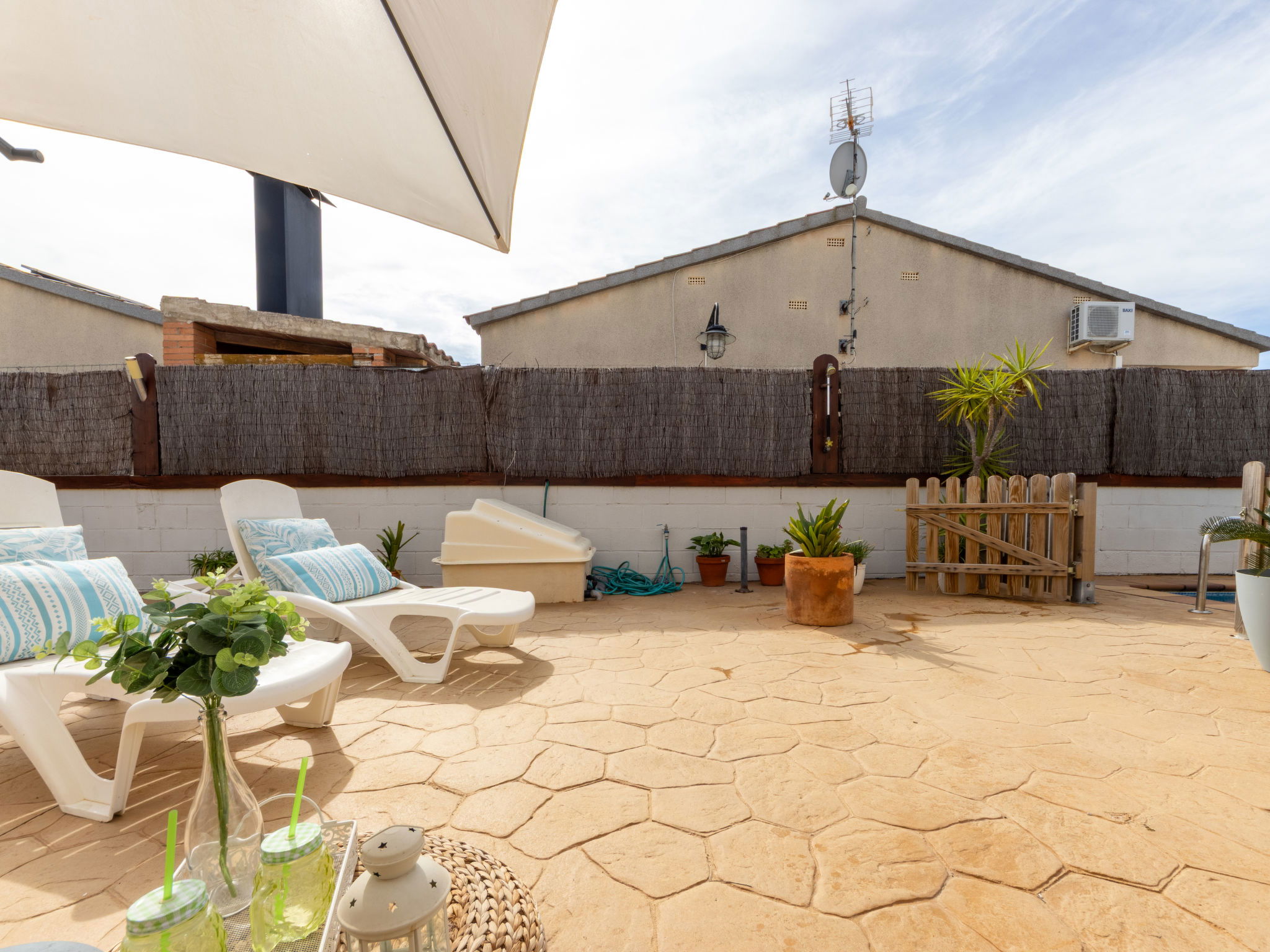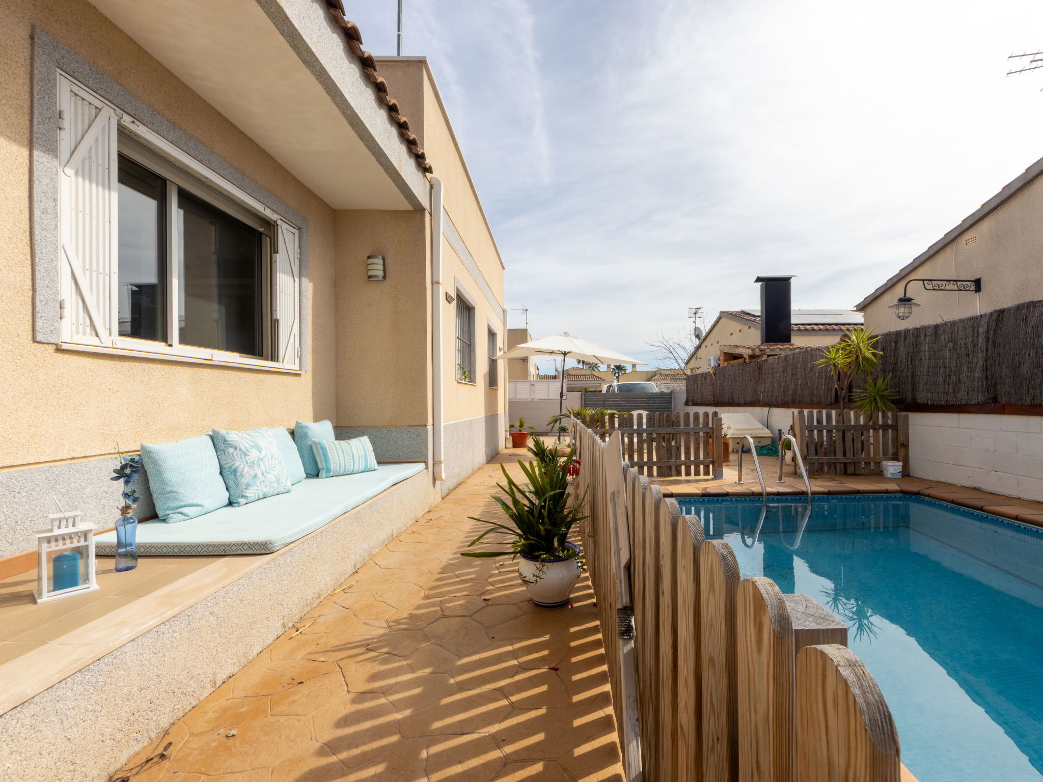 Urb. Riumar à 8 km de Deltebre: Maison accueillante, confortable "Juana", année de construction 2007. Situation ensoleillée, excellente situation: centrale mais tranquille, à 1 km de la mer, à 1 km de la plage. A usage privé: terrain (clôturé), piscine rectangulaire (6 x 3 m, profondeur 170 cm, disponibilité saisonnière: 01.Jan. - 31.Dec.). Douche extérieure, terrasse, meubles de jardin, barbecue. Infrastructures de la Maison: Connexion WIFI, air-conditionné, lave-linge. Place de parking sur le terrain. Supermarché 400 m, restaurant, bar, boulangerie 100 m, arrêt de bus "Riumar" 100 m, gare ferroviaire "Aldea- Amposta" 25 km, plage de sable "Riumar" 1 km. Attractions à proximité: Parque natural Delta del Ebro 1 km, Tortosa 35 km, Playa el Trabucador 29 km, Barcelona 190 km, Port Aventura 70 km. Région de randonnées: Parque natural Puerto Tortosa Beseit 52 km, GR 92 15 km. Veuillez noter: voiture recommandée. Adapté(e) aux familles. Groupes de jeunes sur demande seulement.