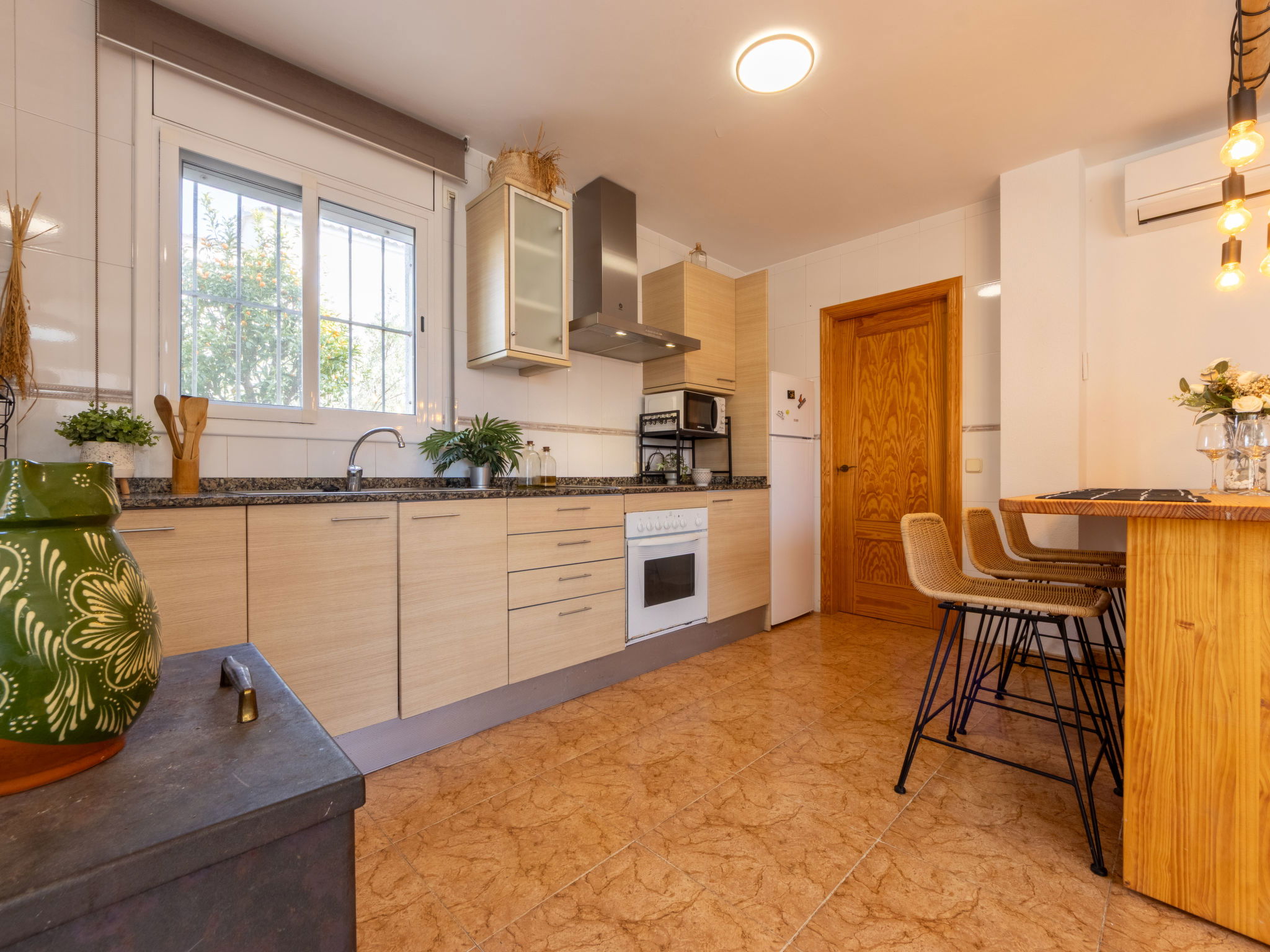 "Juana", maison 4 pièces 80 m2, au rez-de-chaussée. Aménagement confortable et plaisant: séjour/salle à manger avec cheminée, table pour les repas, Télévision numérique, air-conditionné et chauffage à air chaud. Sortie sur la terrasse, sur la piscine. 2 chambres doubles, chaque chambre avec: 1 grand-lit (135 cm, longueur 190 cm). 1 chambre double avec 1 grand-lit (135 cm, longueur 190 cm), bain/WC. Cuisine ouverte (four, 4 plaques vitrocéramiques, grille-pain, micro-ondes, congélateur, cafetière électrique). Sortie sur la terrasse, sur la piscine. Baignoire sabot/bidet/WC. Air-conditionné, chauffage à air chaud. Jardinet. Meubles de terrasse, barbecue, chaises longues, loggia. A disposition: lave-linge, fer à repasser, moustiquaire, sèche-cheveux. Internet (Connexion WIFI, gratuit). Place de parking (cloturée). Adapté(e) aux familles. Maximum 2 animaux/ chiens autorisés. HUTTE-002845 // Reg. Nr.: ESFCTU00004301900054976600000000000000000HUTTE0028459