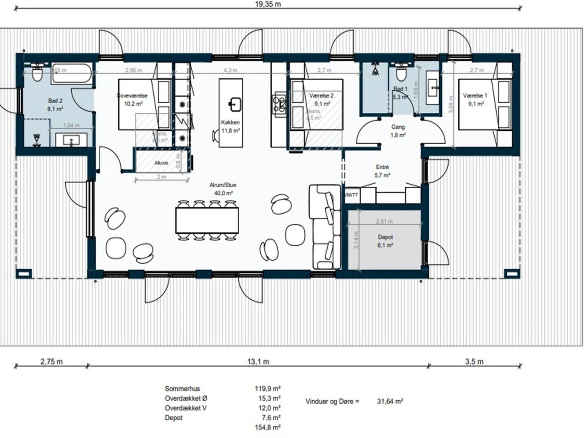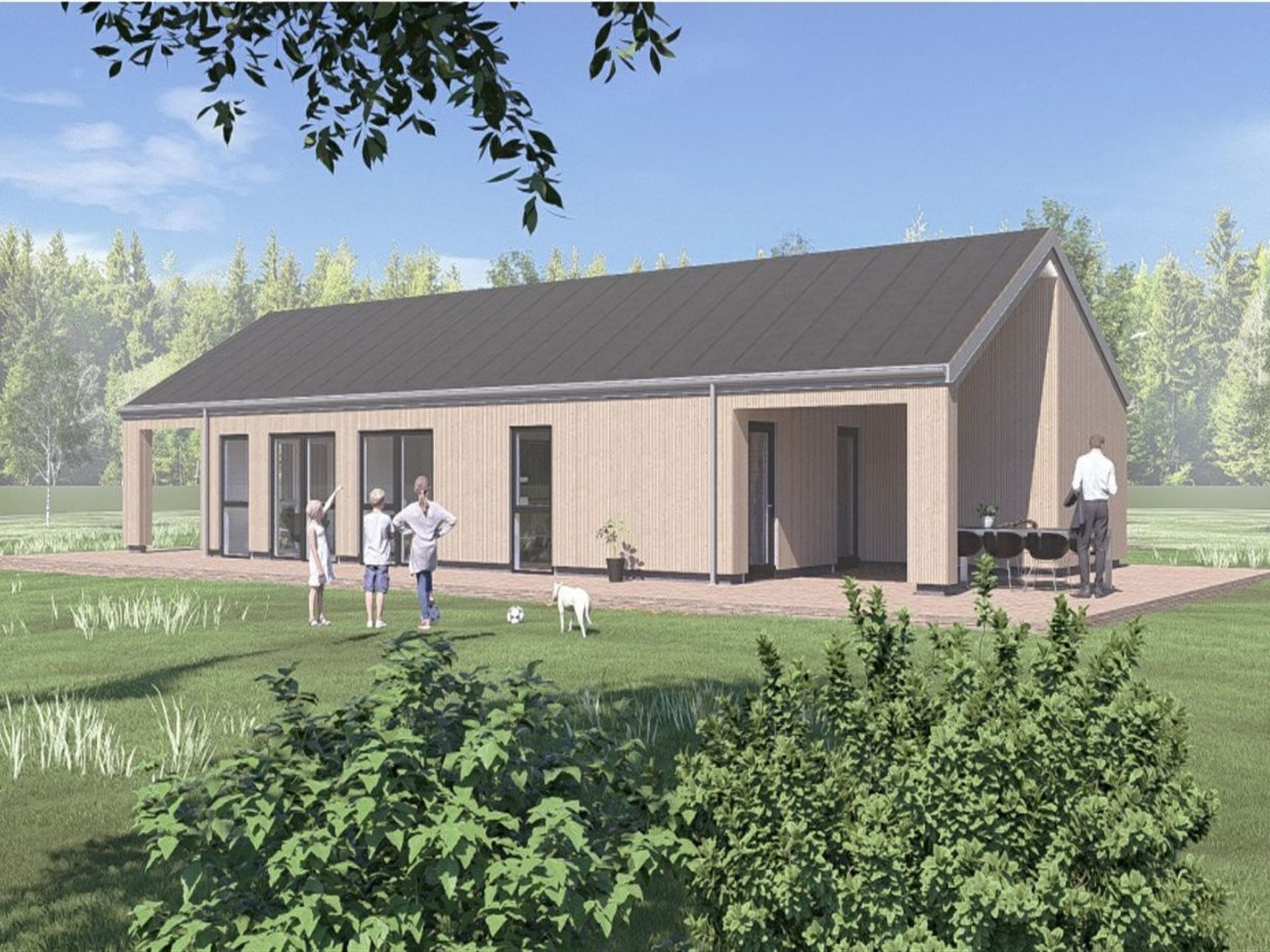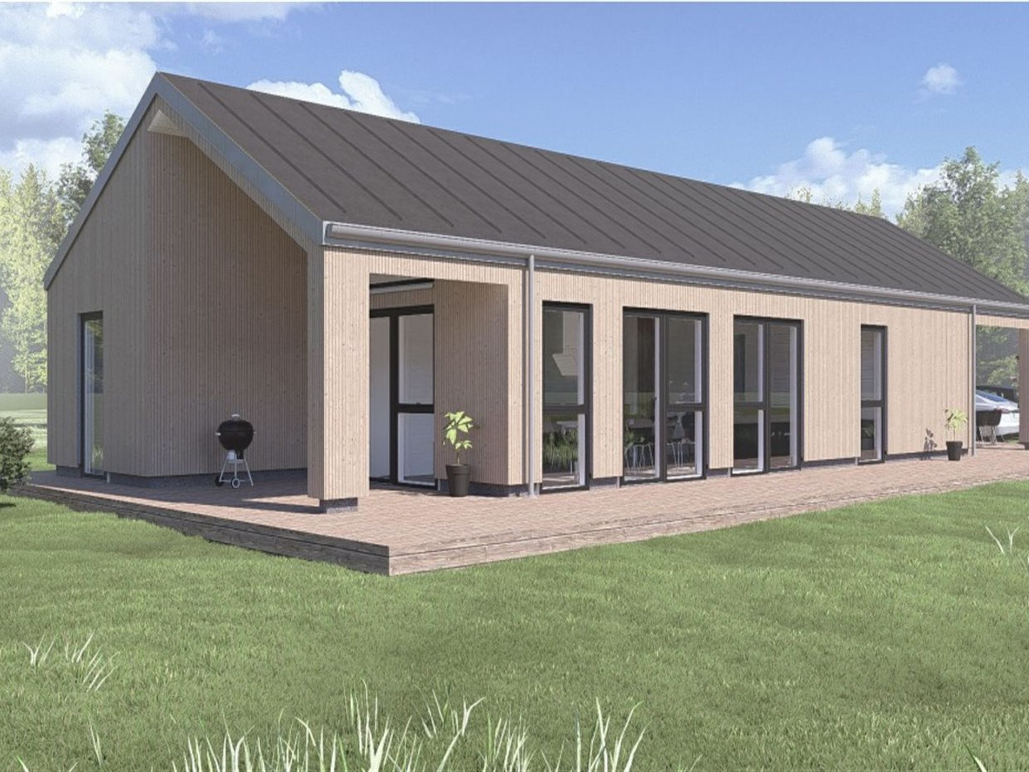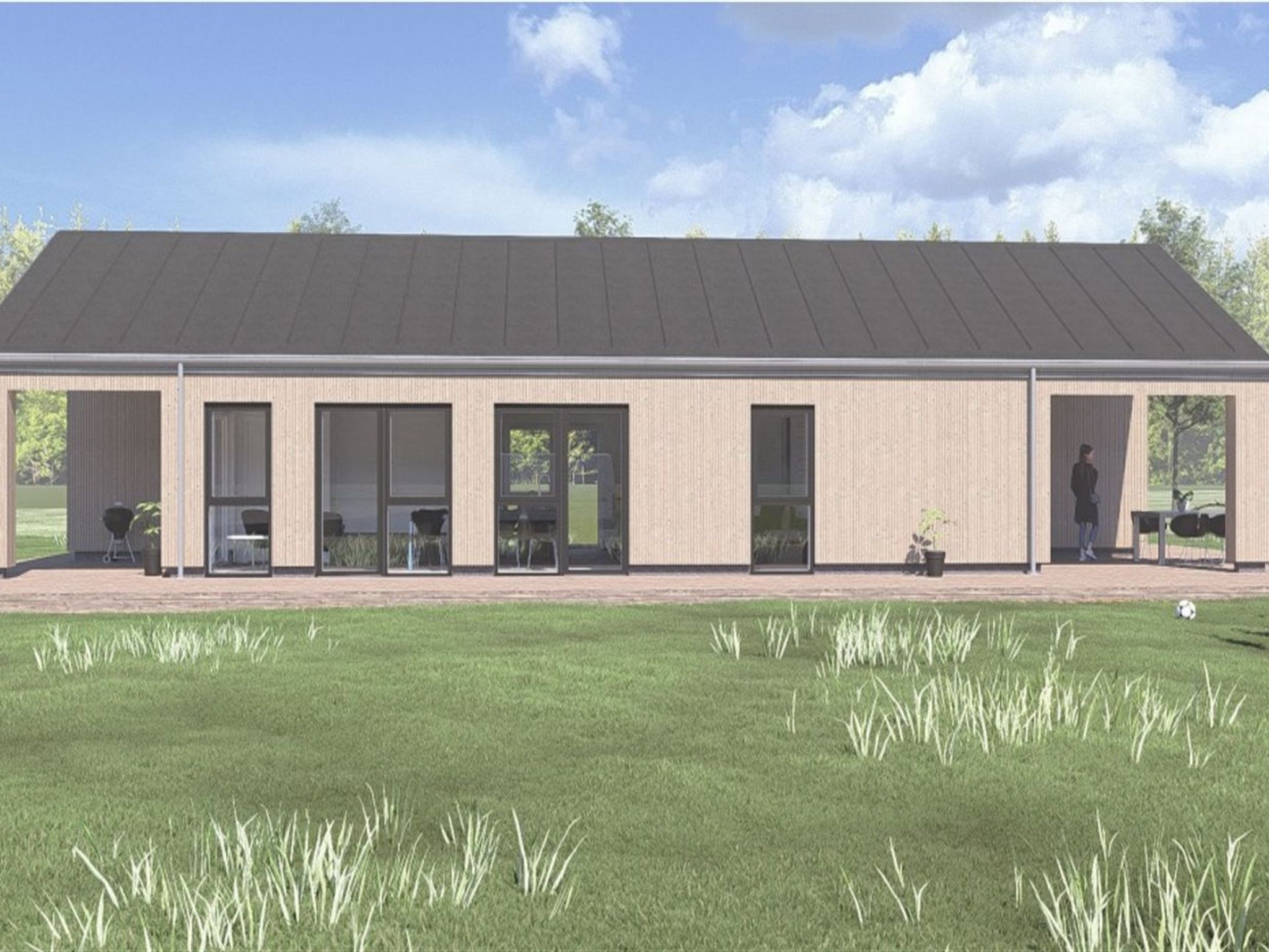 Maison individuelle, année de construction 2027. À 1.4 km de la mer. A usage privé: terrain à l'état naturel 2'042 m2. Douche extérieure, barbecue (toboggan, balançoire). Infrastructures de la Maison: lave-linge, sèche-linge. Place de parking près de la maison. Borne de recharge électrique. Magasin d'alimentation 1.9 km. Terrain de golf 400 m. Le propriétaire n'accepte pas les groupes de jeunes.