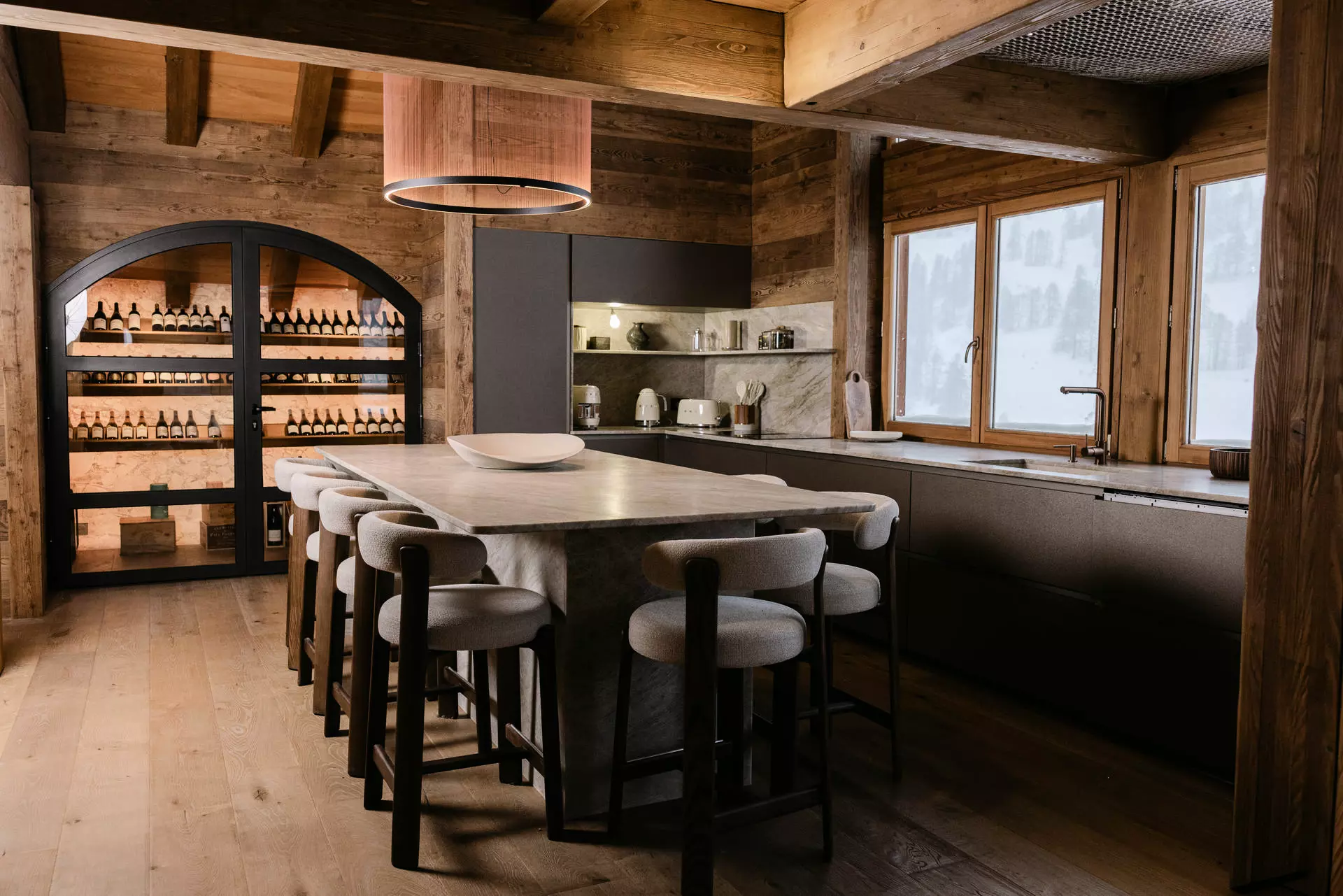 Cet espace de vie chaleureux est pensé pour se retrouver, cuisiner, échanger et profiter pleinement de l’atmosphère du chalet.