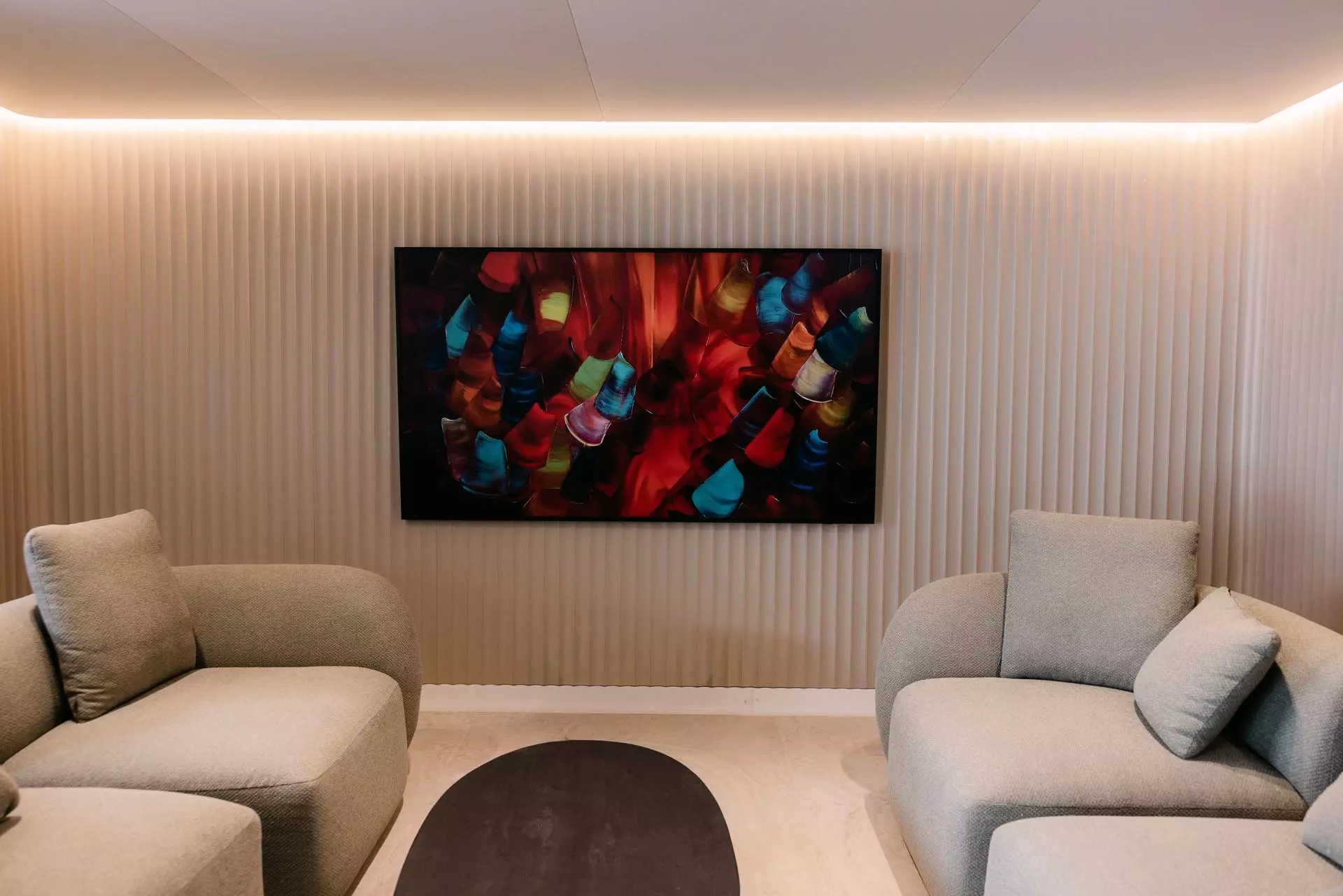 • un salon détente attenant avec écran géant et canapés pouvant accueillir six personnes.