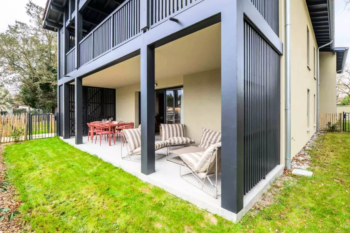 Votre appartement se situe dans la résidence du "Vert Marin", construction récente et de standing de 2025 et dans le centre bourg de Moliets : c'est un ensemble de 3 petits batiments d'un étage, dans le style néo-landais. Votre batiment est au fond de la résidence, au calme et non sur la rue. Tous les commerces sont accessibles à pied, boulangerie, boucherie, tabac et presse, et supermarché .Vous êtes à 10/15 minutes en vélo des 2 très belles plages de Moliets , celle des "chênes lièges", et la "centrale" et non loin des parcours du Golf international : tout est faisable sans voiture, tranquillement et sereinement.