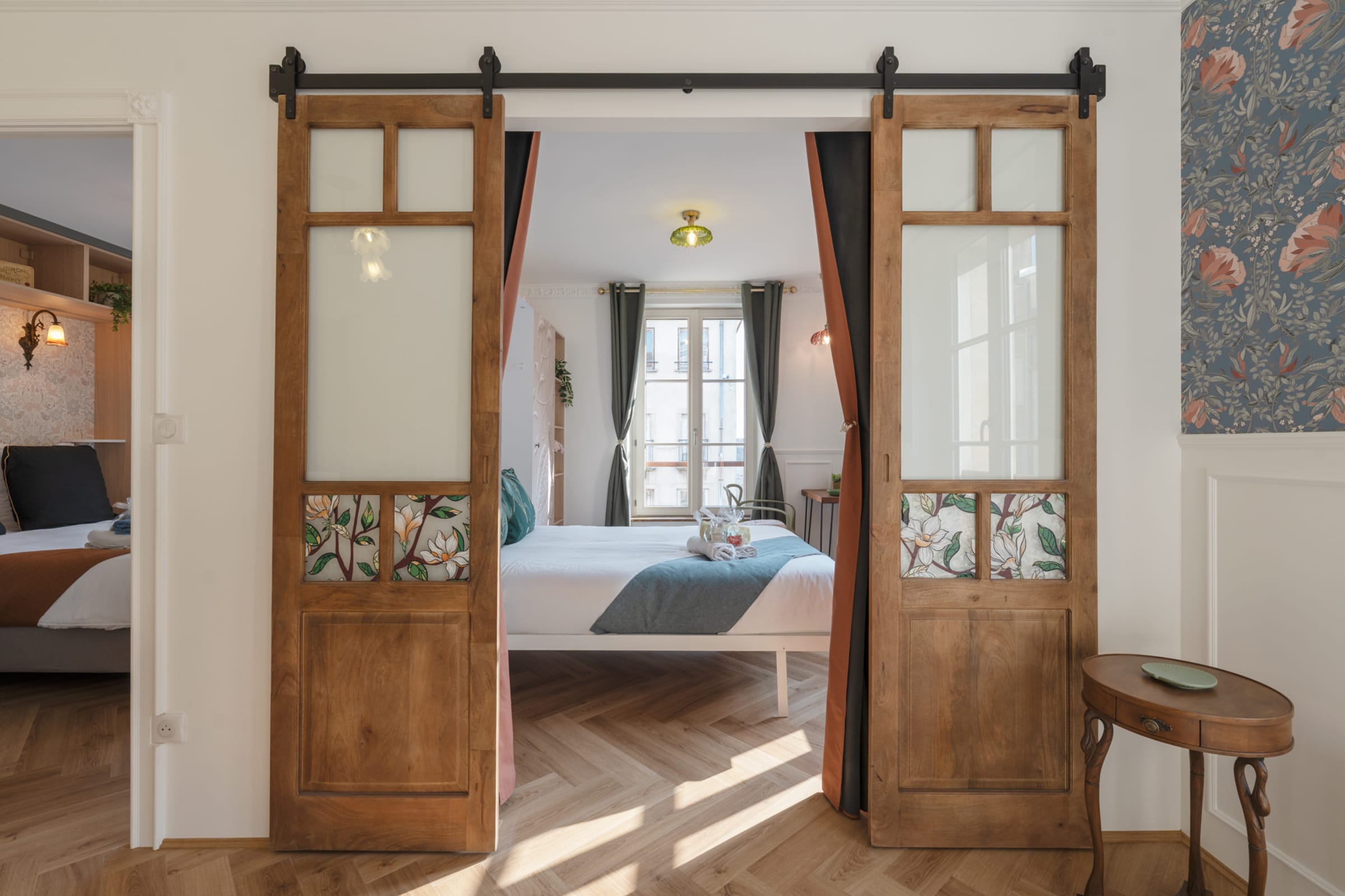 Dès votre arrivée, vous serez séduit par l’atmosphère unique du lieu, inspirée du style Art Déco, emblématique de Nancy. Moulures, lignes élégantes, touches décoratives raffinées… chaque détail a été pensé pour vous plonger dans l’élégance et intemporel de cette époque. Ici, vous ne logez pas simplement dans un appartement, vous vivez une véritable expérience nancéienne, entre patrimoine et confort moderne.