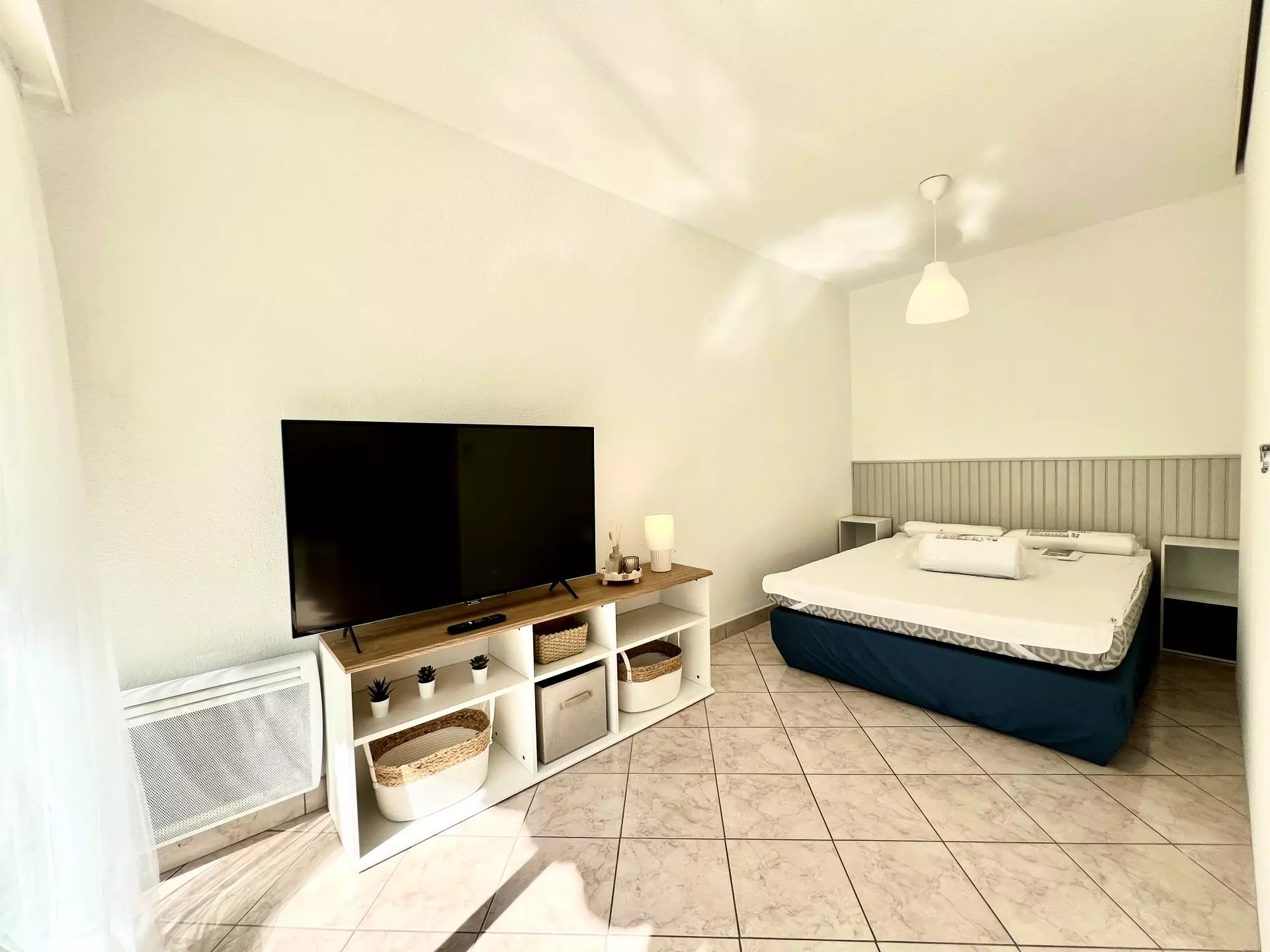La chambre offre un espace nuit confortable avec un lit double en 140.
