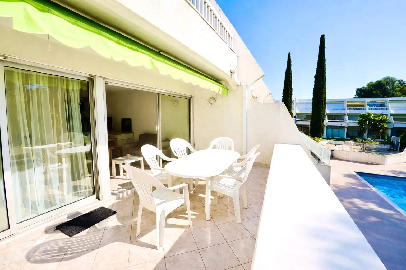 Dans une résidence avec piscine, idéal pour des vacances en famille ou entre amis, cet appartement vous accueille à proximité de la plage et des commerces.