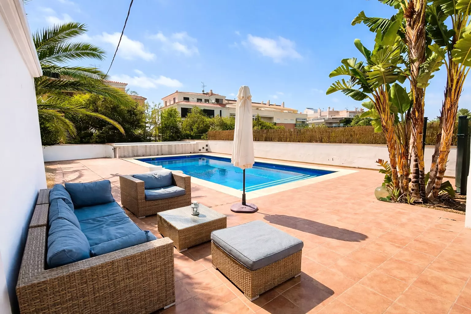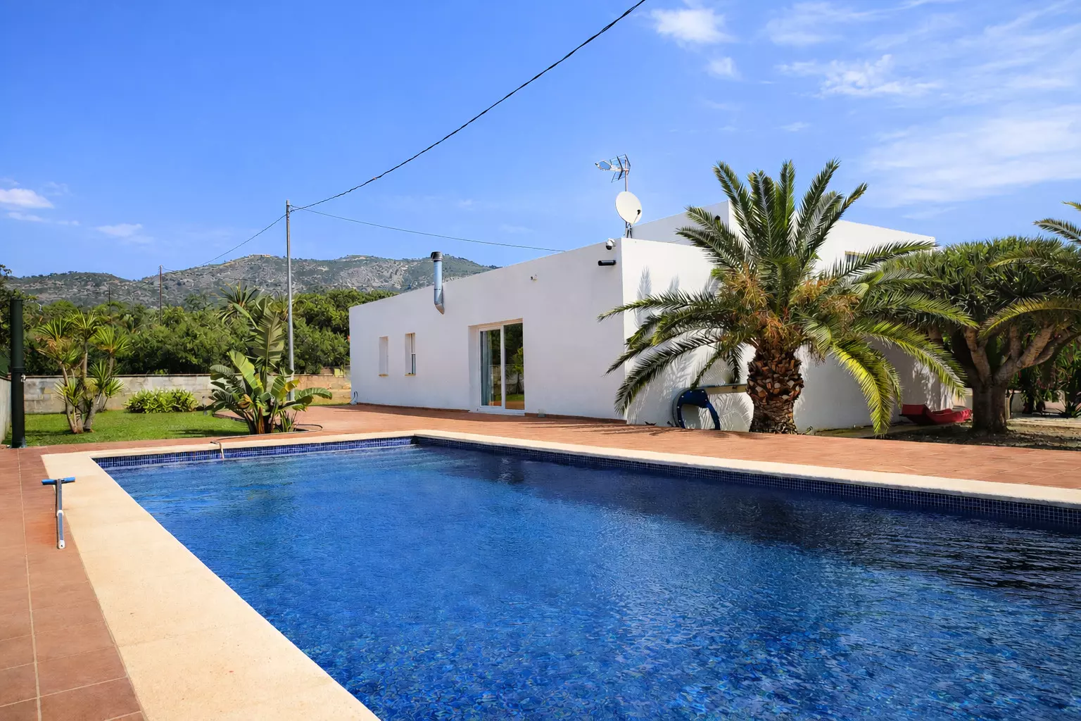 Elle dispose de jardin, mobilier de jardin, clôture, terrasse, lave-linge, cheminée, fer à repasser, piscine privée, parking extérieur même bâtiment, 1 Télévision, tv satellite (Langues: Espagnol).
