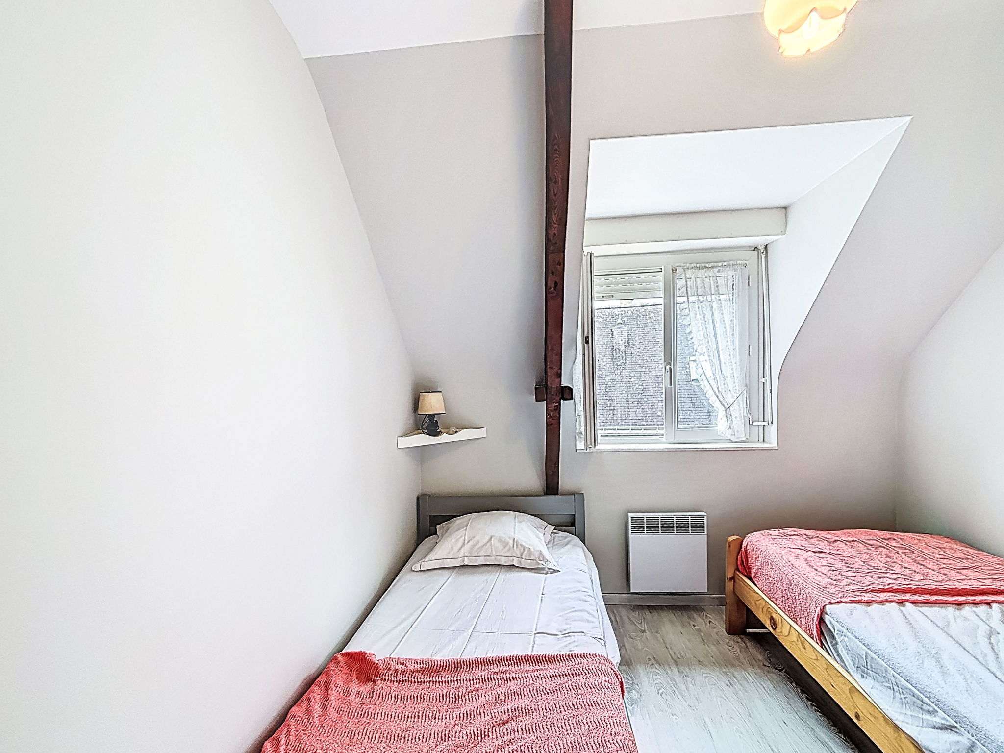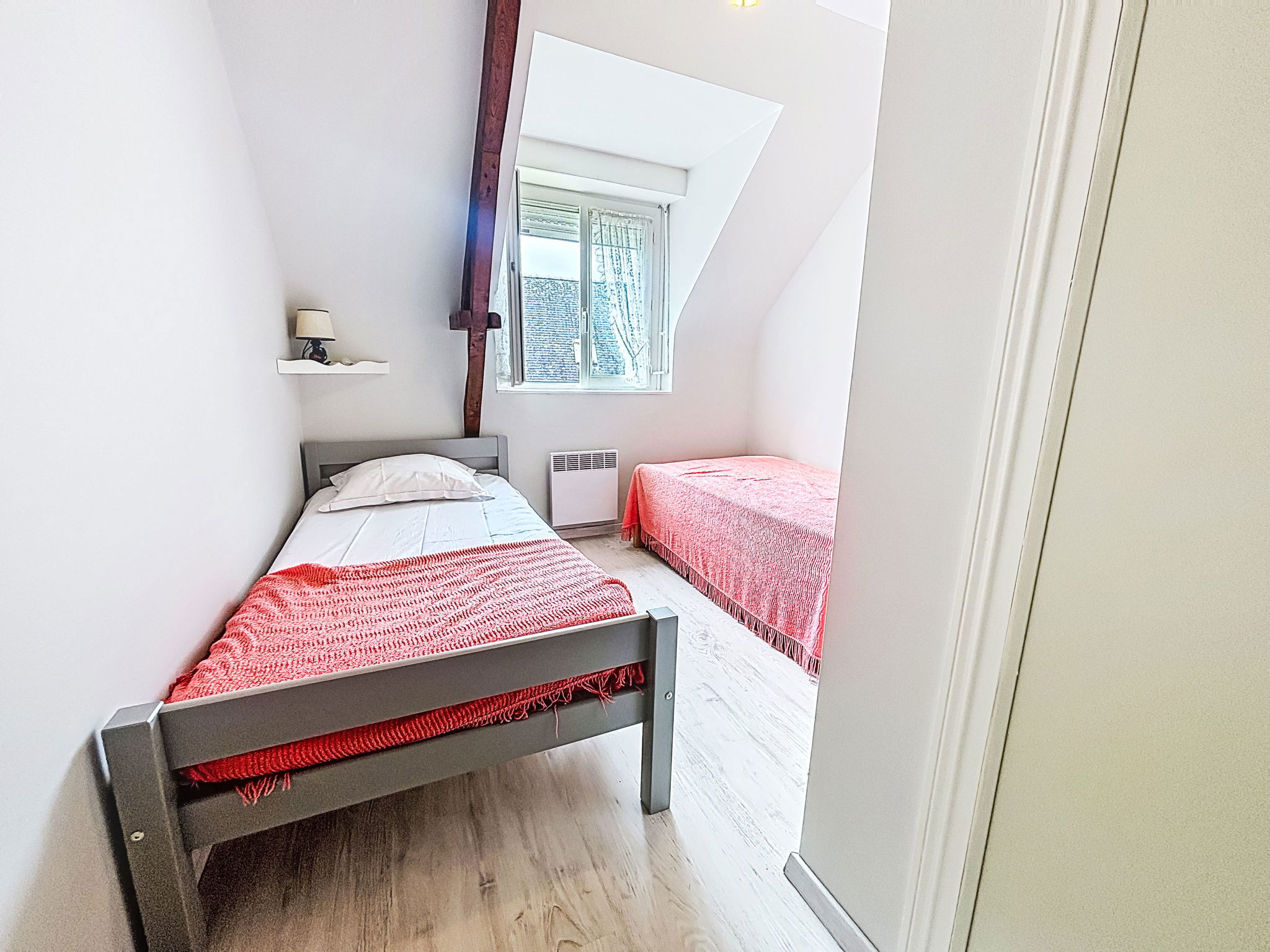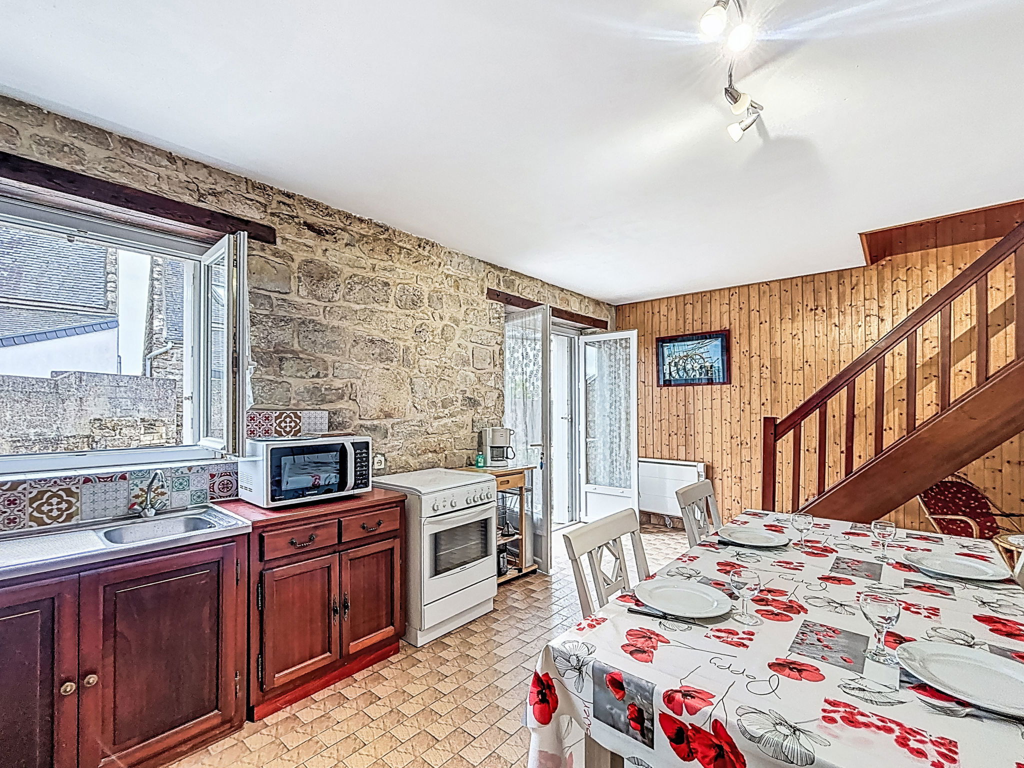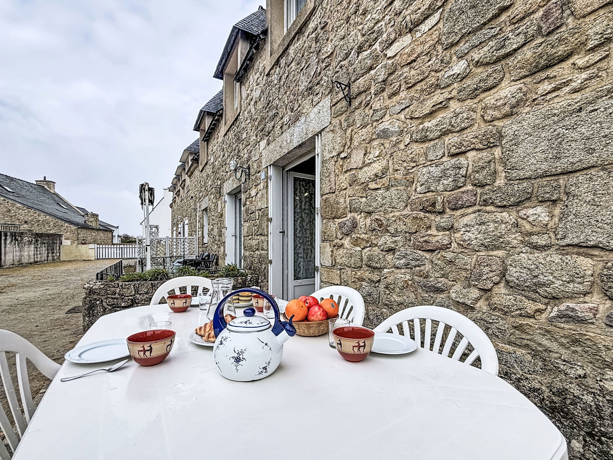 "Maison Le Magouër", maison mitoyenne 3 pièces 50 m2. Aménagement confortable: séjour/salle à manger avec TV (écran plat). Sortie sur la terrasse. Cuisine (3 plaques de cuisson, four, grille-pain, bouilloire électrique, micro-ondes, congélateur, cafetière électrique). WC séparé. À l'étage supérieur: 1 chambre avec 2 lits (90 cm, longueur 190 cm). 1 chambre avec 1 grand-lit (1 x 140 cm, longueur 190 cm). Douche. Petite terrasse. A disposition: lave-linge. Place de parking. Veuillez noter: logement non-fumeur. Détecteur de fumée.