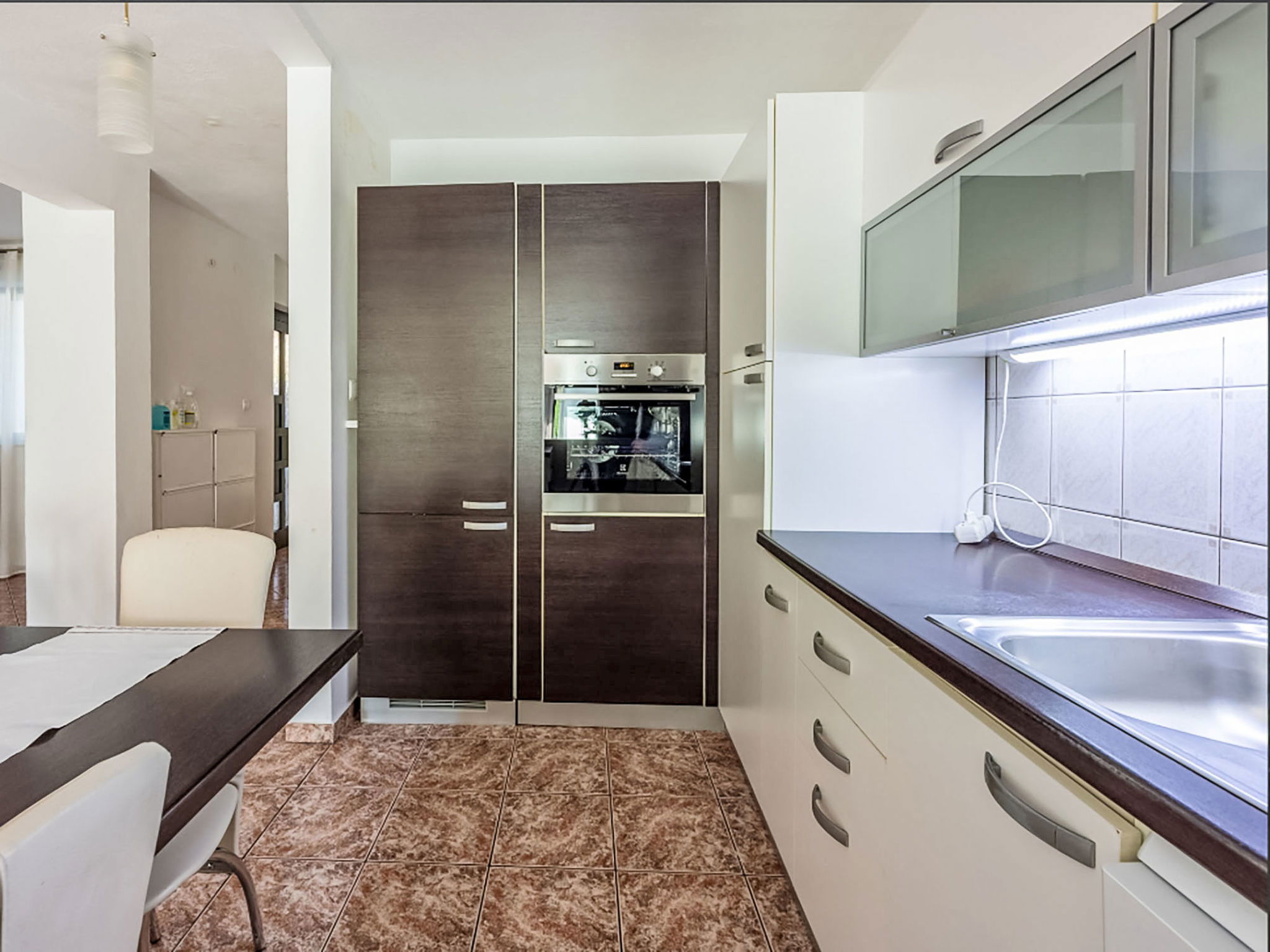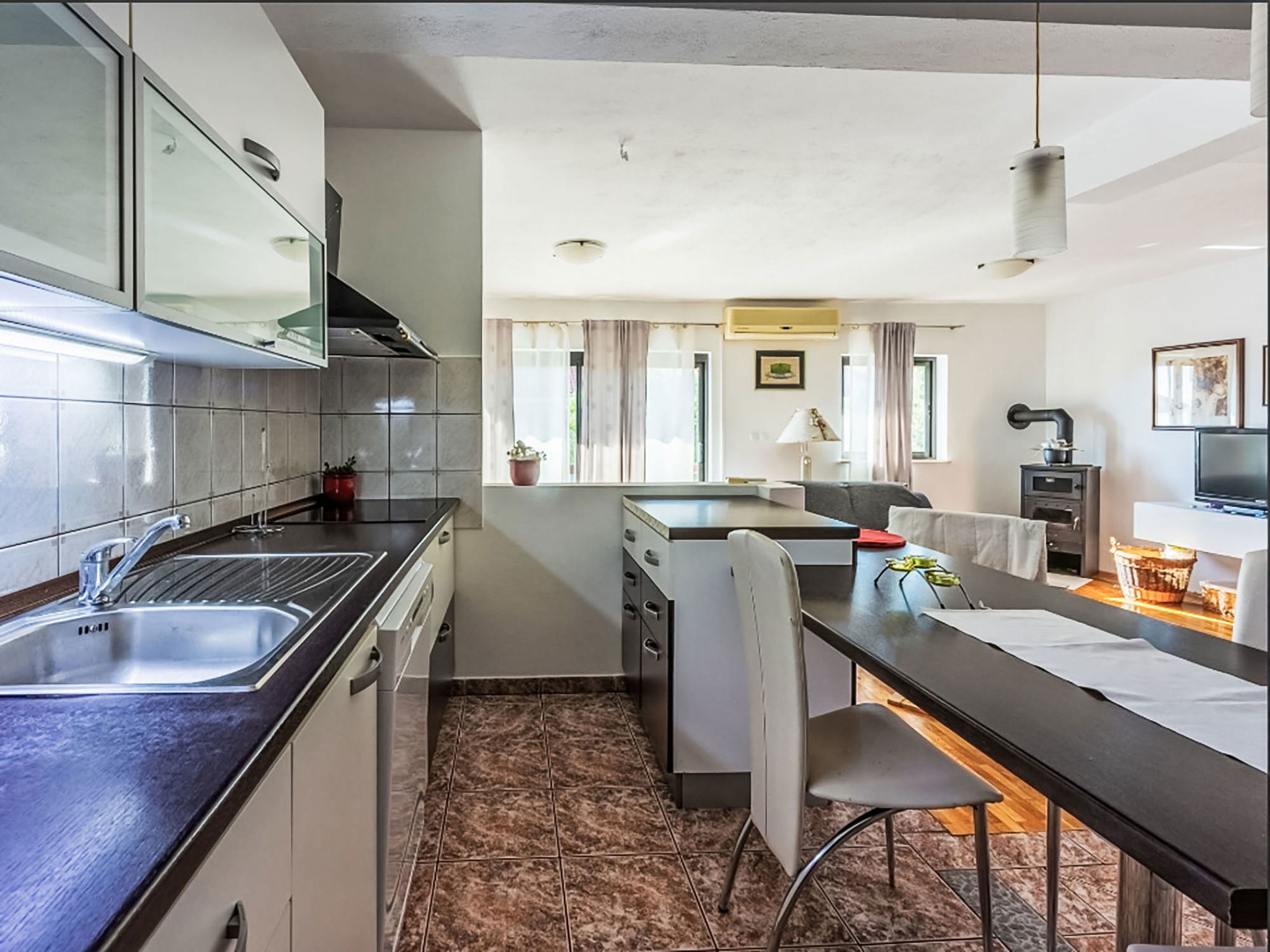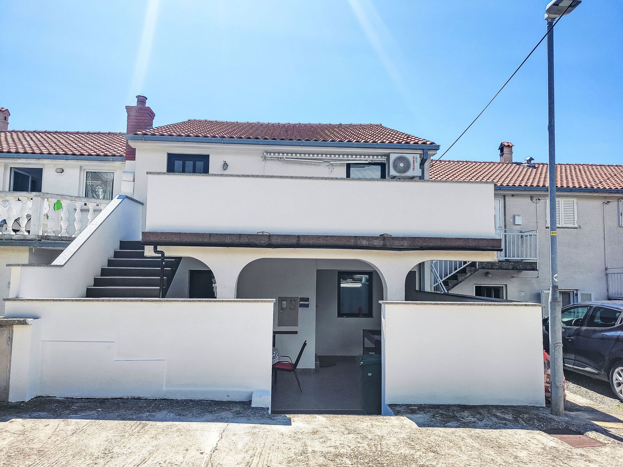 Novi Vinodolski: Immeuble "Deleut", de 3 étages. À 1 km du centre de Novi Vinodolski, à 1.8 km de la mer, à 1.8 km de la plage. En commun: terrain 400 m2 (clôturé). Terrasse (50 m2), barbecue, espace barbecue. Infrastructures de la Maison: accès internet, lave-linge. Place de parking près de la maison sur le terrain. Magasins, restaurant 800 m, arrêt de bus 1 km, plage de graviers 1.8 km. Veuillez noter: le propriétaire habite sur le même terrain.