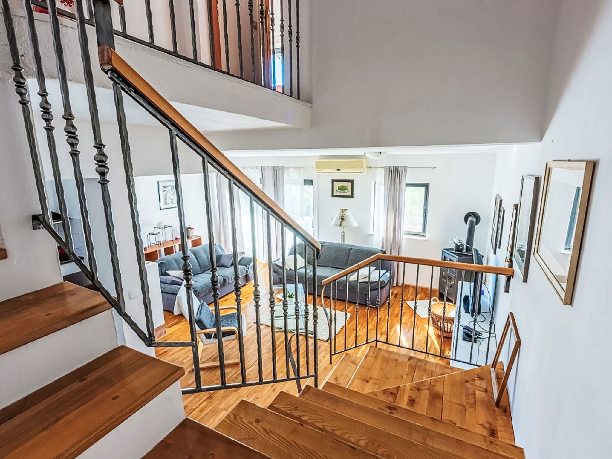 "Deleut 1", Appartement de 3 pièces 90 m2 sur 2 niveaux. Séjour/salle à manger avec cheminée, TV (satellite) et air-conditionné. Cuisine ouverte (four, lave-vaisselle, 4 plaques à induction, grille-pain, bouilloire électrique, micro-ondes, congélateur, cafetière électrique). Douche/bidet/WC. À l'étage supérieur: 1 chambre avec 1 grand-lit (160 cm, longueur 200 cm), TV (satellite) et air-conditionné. Sortie sur le balcon. 1 chambre avec 1 grand-lit (160 cm, longueur 200 cm). Bain/WC. Chauffage au bois, chauffage à air chaud. A disposition: fer à repasser, sèche-cheveux, bois (gratuit). Internet (Connexion WIFI, gratuit). Maximum 2 animaux/ chiens autorisés.
