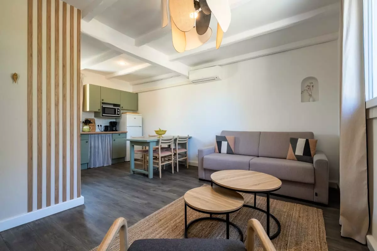 Entièrement rénovée pour votre confort, cette retraite confortable dispose d'une chambre accueillante avec un lit double de 140 cm et un lit simple. Le salon est équipé d'un canapé convertible pouvant accueillir deux personnes, permettant d'accueillir confortablement jusqu'à cinq personnes.