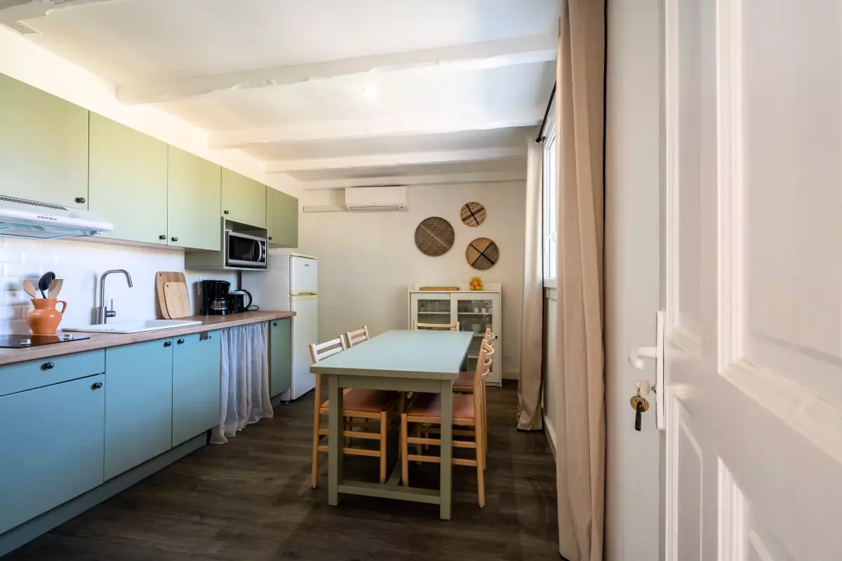 Pour votre confort, la climatisation est fournie pour vous rafraîchir pendant les chaudes journées d'été. La cuisine entièrement équipée vous permet de préparer des repas délicieux avec des produits frais du marché provençal voisin.