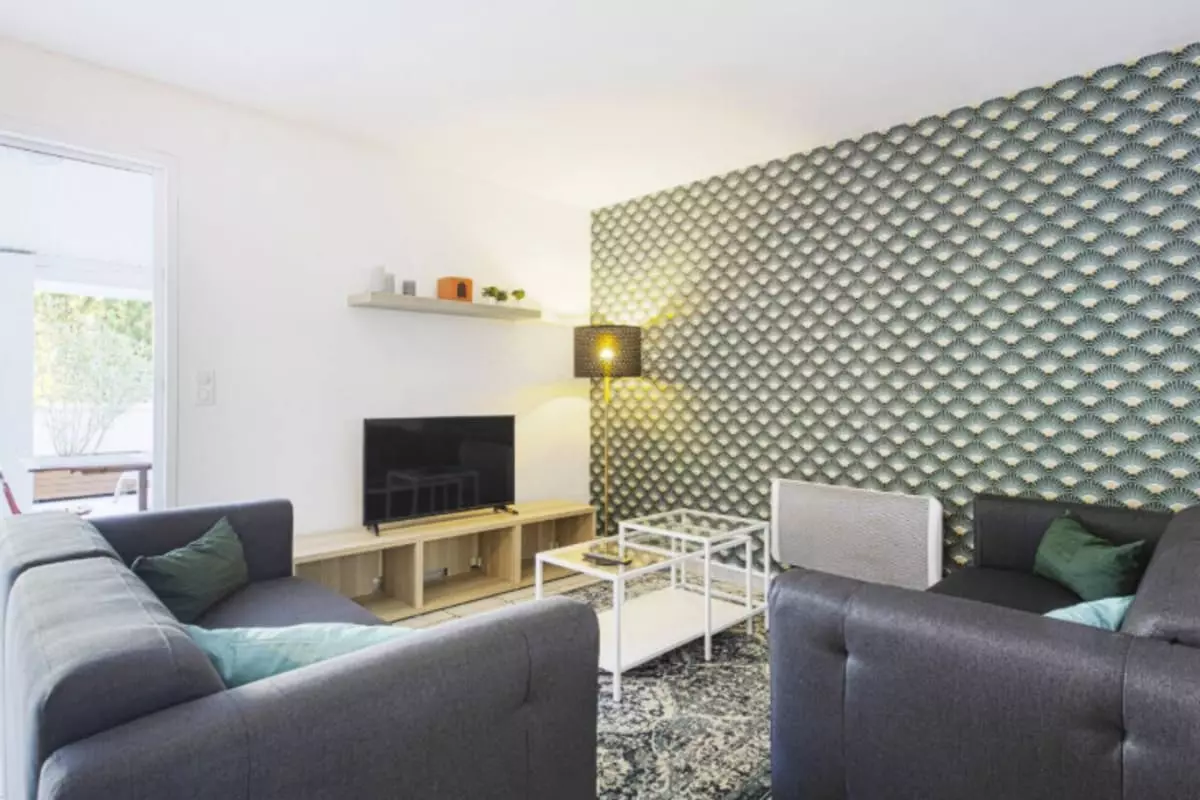 La pièce de vie chaleureuse vous invite à la détente après vos journées de découverte, tandis que la cuisine entièrement équipée avec four, lave-vaisselle, micro-ondes et machine à café vous permet de préparer de savoureux repas en toute autonomie.