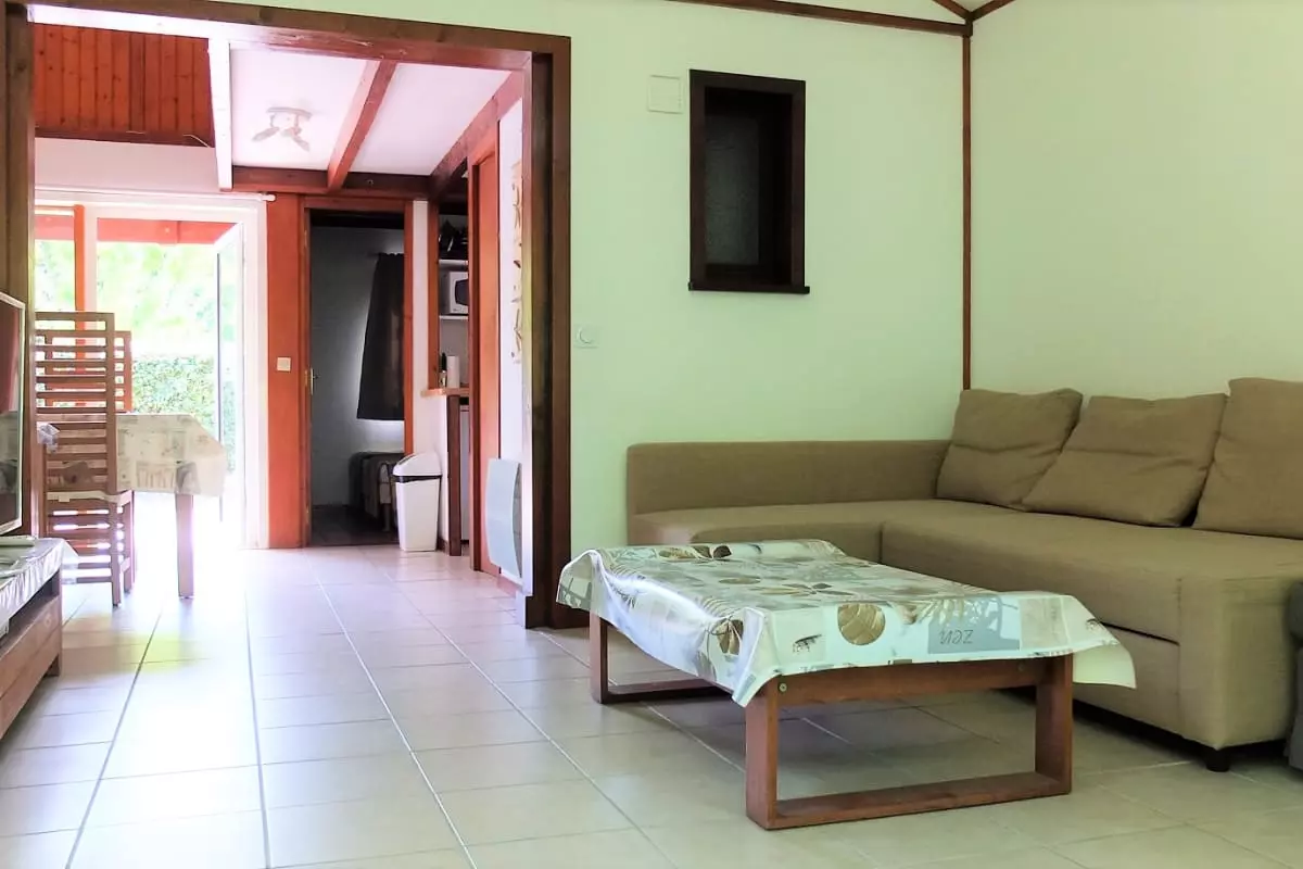 Ce logement de plain-pied peut accueillir confortablement jusqu'à quatre personnes dans un cadre chaleureux et verdoyant.