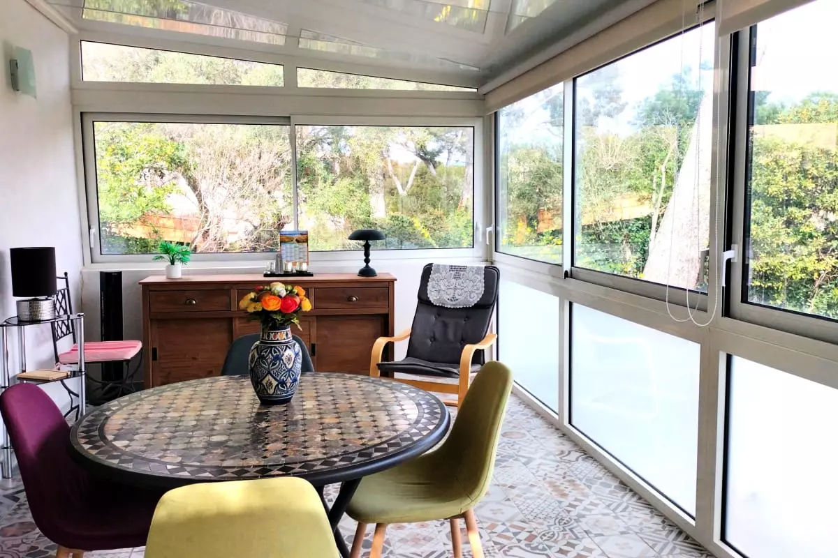 Les espaces extérieurs constituent un véritable point fort de cette propriété. Vous pourrez pleinement profiter du jardin méditerranéen et organiser de sympathiques repas en plein air grâce au barbecue mis à votre disposition. Une véranda vient compléter cet ensemble, vous permettant de savourer l'extérieur en toute saison.