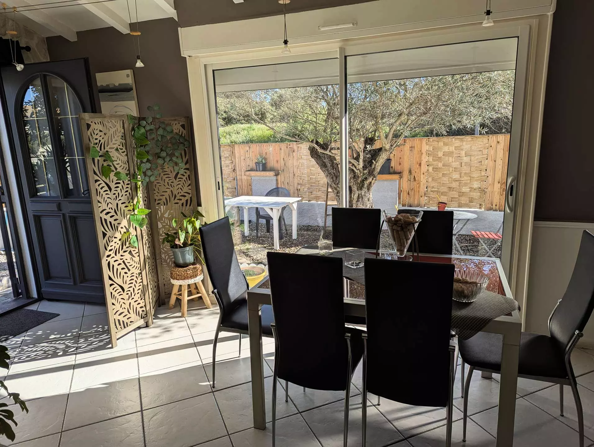 À l’extérieur, la villa dispose d’un jardin arboré agréable, d’un espace détente avec salon de jardin, d’un barbecue et d’une piscine privée avec transats, parfaite pour se relaxer sous le soleil du sud. Un parking privé est également disponible.