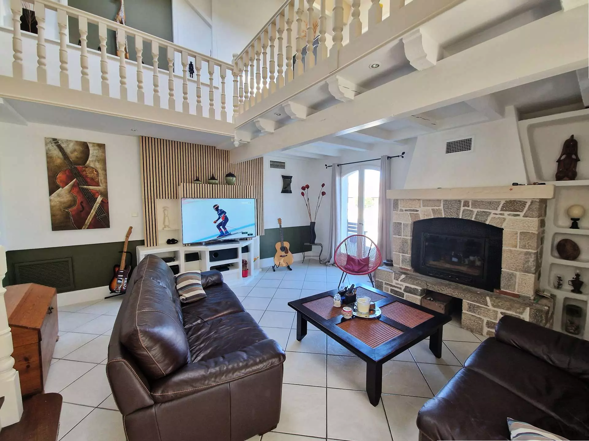À l’étage, une mezzanine propose deux lits d’appoint, ainsi qu’une troisième chambre avec grand lit et accès à une terrasse privative, idéale pour profiter des soirées d’été.