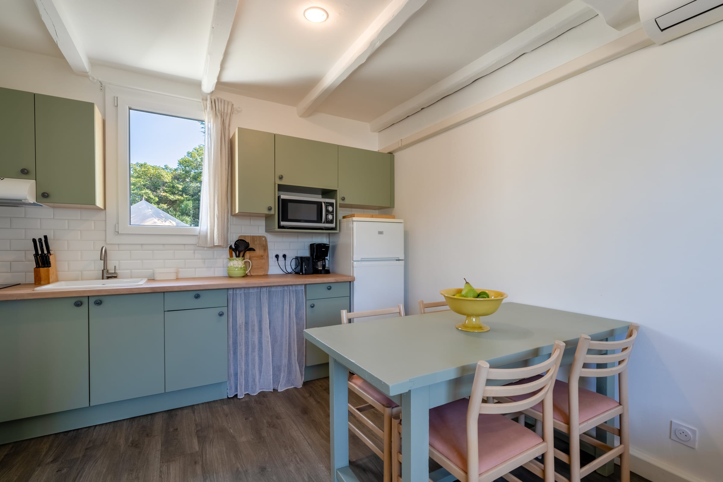 Pour votre confort, la climatisation est disponible pour vous rafraîchir pendant les chaudes journées d'été. La cuisine entièrement équipée vous permet de préparer de délicieux repas avec des produits frais du marché provençal voisin.