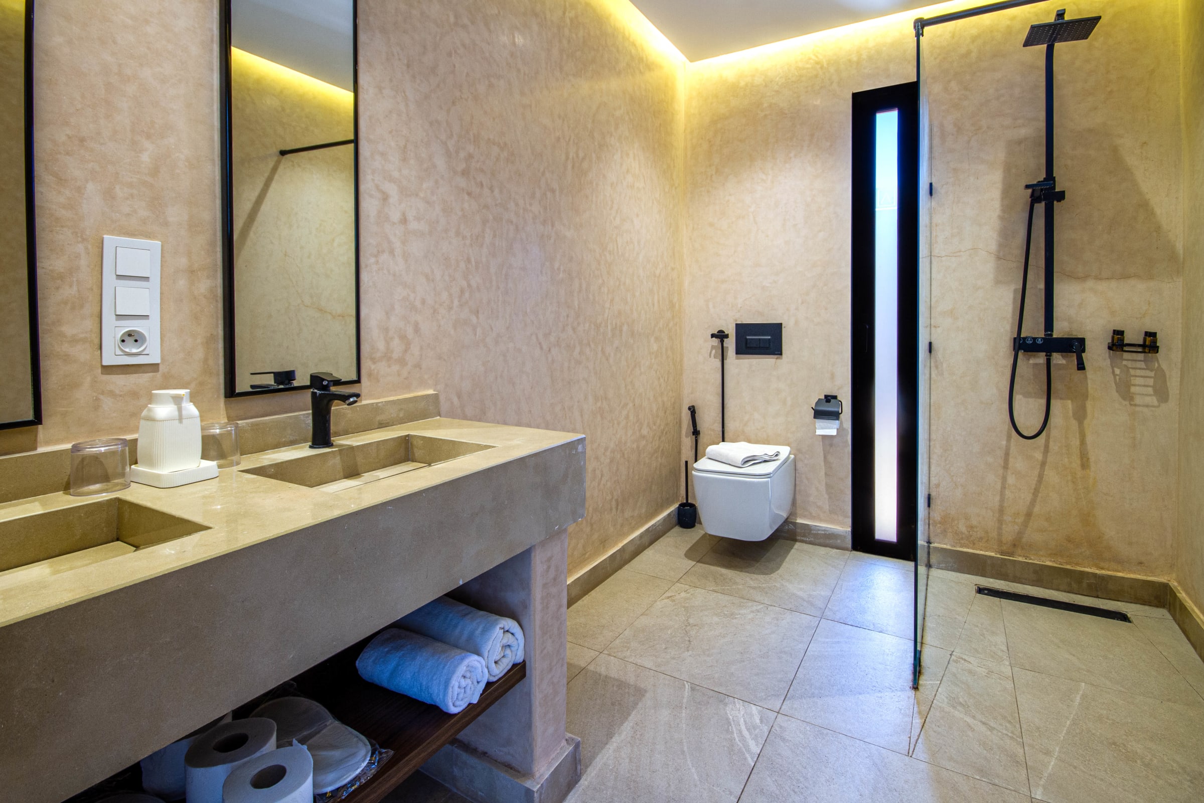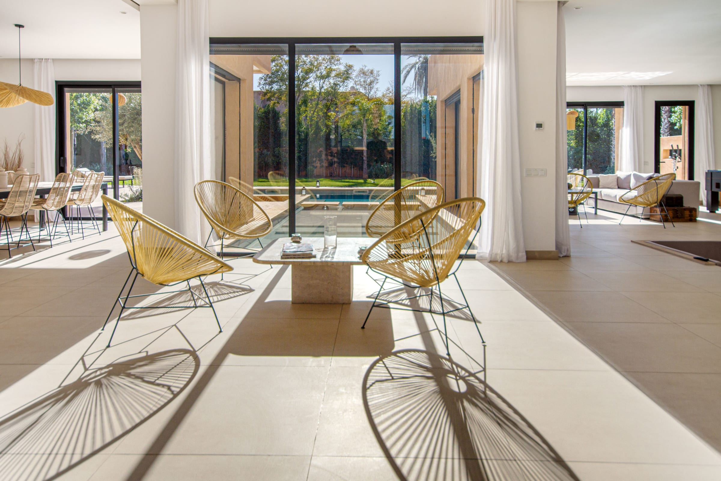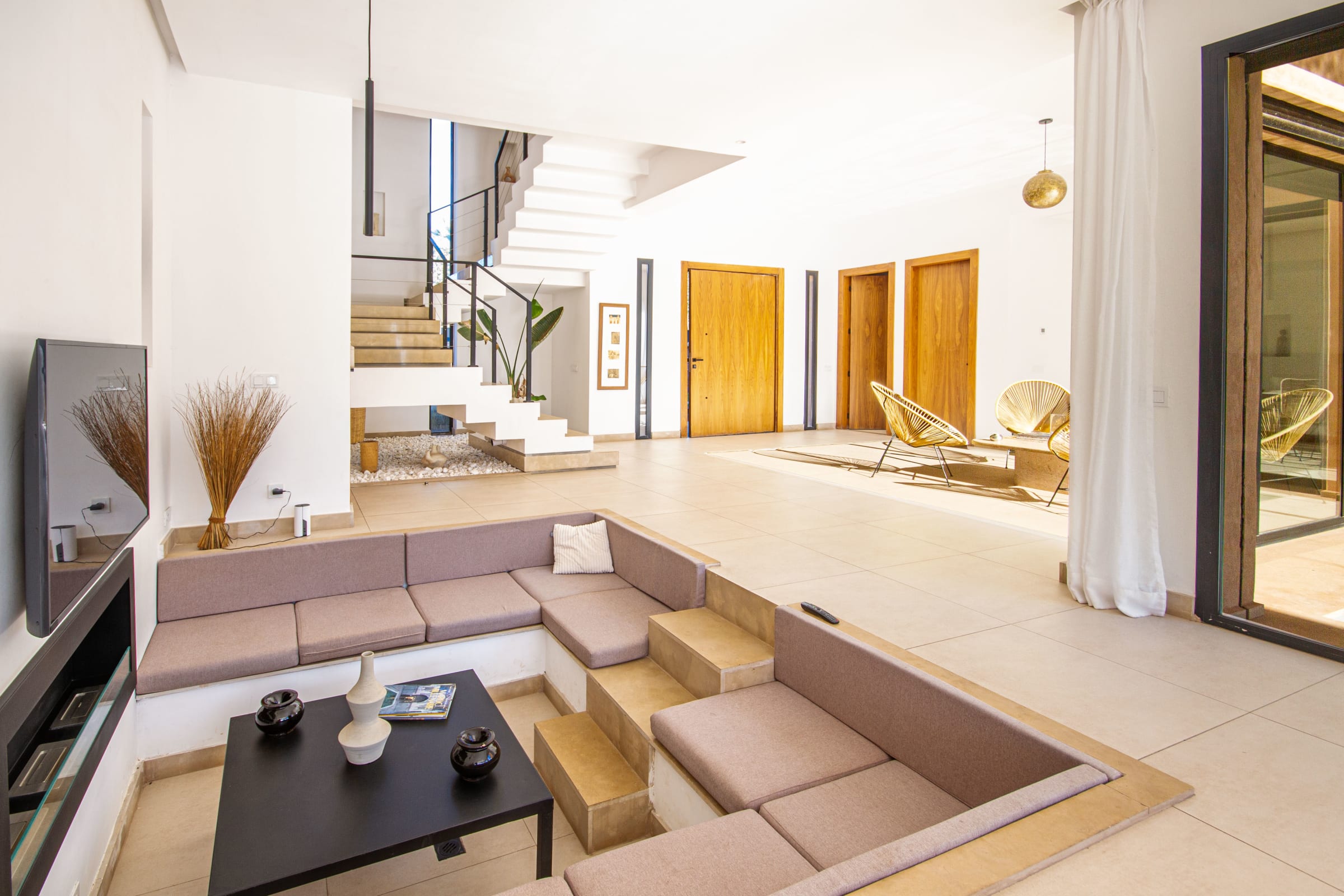 La villa dispose de 5 chambres élégantes, chacune avec salle de bain, offrant intimité et confort digne d’un hôtel de luxe. Les pièces de vie, ouvertes sur l’extérieur, invitent à la détente dans une atmosphère chaleureuse et raffinée.