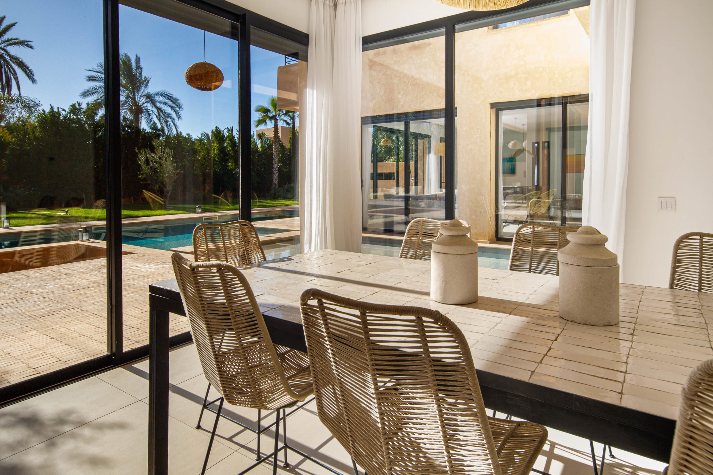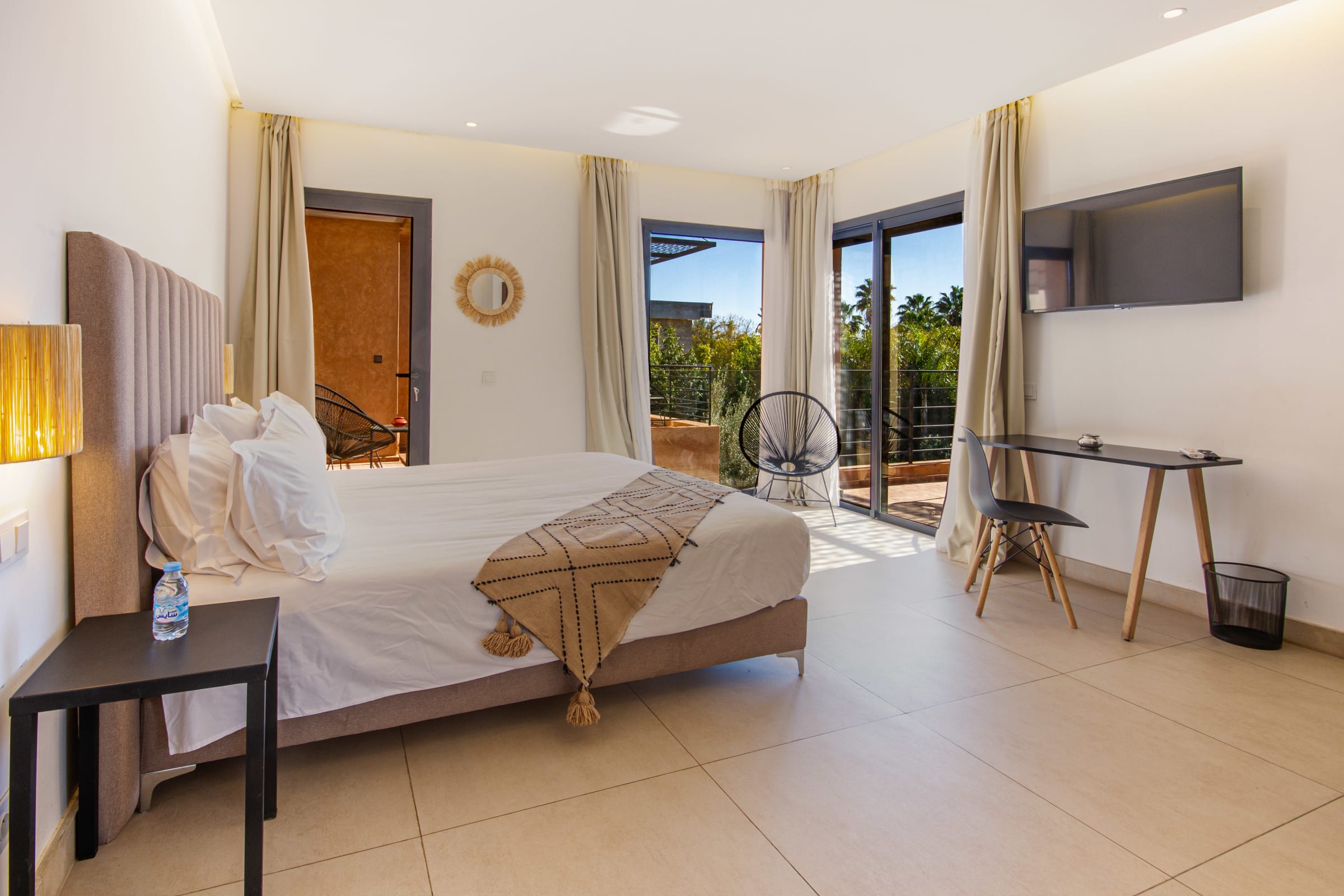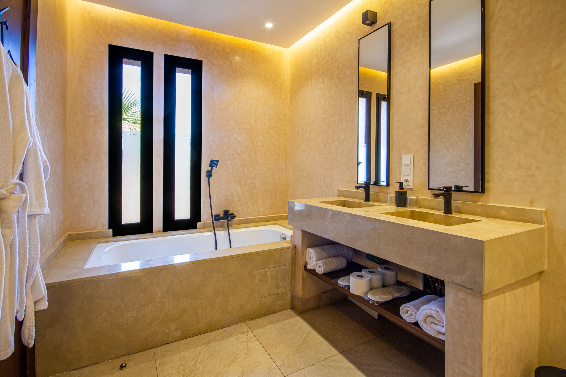 La villa dispose de 5 chambres élégantes, chacune avec salle de bain, offrant intimité et confort digne d’un hôtel de luxe. Les pièces de vie, ouvertes sur l’extérieur, invitent à la détente dans une atmosphère chaleureuse et raffinée.