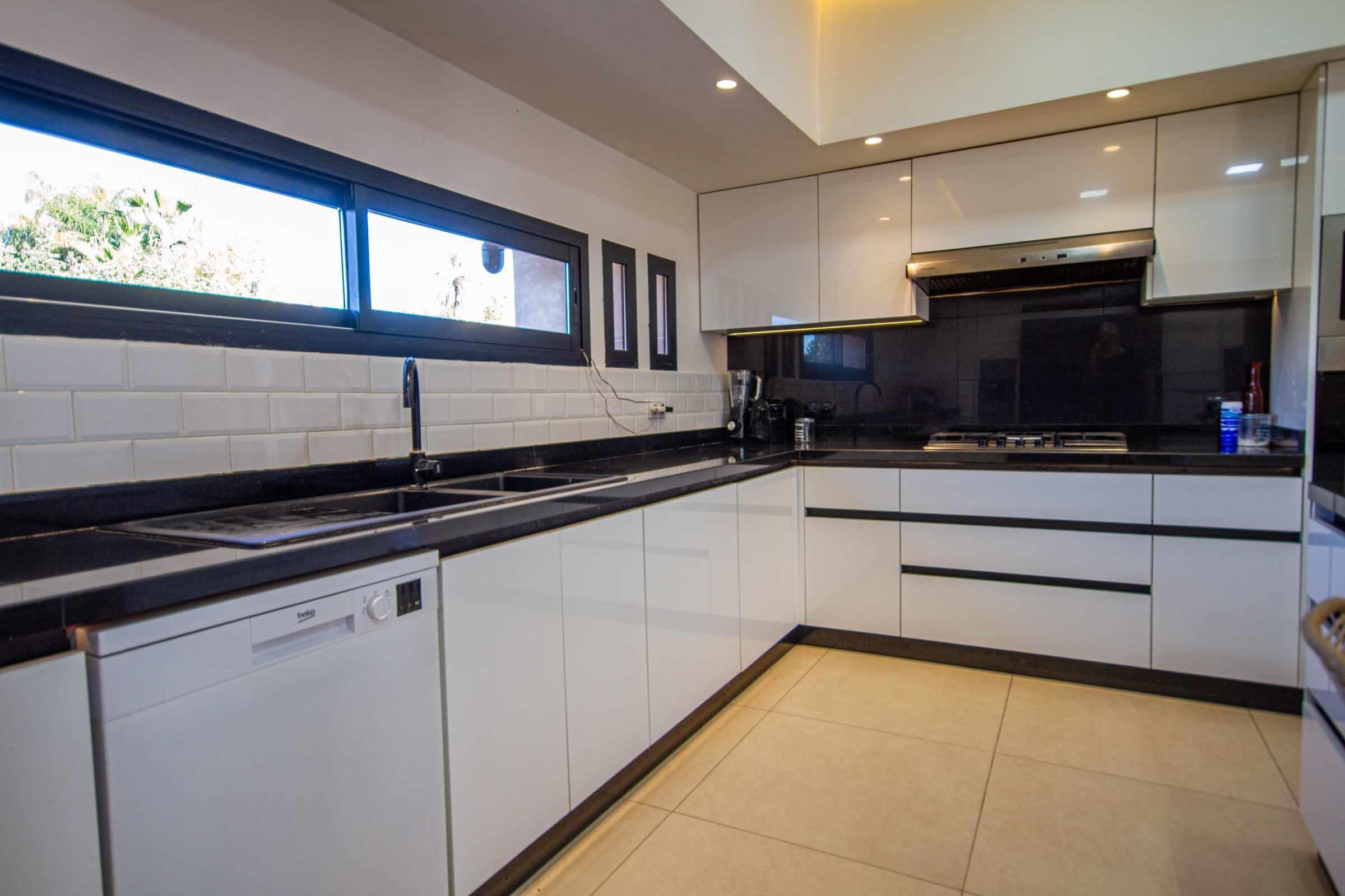 La cuisine entièrement équipée, moderne et fonctionnelle, s’ouvre sur un vaste séjour baigné de lumière, idéal pour partager des moments conviviaux.