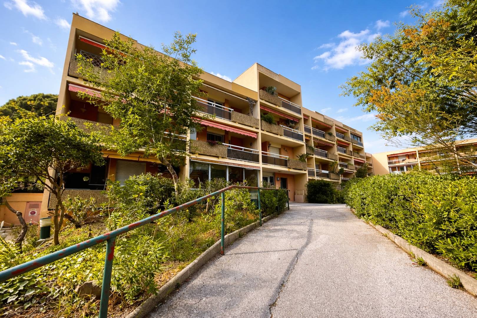 La résidence "Côte d'Azur 1" se situe au calme, à 450 mètres de la plage de la Favière et des commerces.
