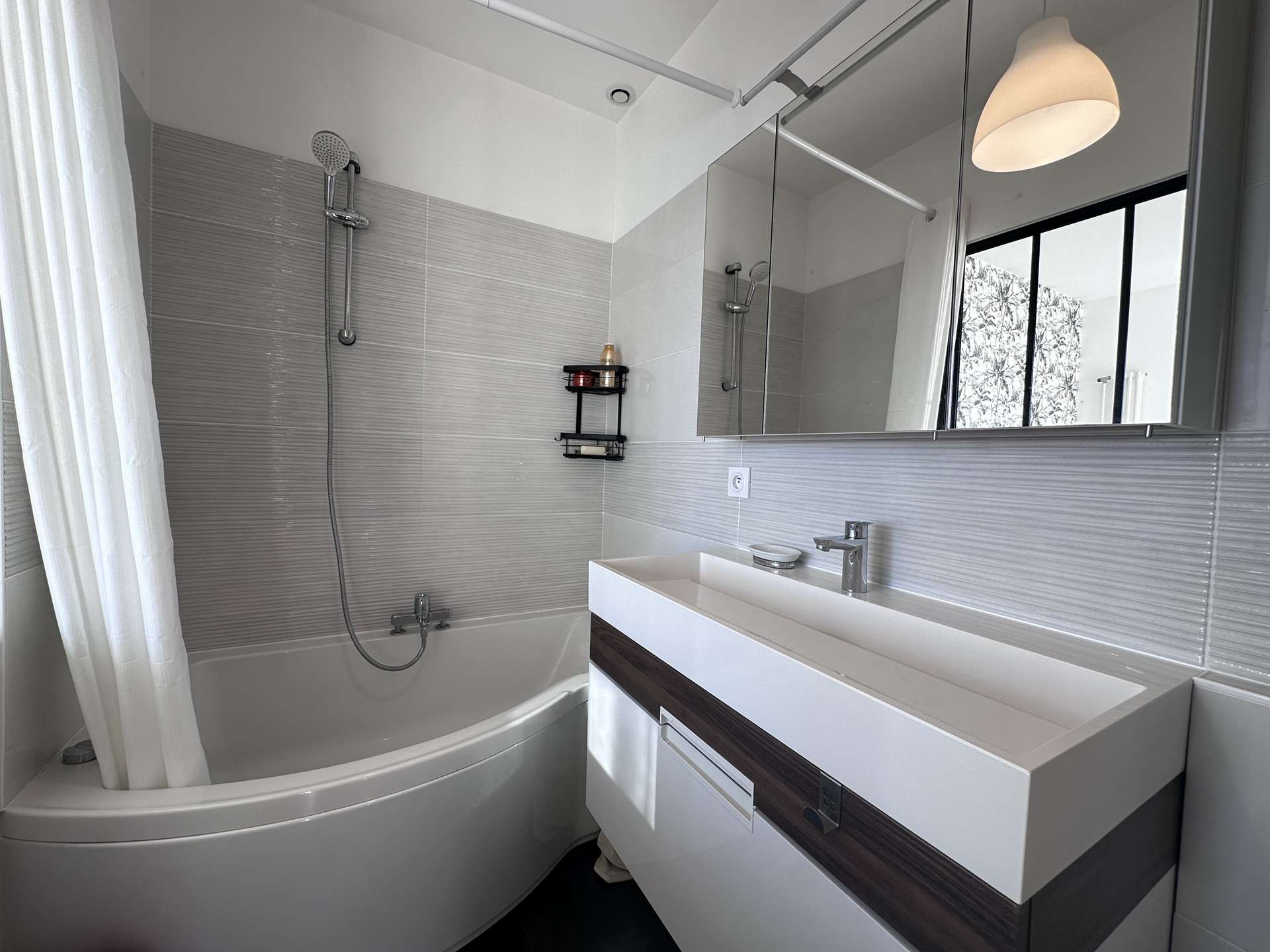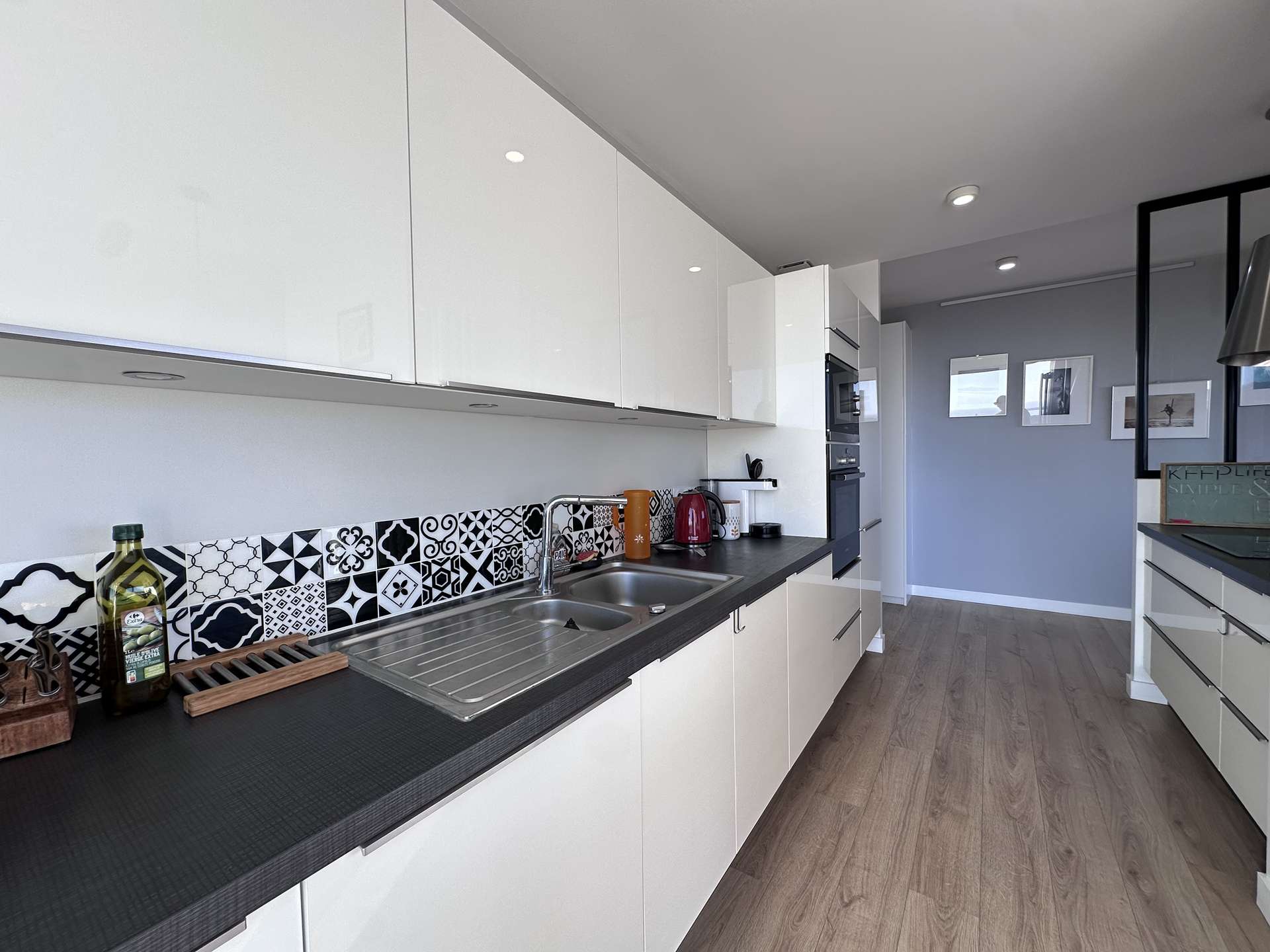 Cet appartement se compose d'une entrée, d'un grand séjour avec cuisine équipée, un coin repas et deux balcons. Les deux chambres de cet appartement permettent d'accéder au balcon, les deux possèdent un lit 140cm, une d'elle, offre également une salle d'eau privative. L'appartement propose également une salle de bain avec baignoire et un wc indépendant.