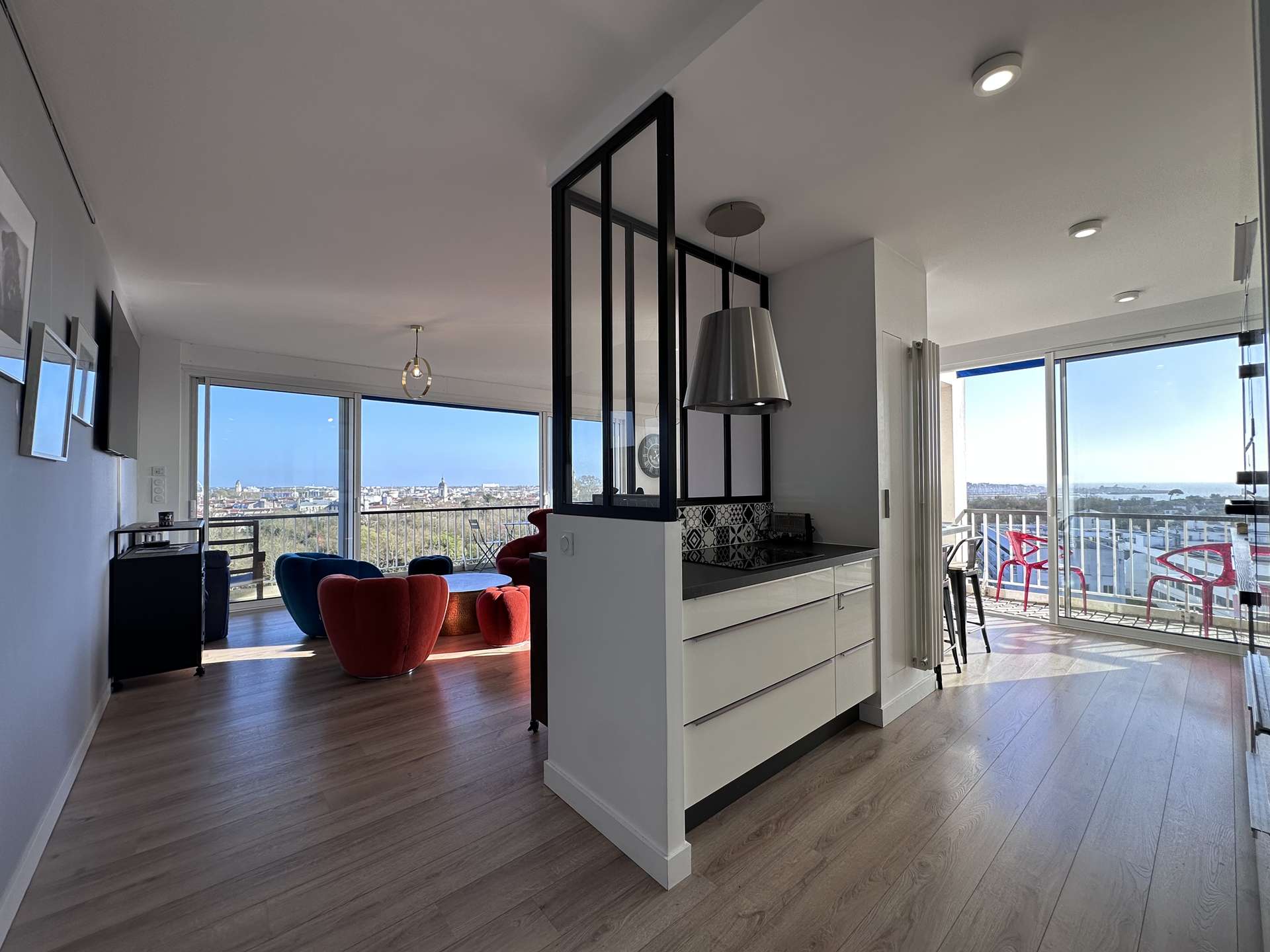 Les Plus de cette location à la mer : Appartement de standing avec vue imprenable sur La Rochelle, les parcs et l'océan. Ménage avec désinfection inclus. Remise et retour des clefs exclusivement sur La Rochelle (quartier des Minimes).