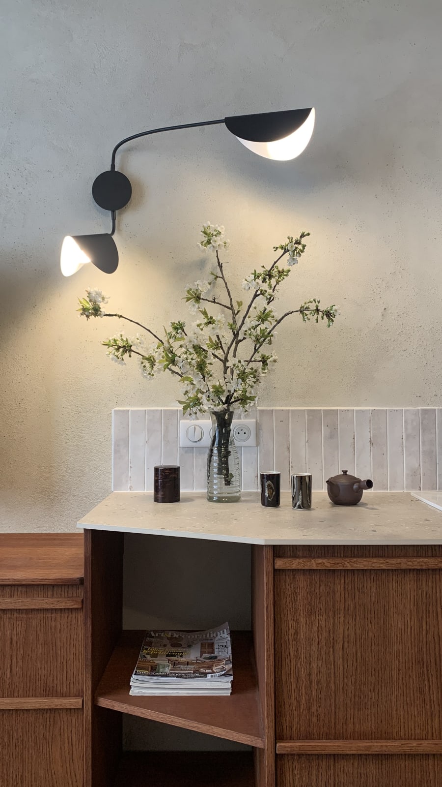 La Suite 3 adopte un concept boutique singulier, à mi-chemin entre un studio d'architecte d'intérieur et un appartement design pensé pour le quotidien. Large baie vitrée en fer forgé, poutres apparentes, verrière atelier, lignes contemporaines et matières naturelles composent une ambiance douce et élégante, à la fois inspirante et apaisante. La chambre, orientée côté cour, est séparée du salon par la verrière pour préserver calme et intimité. Elle dispose également d'un grand bureau équipé d'un écran, idéal pour le télétravail.