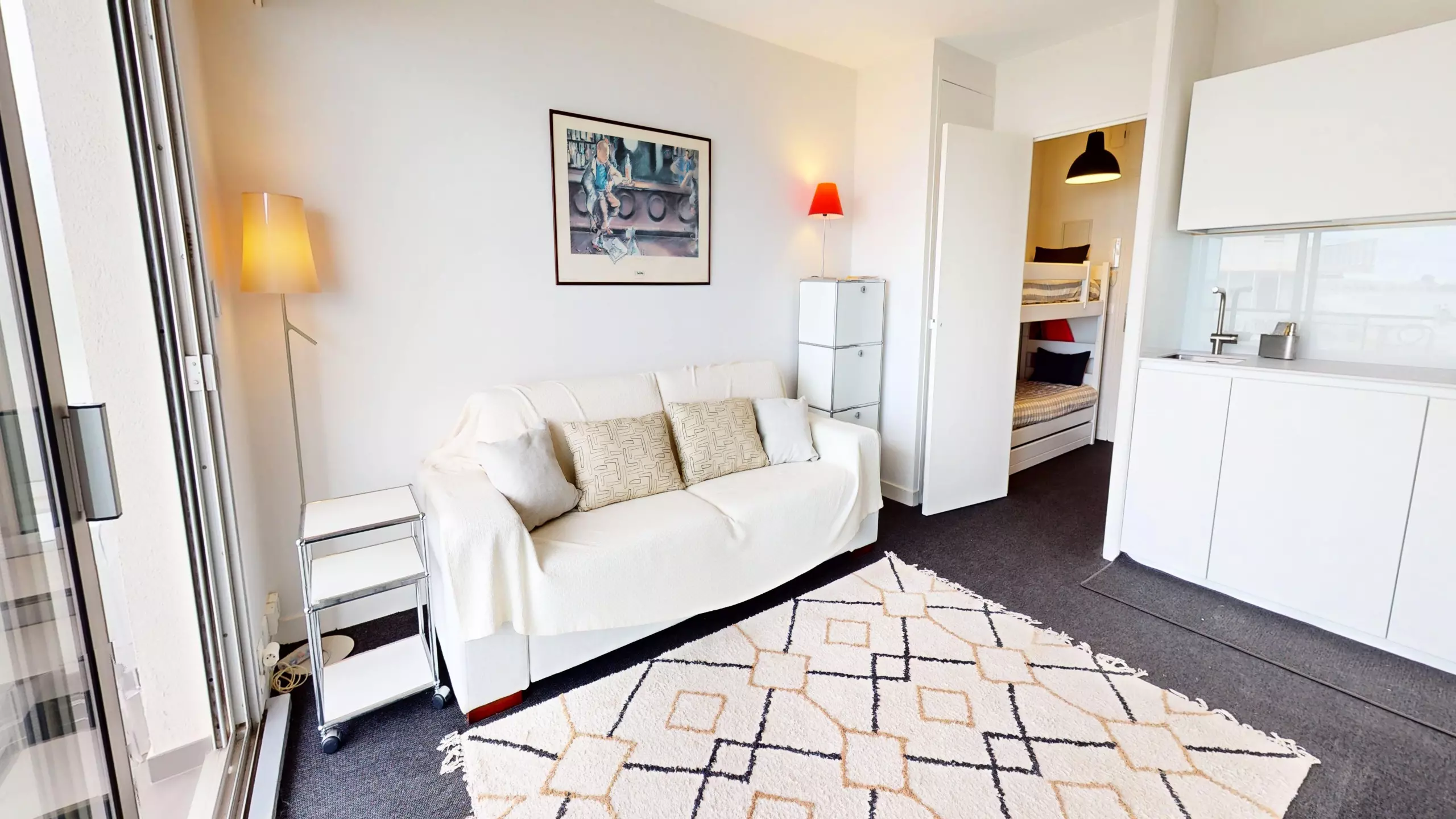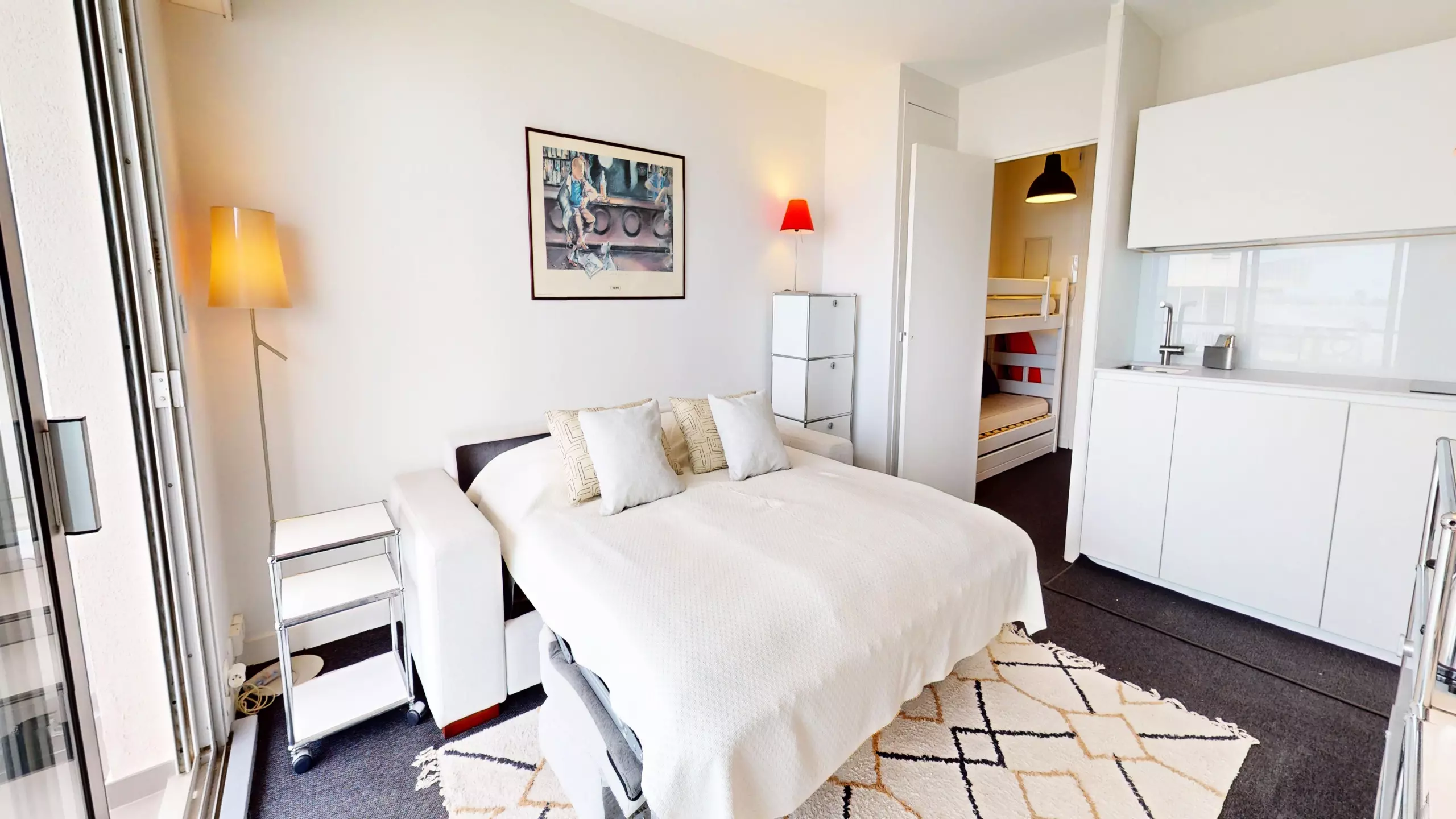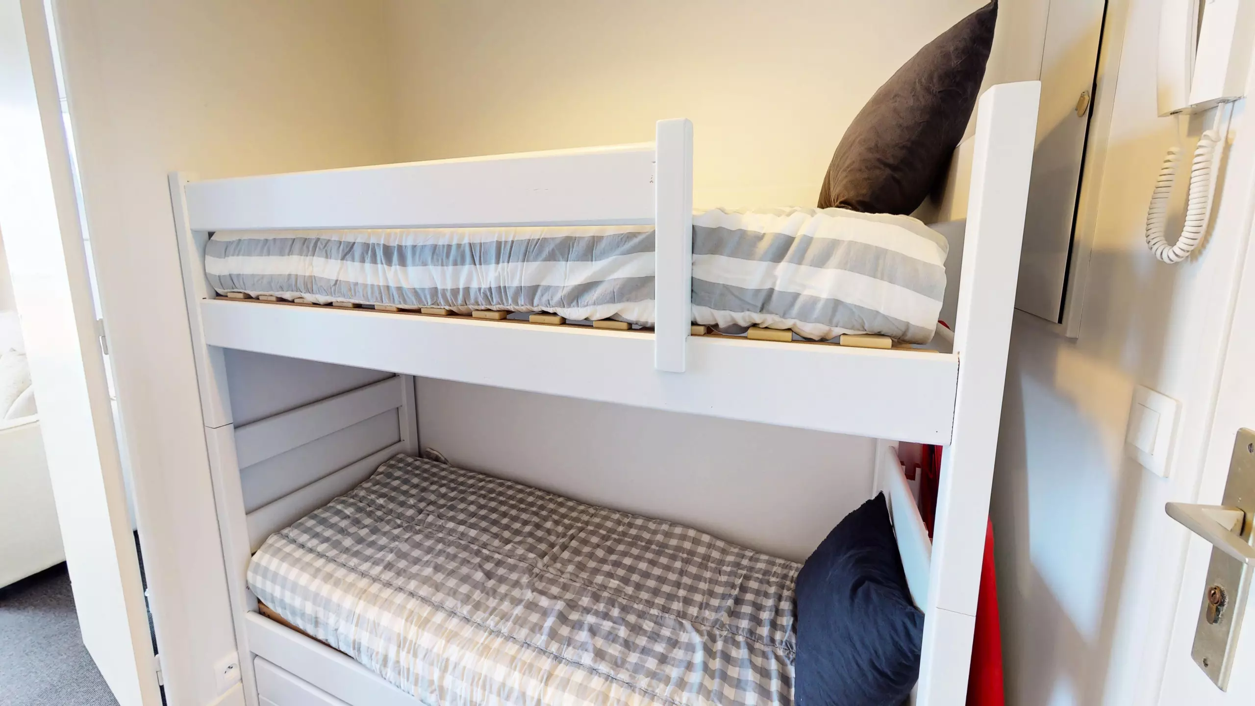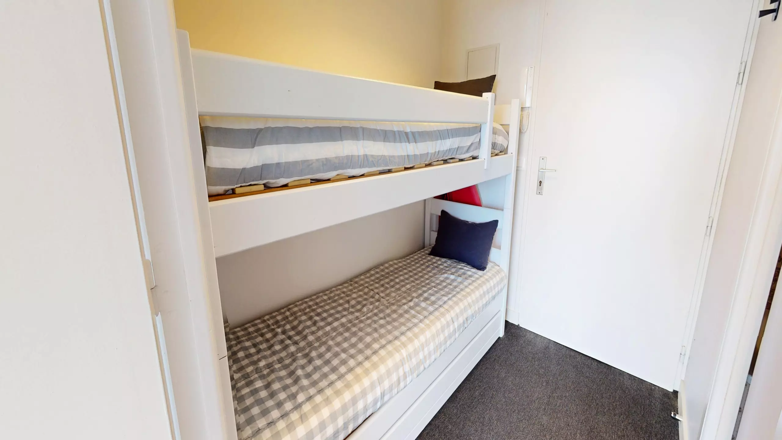-Lit superposé (2 lits simples) dans l'entrée et canapé-lit double dans le séjour.