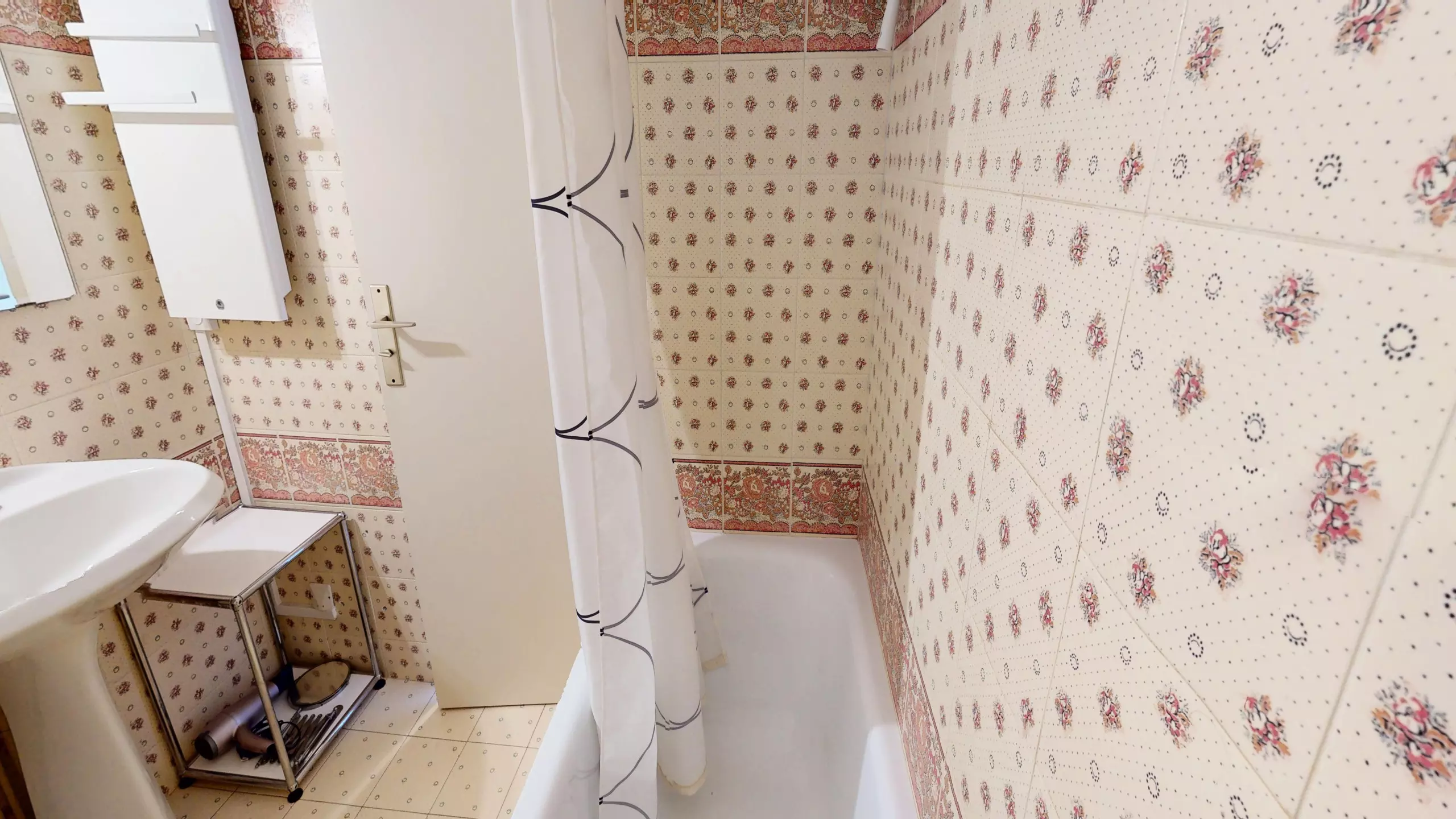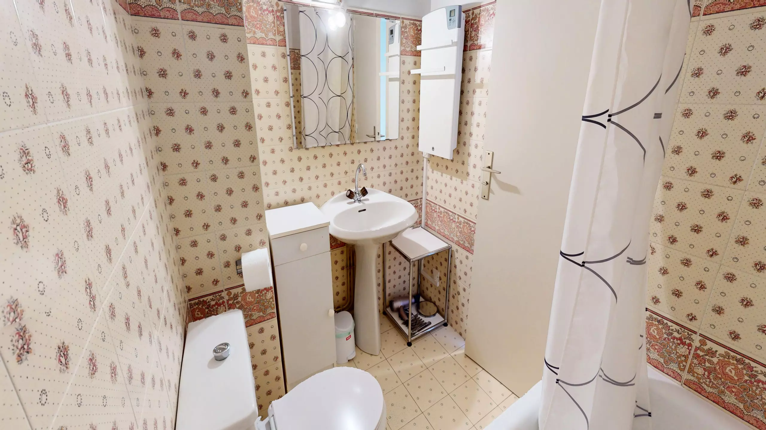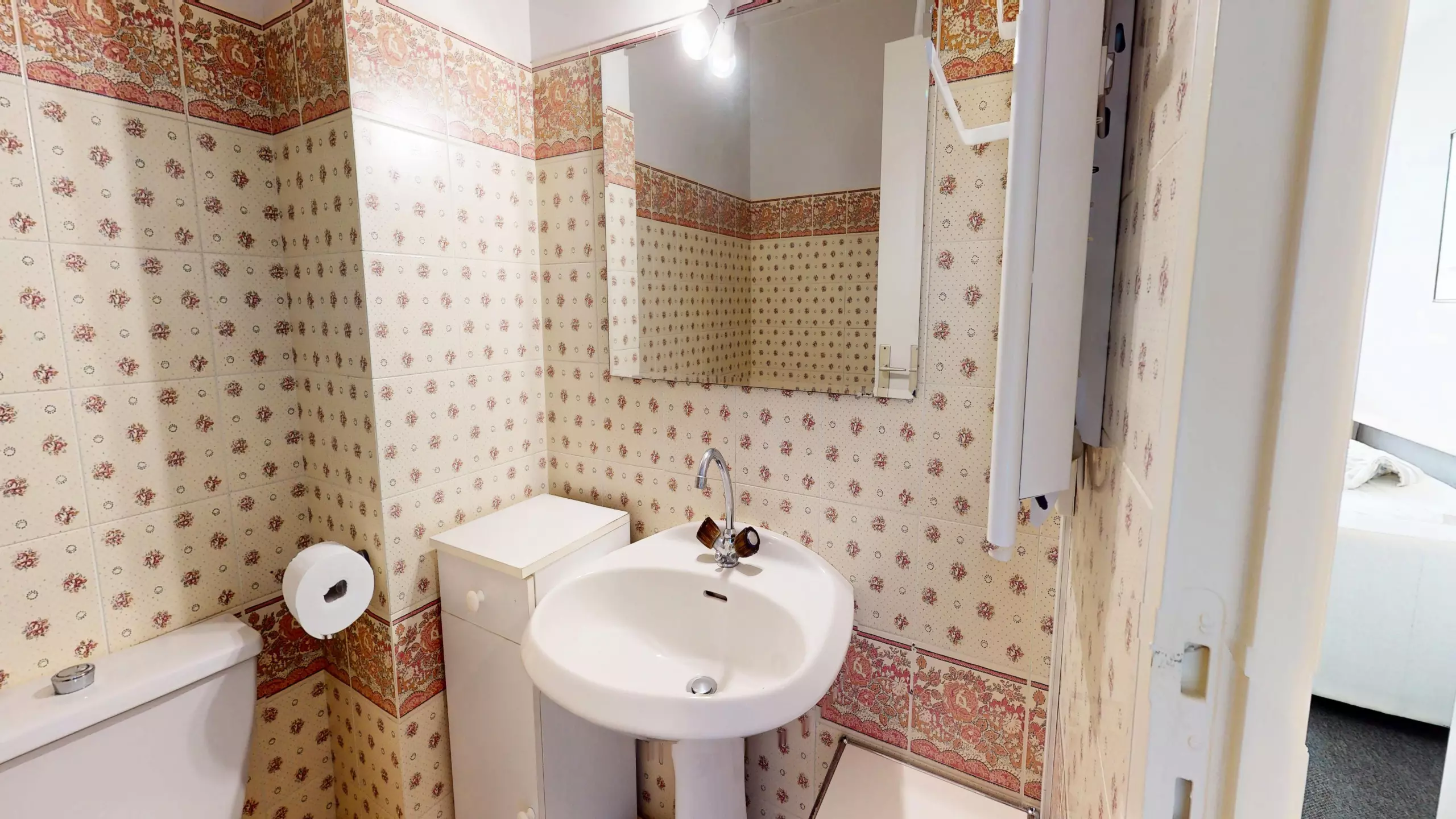 Dès le pas de la porte, opère. L’entrée s’ouvre sur un espace astucieusement agencé : sur votre droite, un coin nuit propose un lit superposé composé de deux lits simples (90x190). À gauche, vous trouverez une salle de bain fonctionnelle avec baignoire et WC.