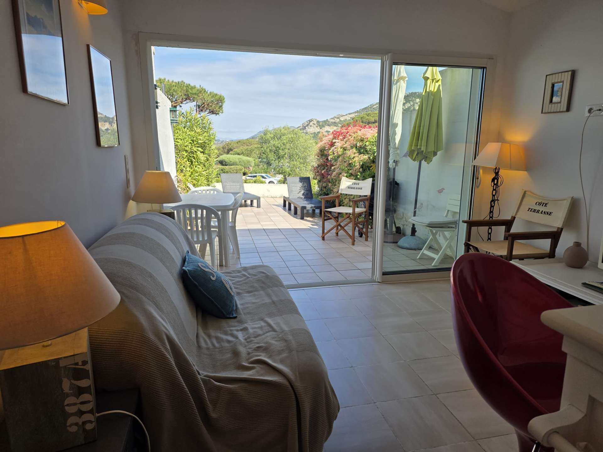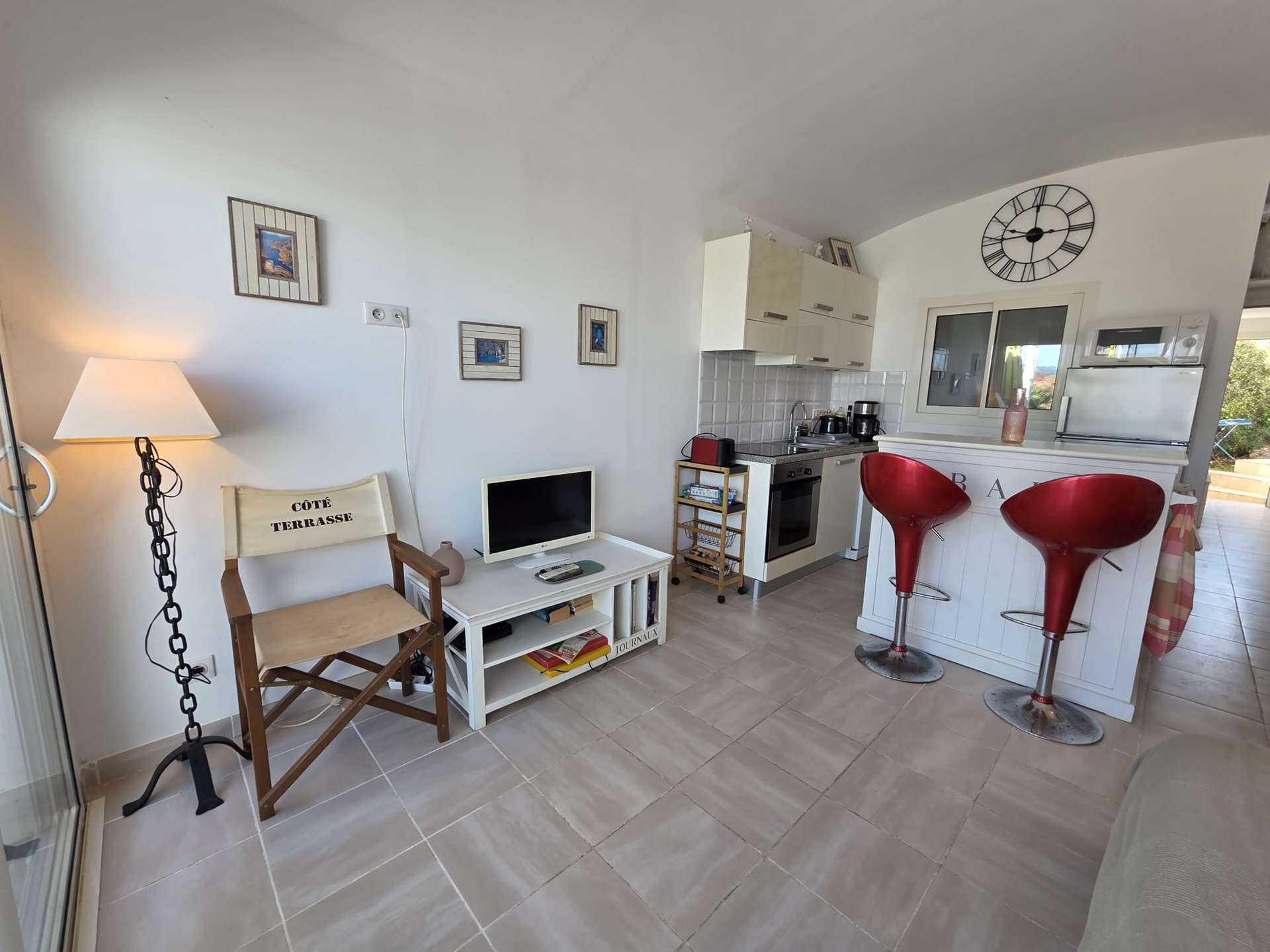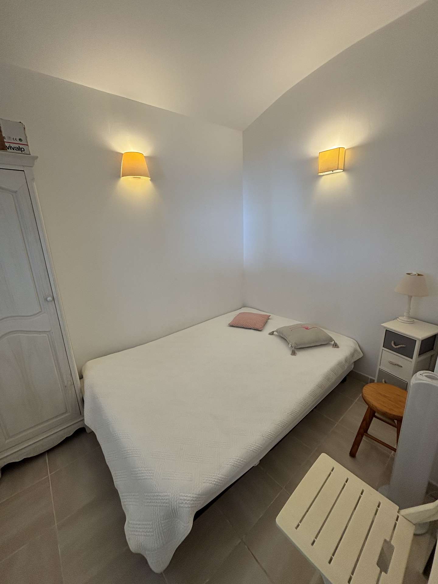 L'appartement, au rez-de-chaussée est composé d'une cuisine équipée, d'un salon avec canapé convertible donnant sur une jolie terrasse, D'une première chambre avec un lit double et d'une deuxième chambre avec un lit double, d'une salle d'eau avec WC.