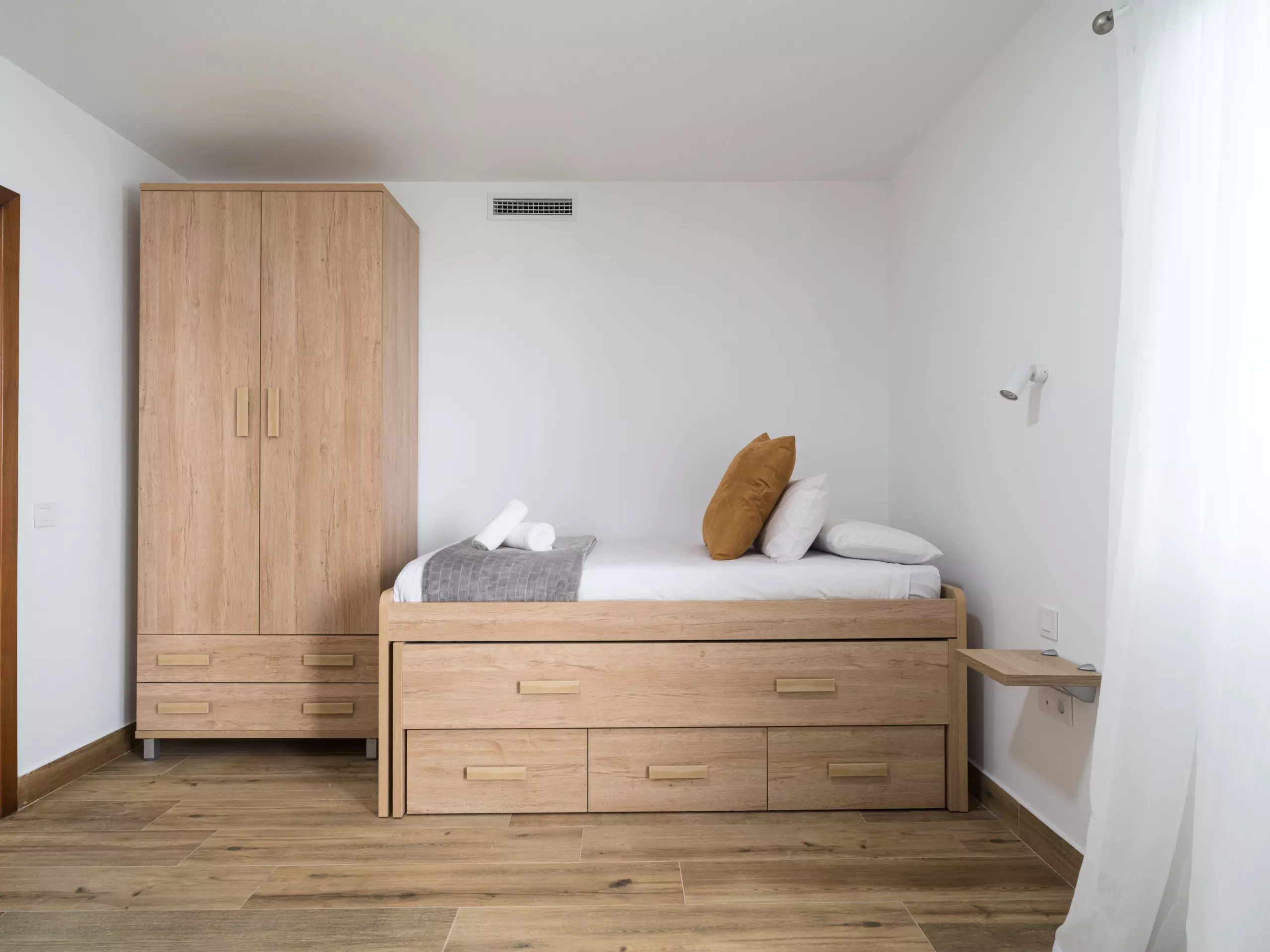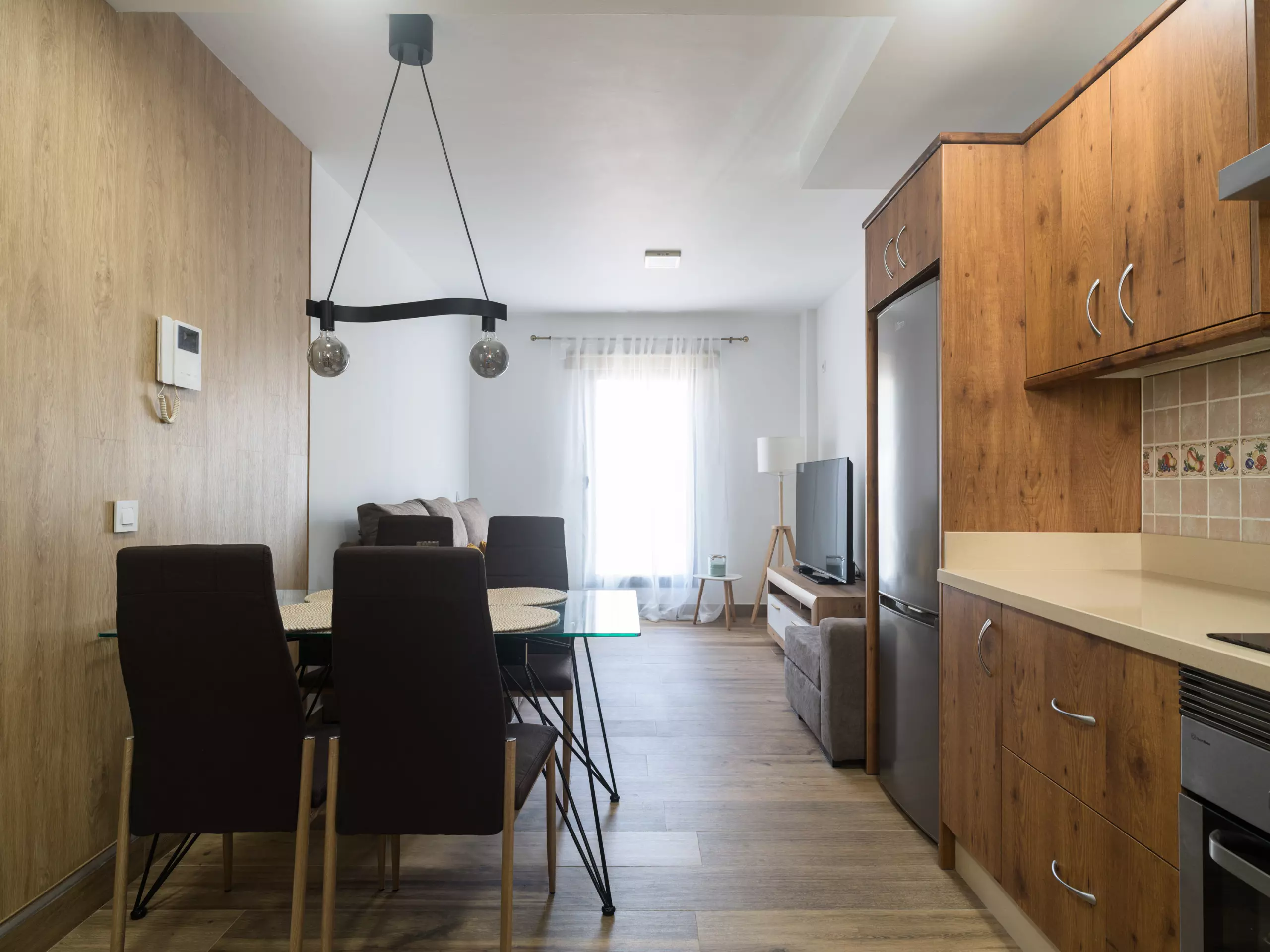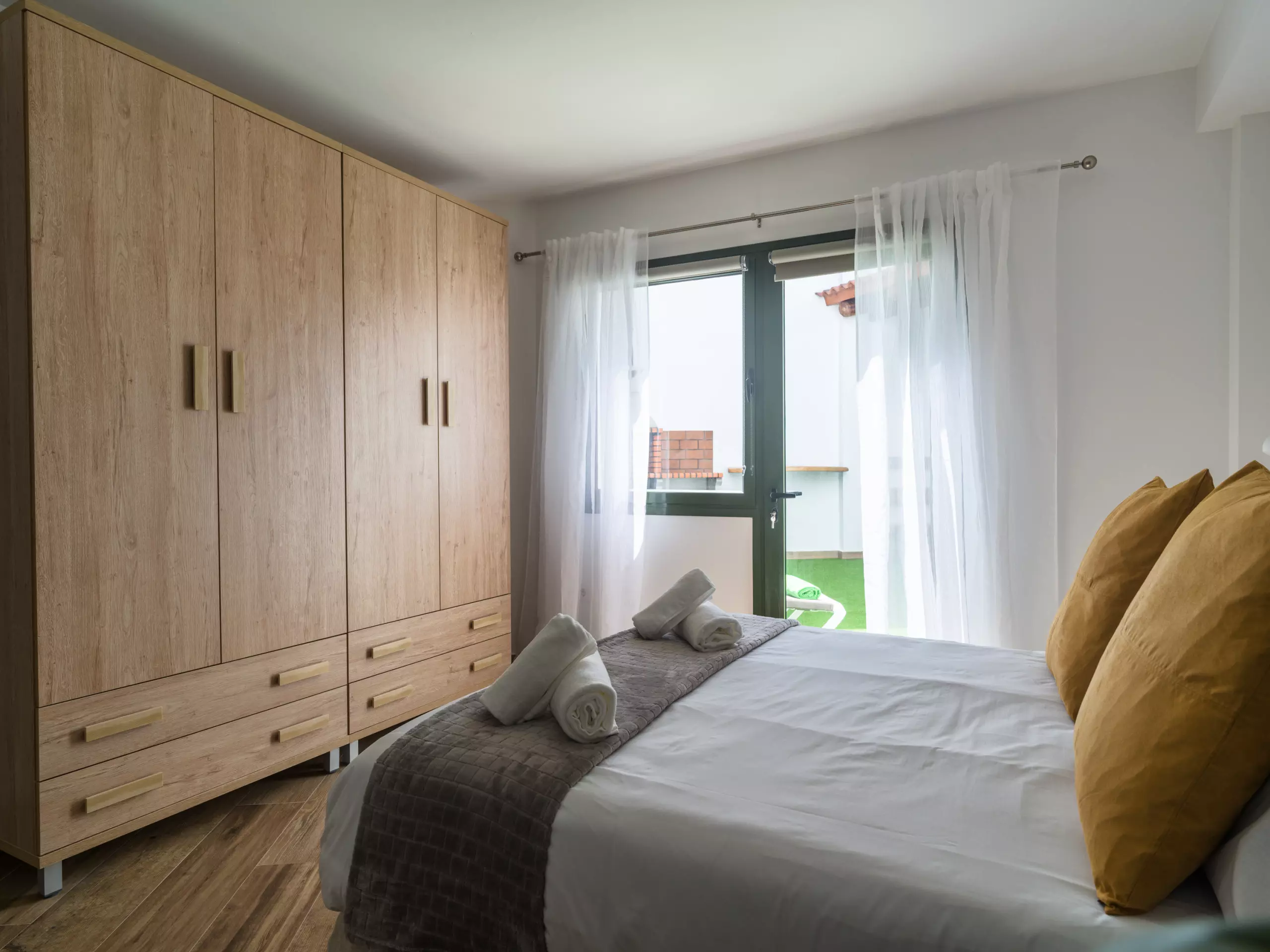 Cet appartement de deux chambres offre une ambiance chaleureuse, lumineuse et fonctionnelle, conçu pour le repos et le confort. Il dispose de la climatisation dans tout le logement et d'une distribution parfaite pour jusqu'à 4 personnes, avec une chambre avec un lit double et une autre avec un lit individuel.