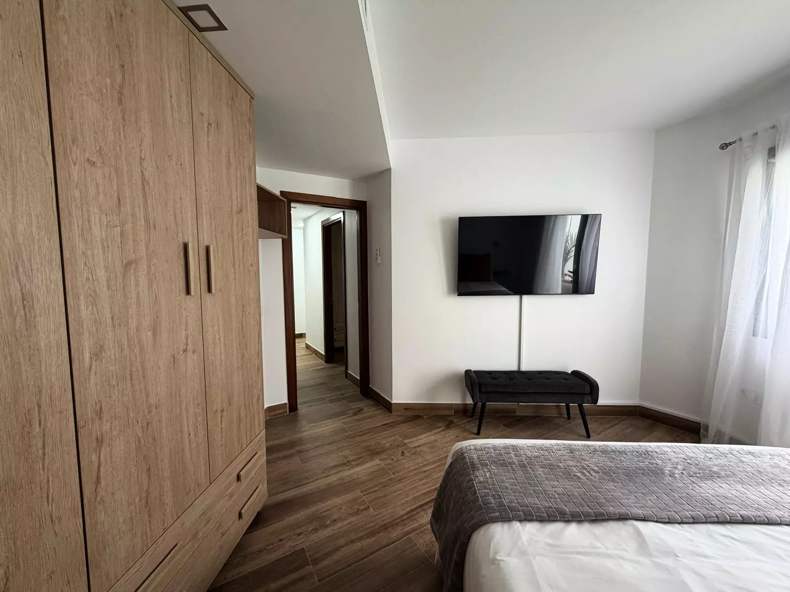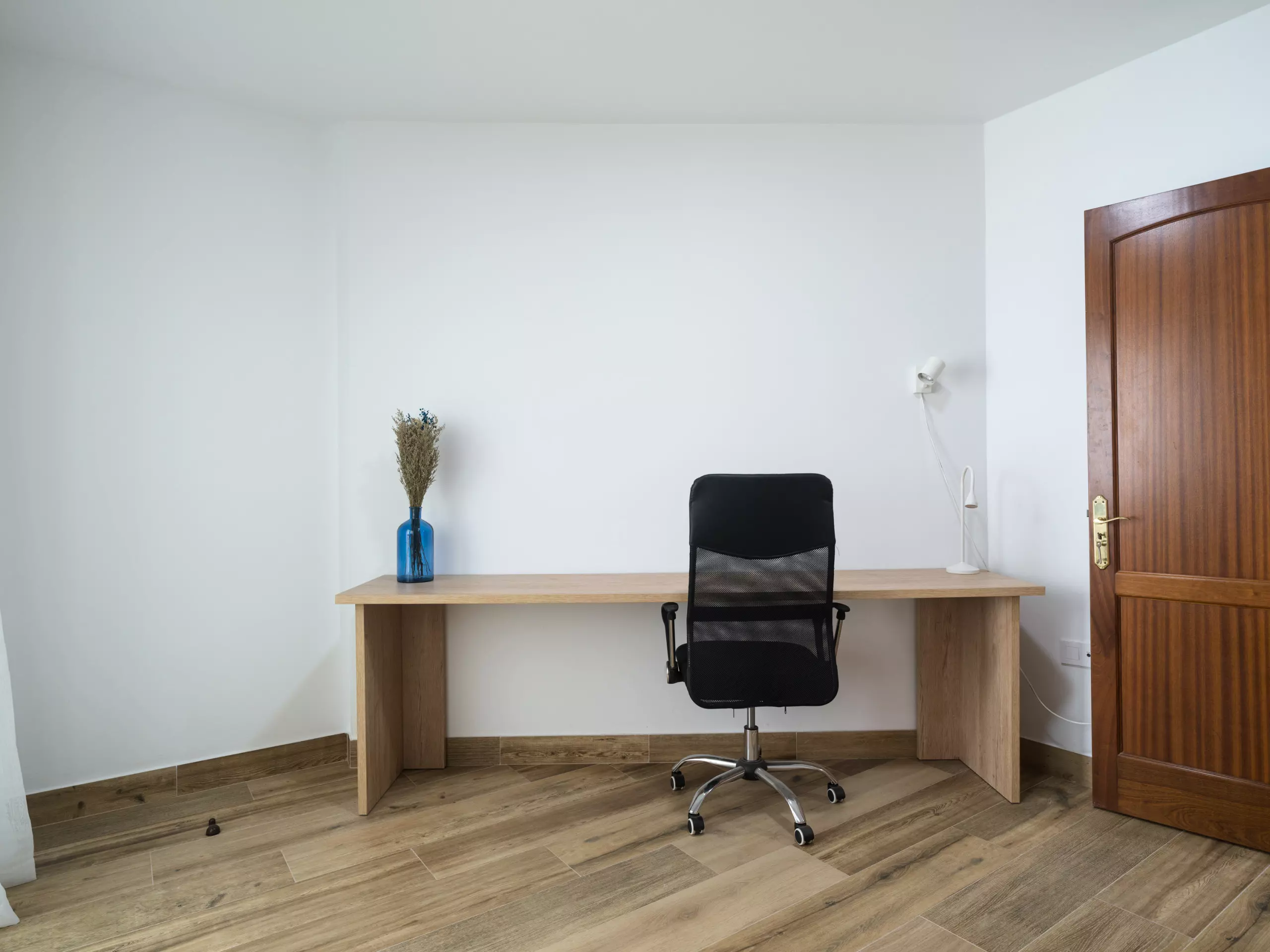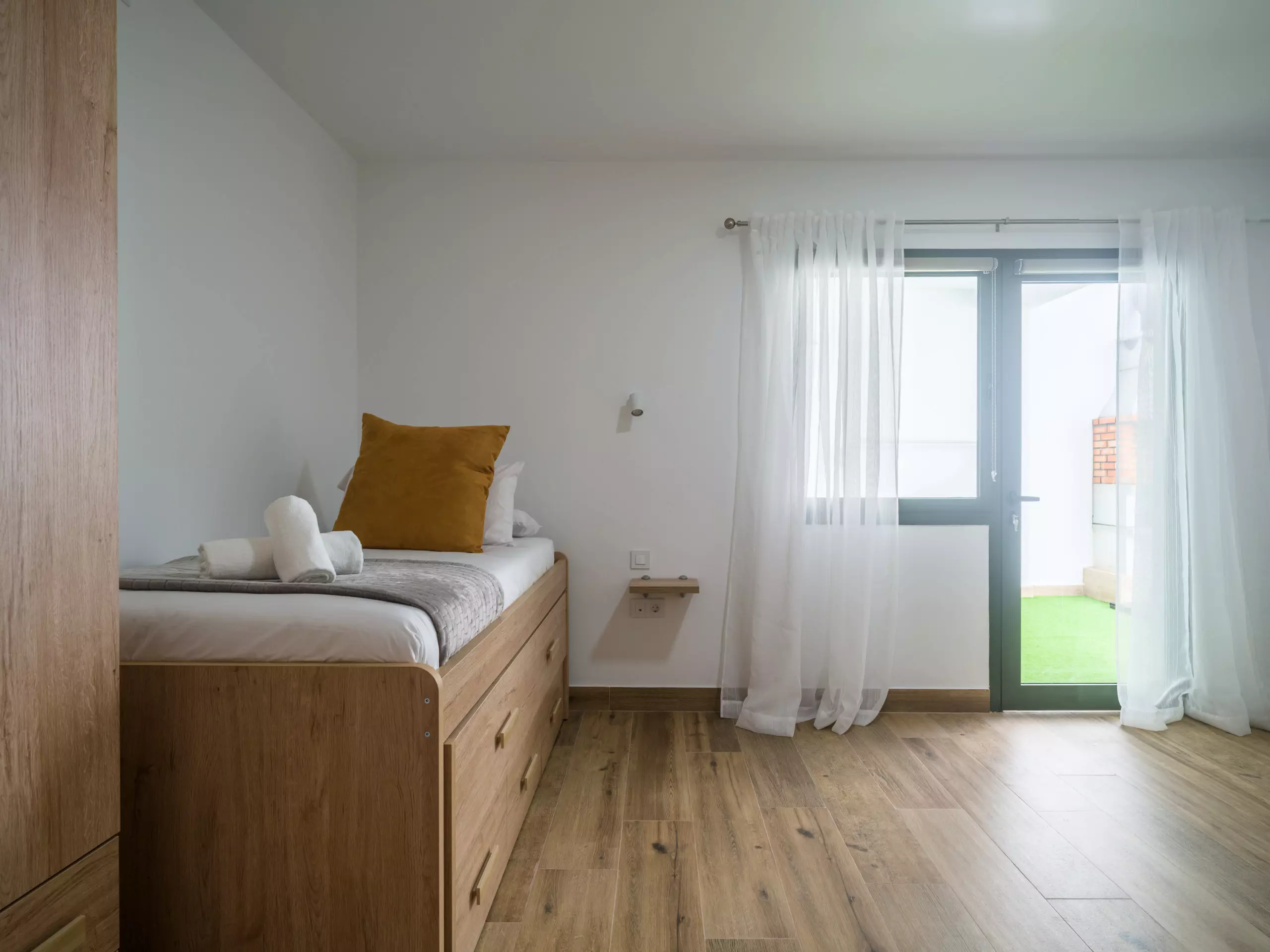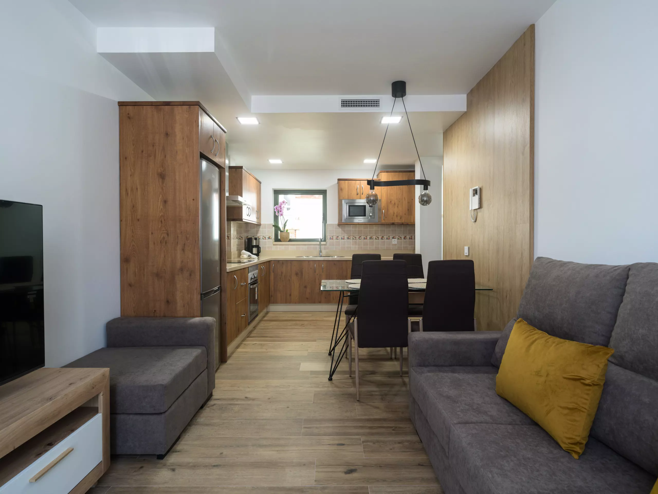 Cet appartement de deux chambres offre une ambiance chaleureuse, lumineuse et fonctionnelle, conçu pour le repos et le confort. Il dispose de la climatisation dans tout le logement et d'une distribution parfaite pour jusqu'à 4 personnes, avec une chambre avec un lit double et une autre avec un lit individuel.