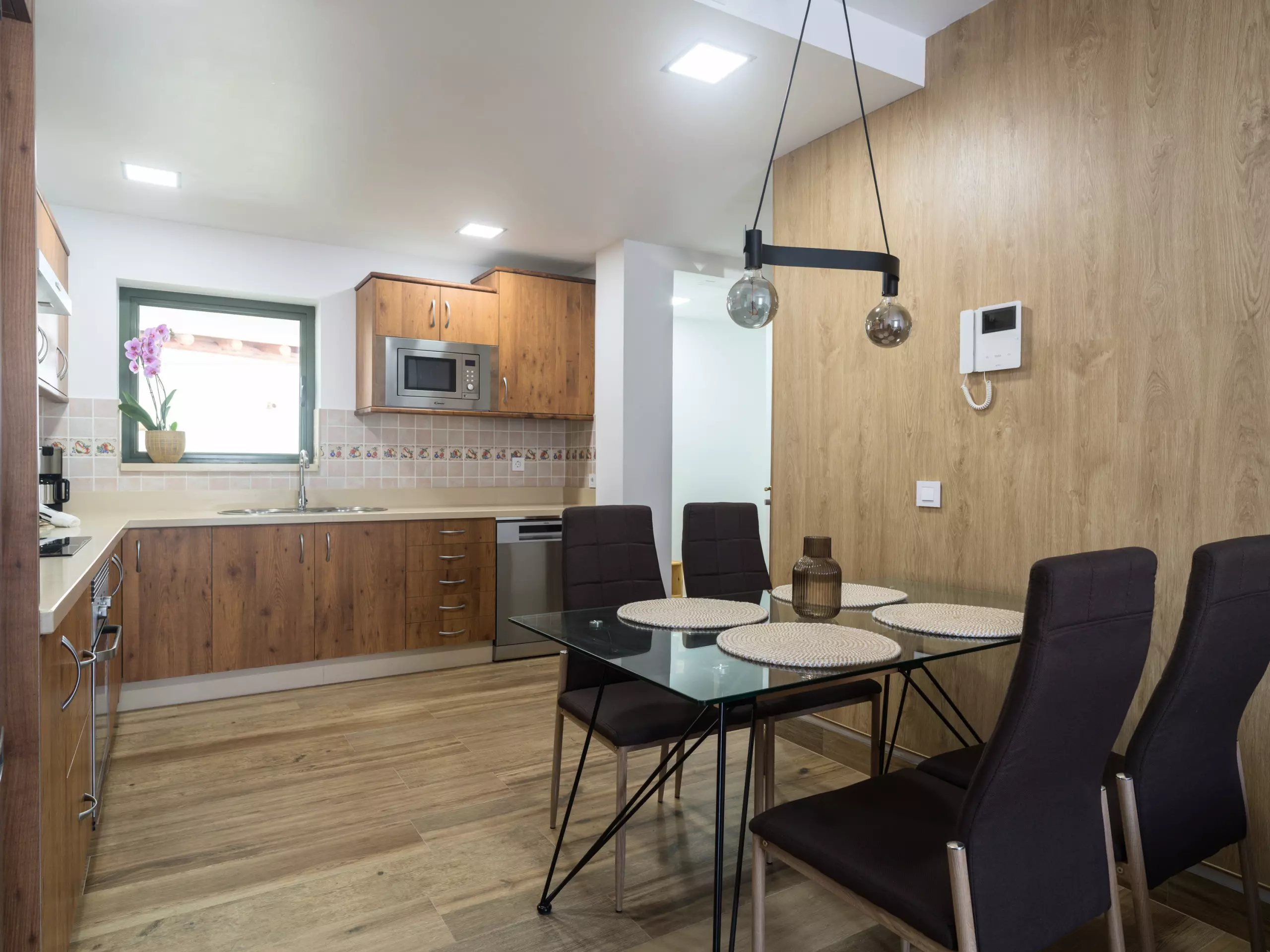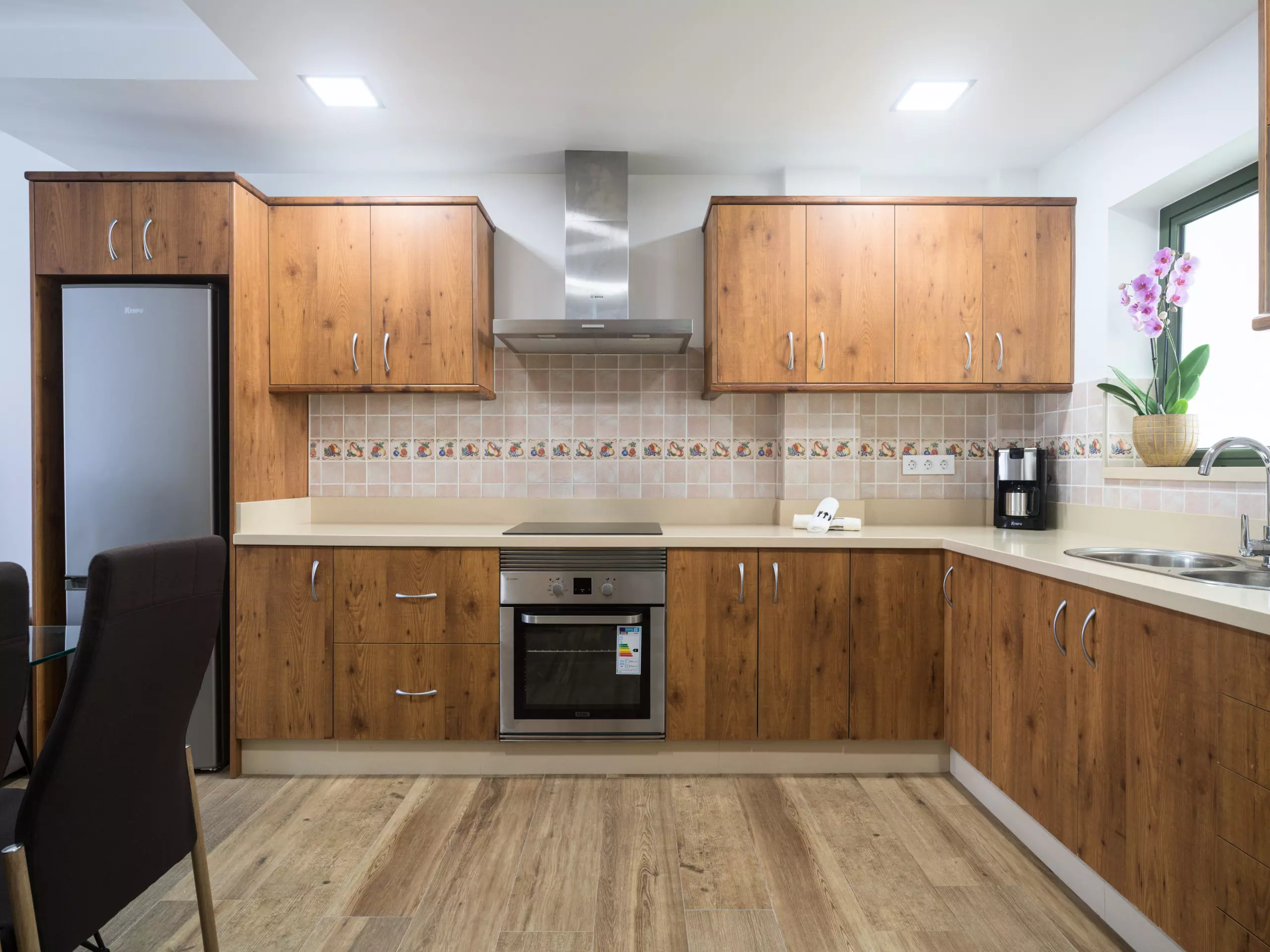 La cuisine américaine, entièrement équipée, dispose d'appareils électroménagers modernes tels que lave-linge, lave-vaisselle, four, micro-ondes et cafetière, ainsi que tous les ustensiles nécessaires pour vous permettre de préparer vos plats préférés et de vous sentir comme chez vous.