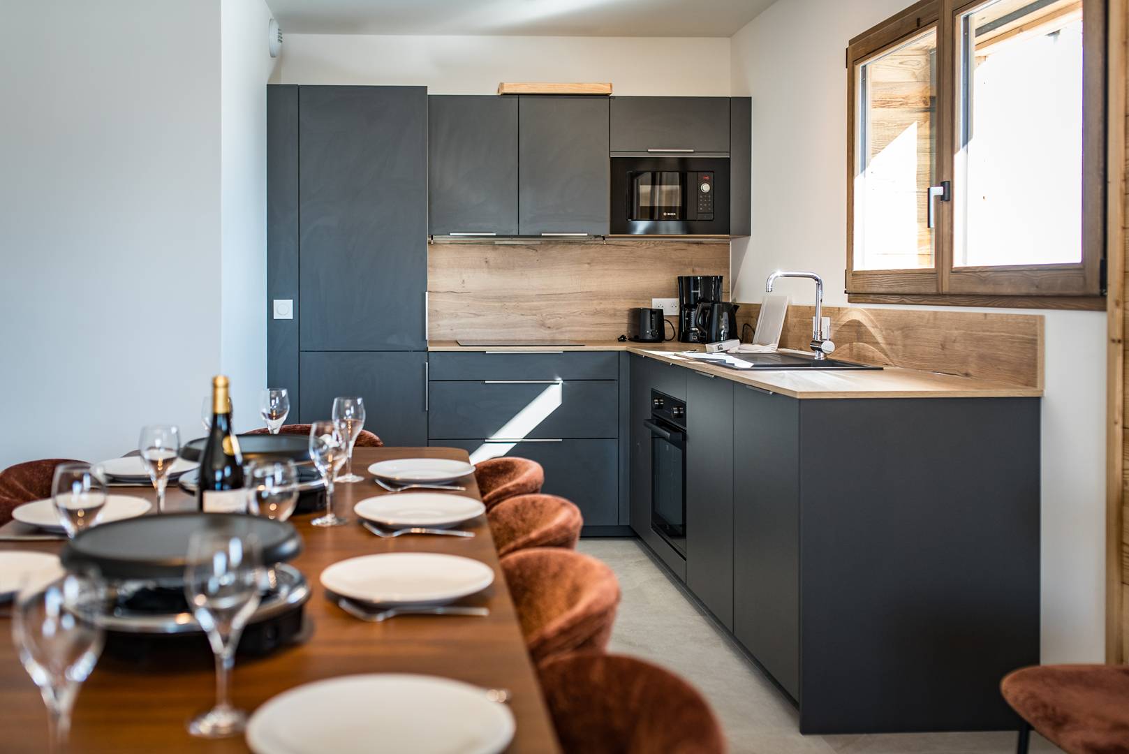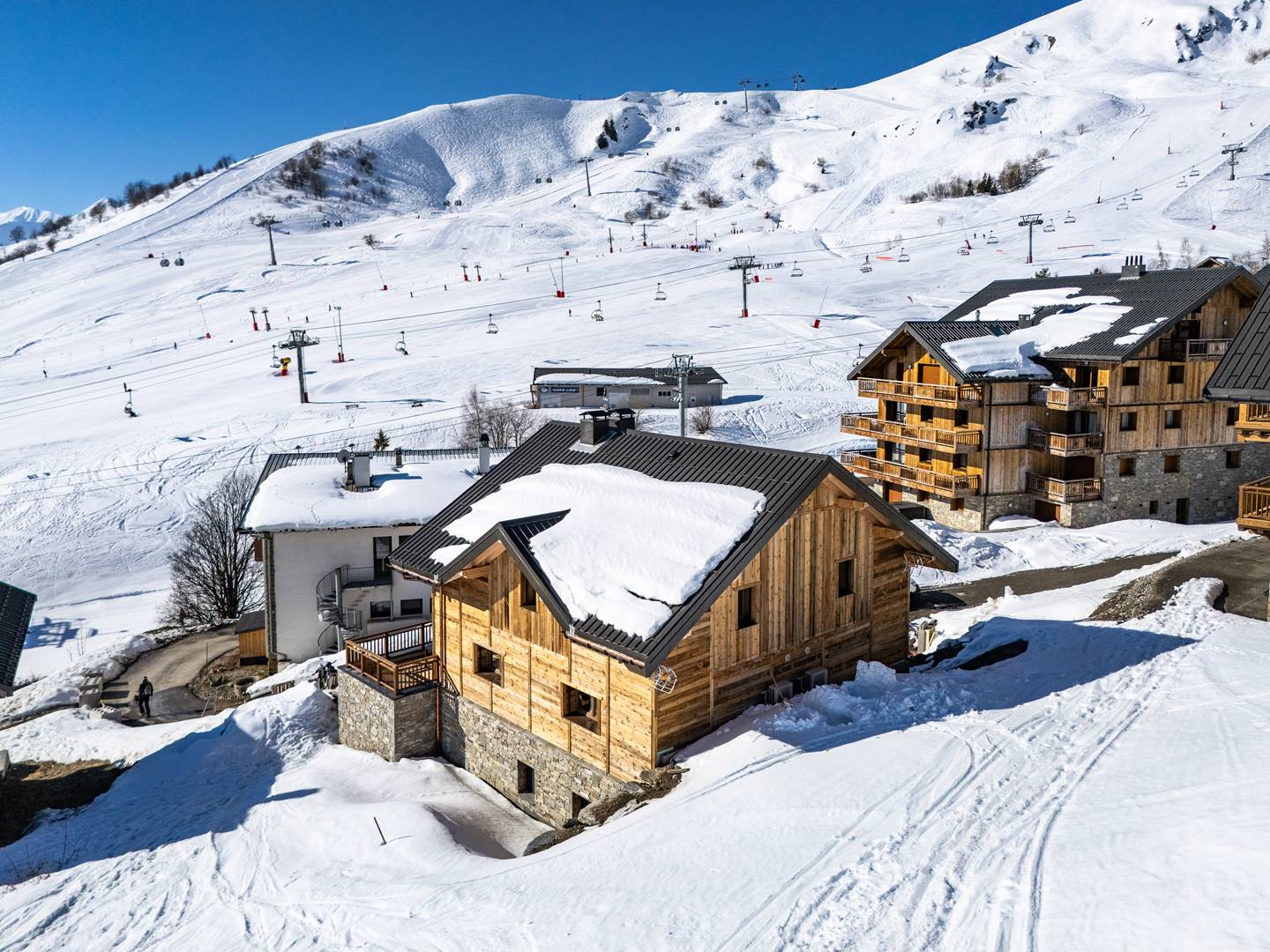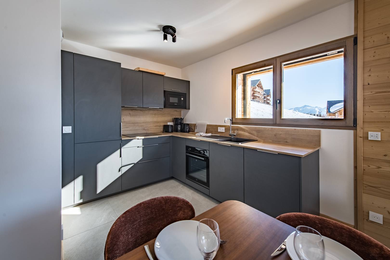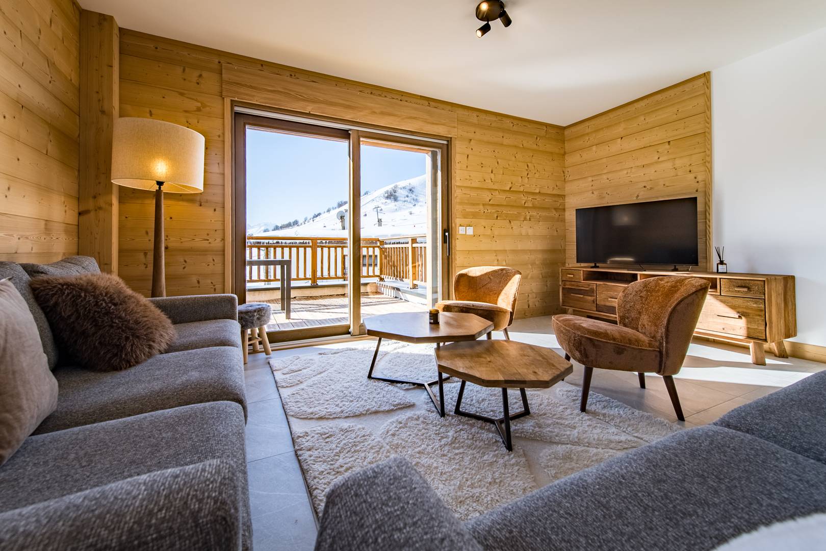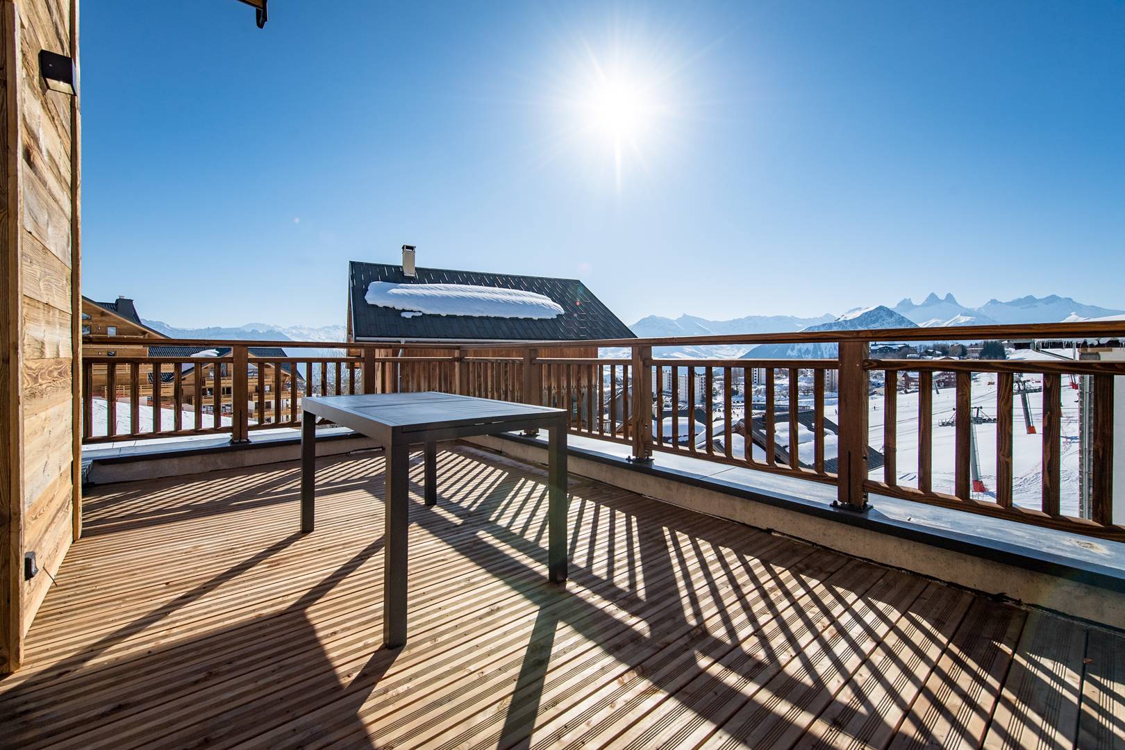 Le Chalet d'Anna propose une décoration travaillée et chaleureuse. L'orientation plein sud permet de bénéficier d'une grande luminosité et d'une vue sur les aiguilles d'Arves et les pistes.