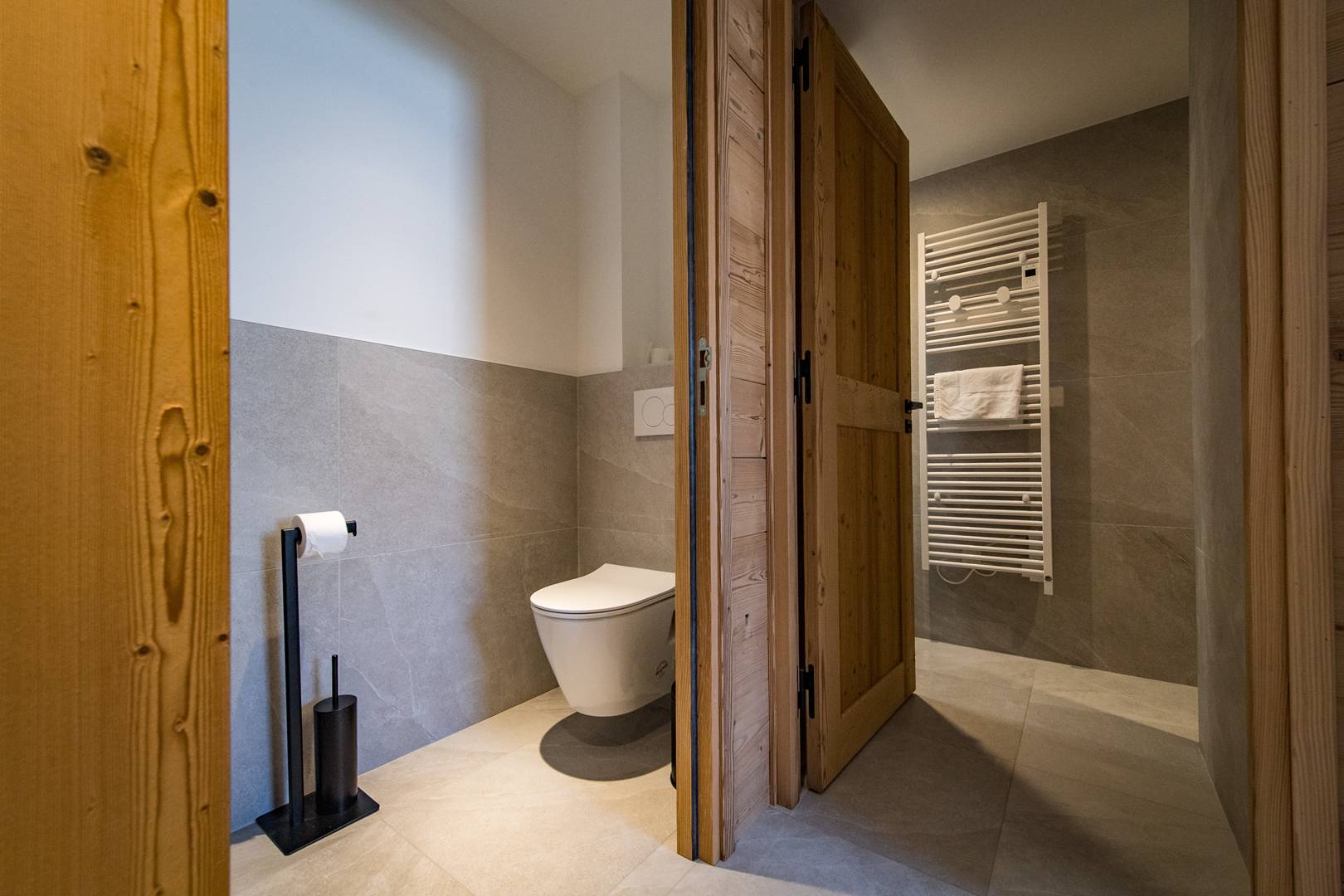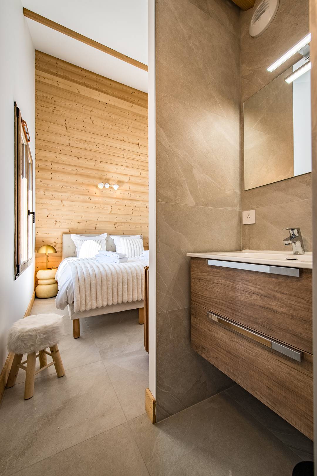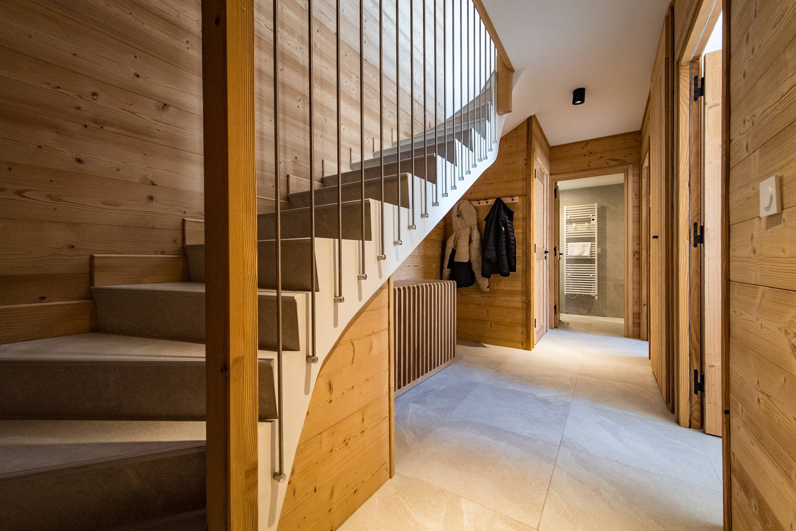 L'entrée dans le chalet se fait par le Rez de jardin où une ski room vous permet de stocker vos skis en sécurité.