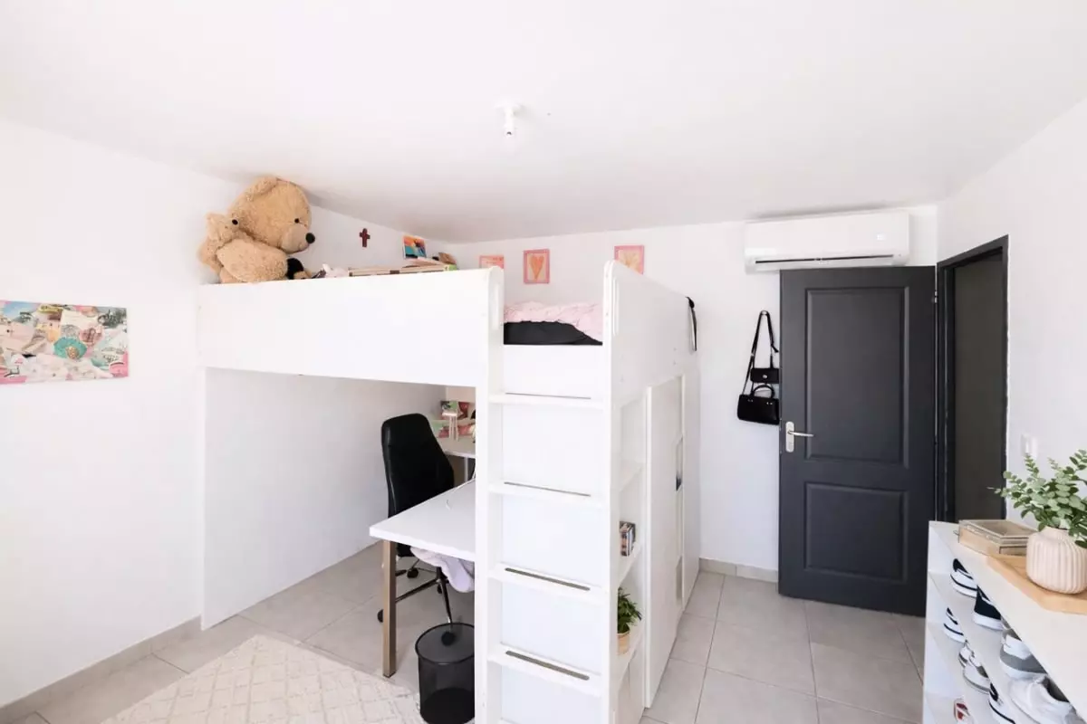 Deux d'entre elles disposent chacune d'un lit double de 160x190.La troisième chambre est une suite parental avec un lit de 180x200 et la quatrième chambre propose un aménagement original avec un lit en hauteur de 160x190, offrant un espace de repos spacieux.