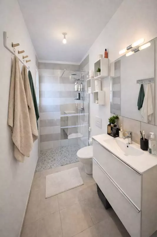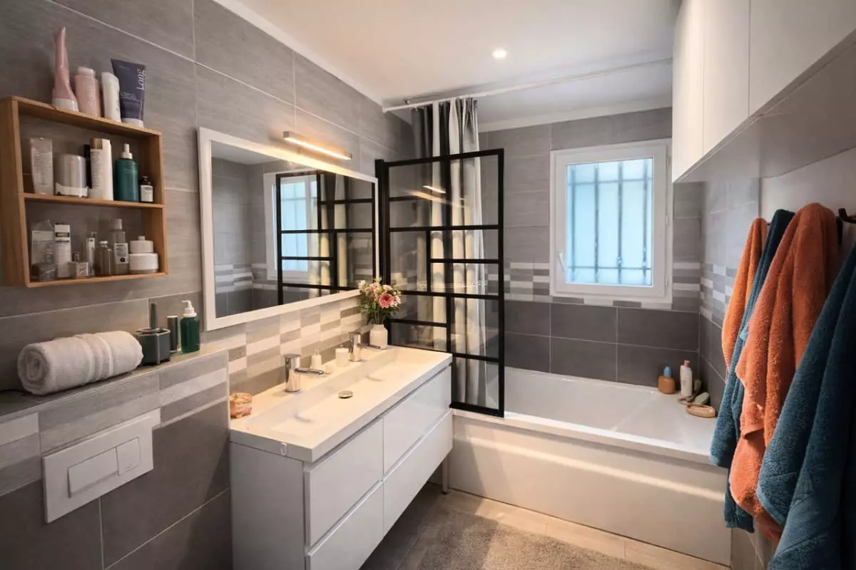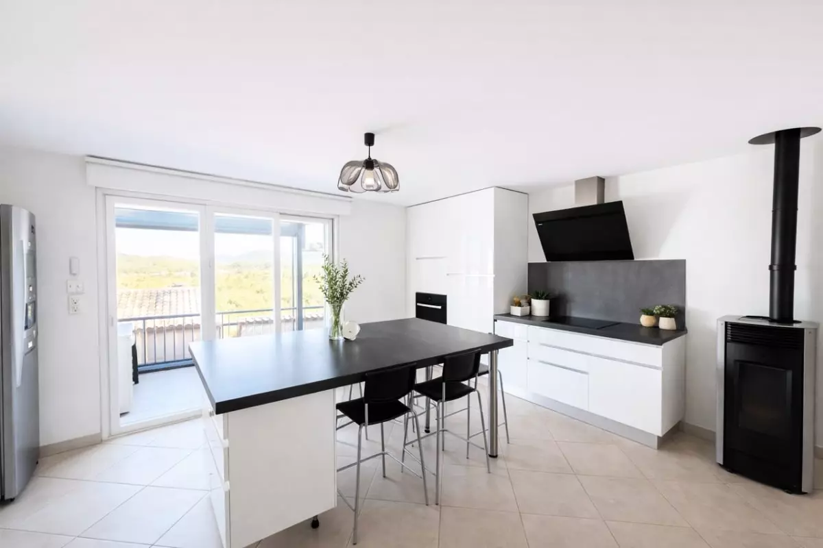 Vous disposerez de deux salles de bain et d'une cuisine entièrement équipée avec four, micro-onde, lave-vaisselle et une machine à café Bosch Tassimo (avec capsules plates). Pour des soirées gourmandes, un appareil à raclette est également à votre disposition. Pour votre confort thermique, le logement est équipé de la climatisation. Vous trouverez aussi un lave-linge, un sèche-linge, un fer à repasser et un sèche-cheveux, des atouts précieux pour les séjours de longue durée.