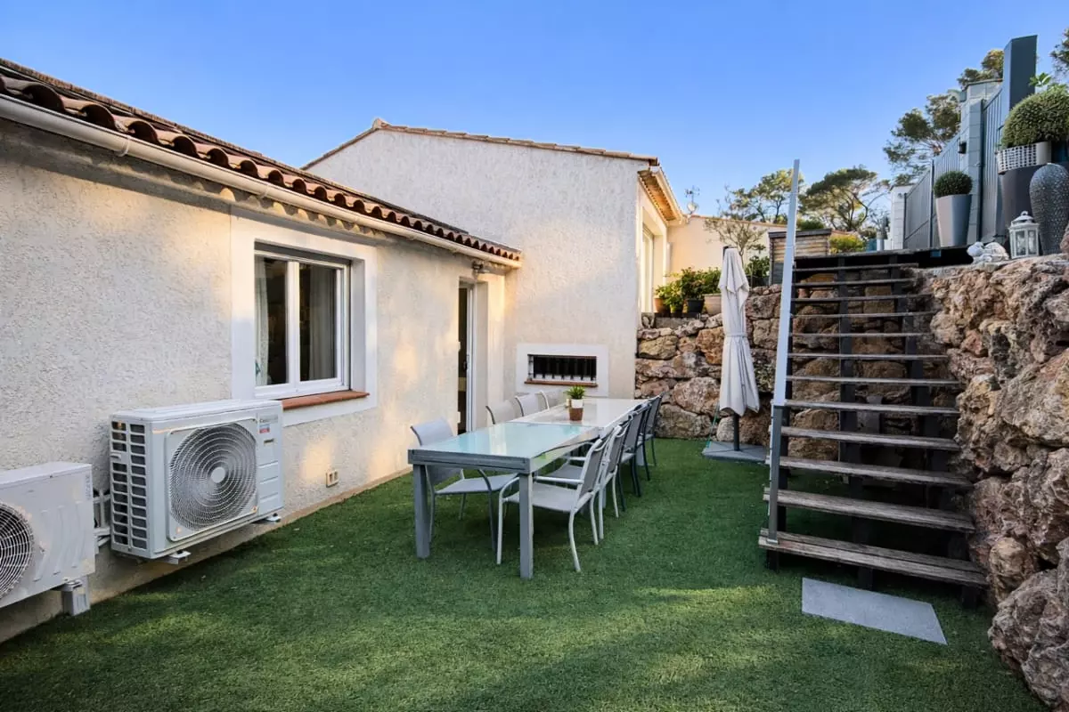 Les extérieurs invitent à la détente sous le soleil du Var. Vous pourrez profiter d'un grand jardin clos, idéal pour des moments de partage, ainsi que d'un barbecue pour vos grillades estivales. La véranda vitrée reste l'endroit coup de cœur pour profiter de l'extérieur tout en restant à l'abri.