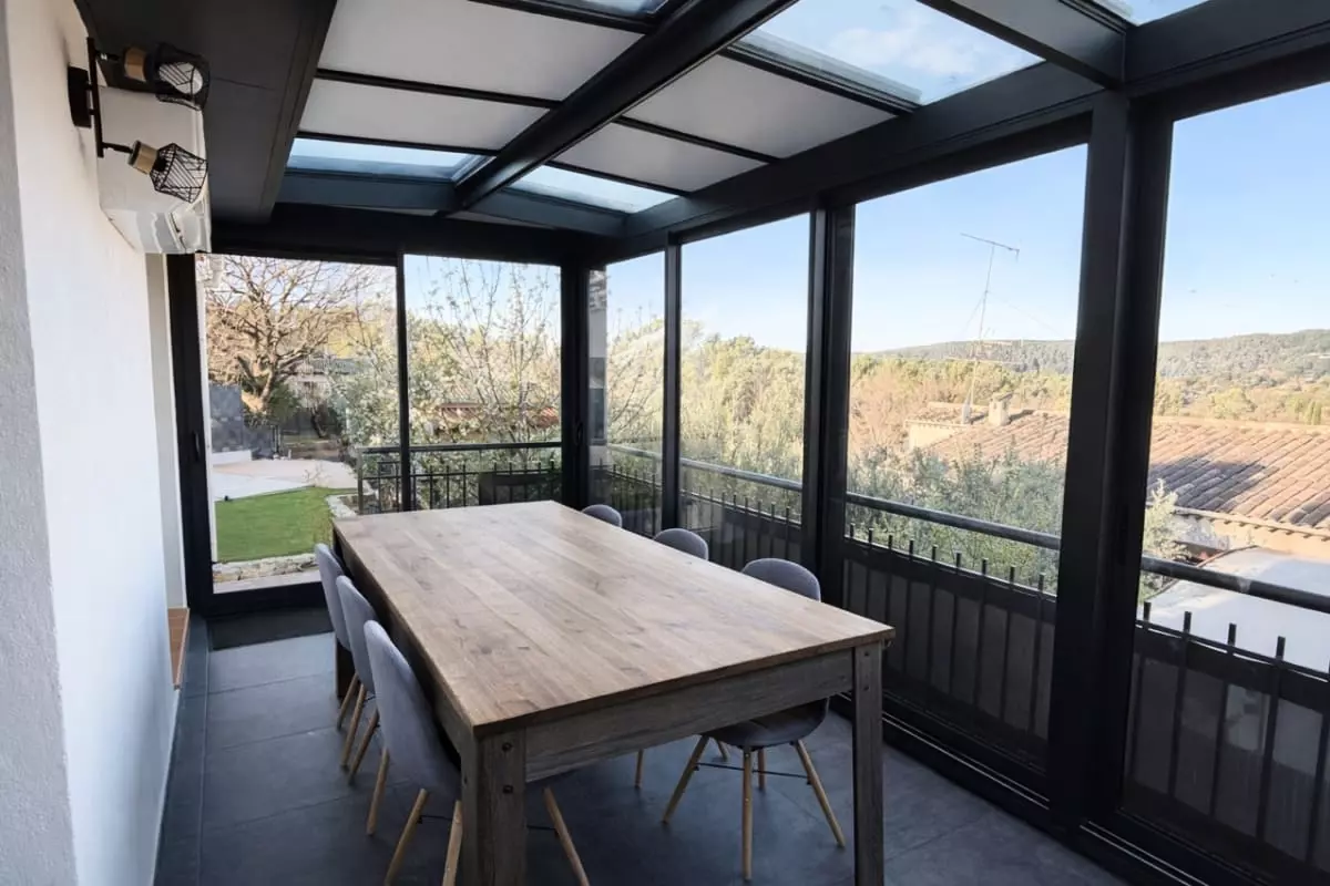 Cette belle villa à Draguignan est idéale pour des vacances en famille ou entre amis. D'une superficie de 130 m², elle se distingue par sa magnifique véranda vitrée qui offre une vue dégagée sur la ville, vous permettant de savourer chaque soir le spectacle du coucher du soleil au moment de l'apéritif.