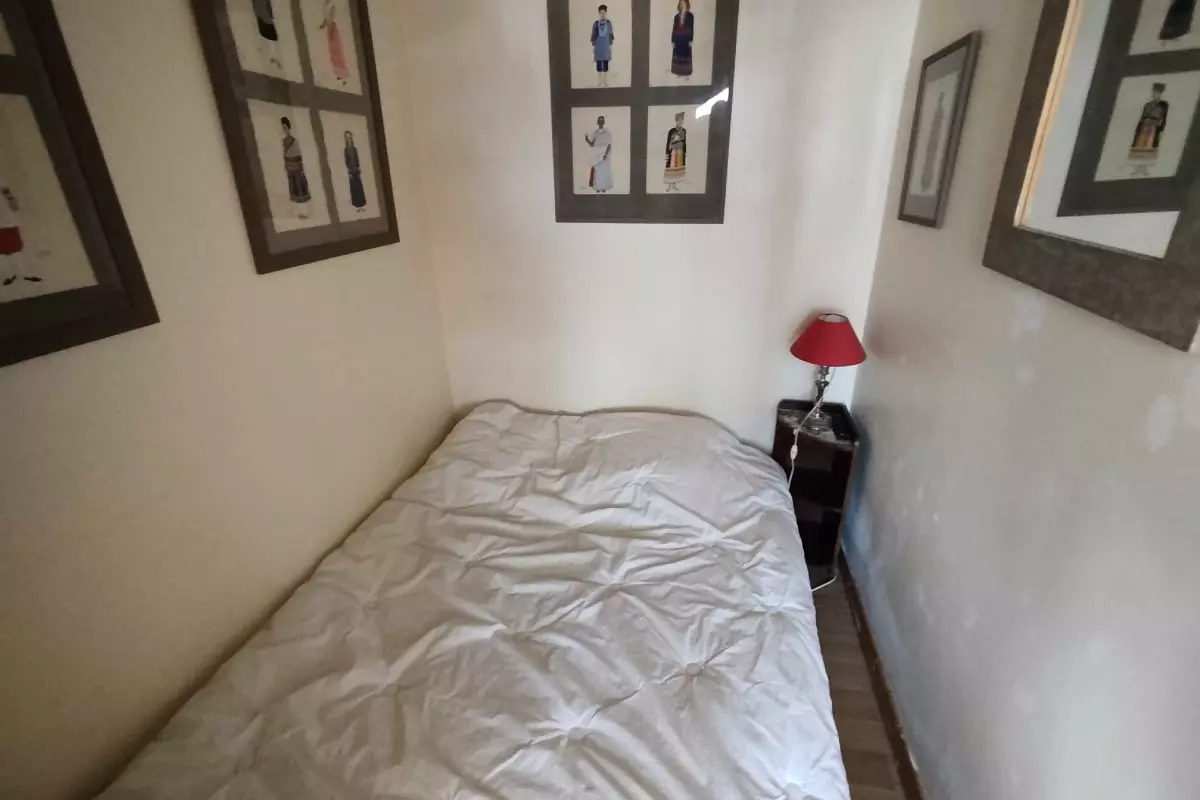 Le coin nuit est aménagé avec un lit double de 140x199, offrant un espace reposant après une journée en extérieur.