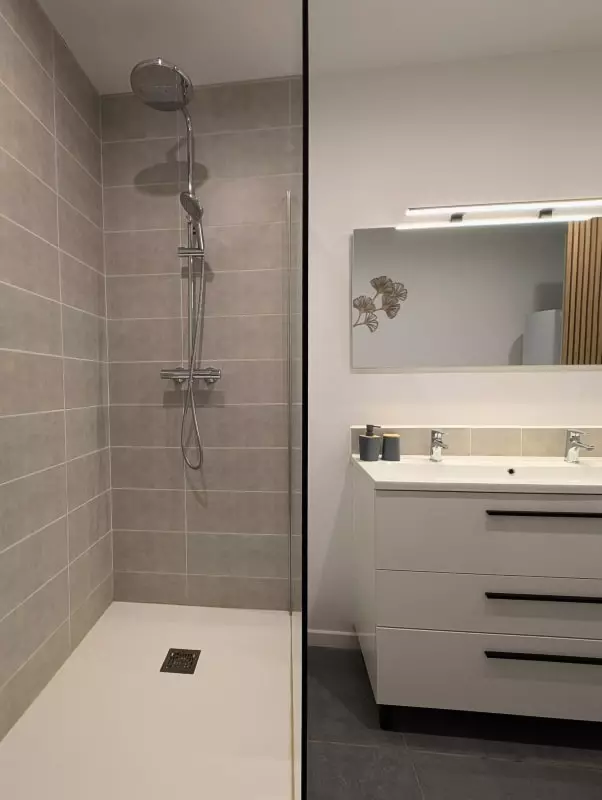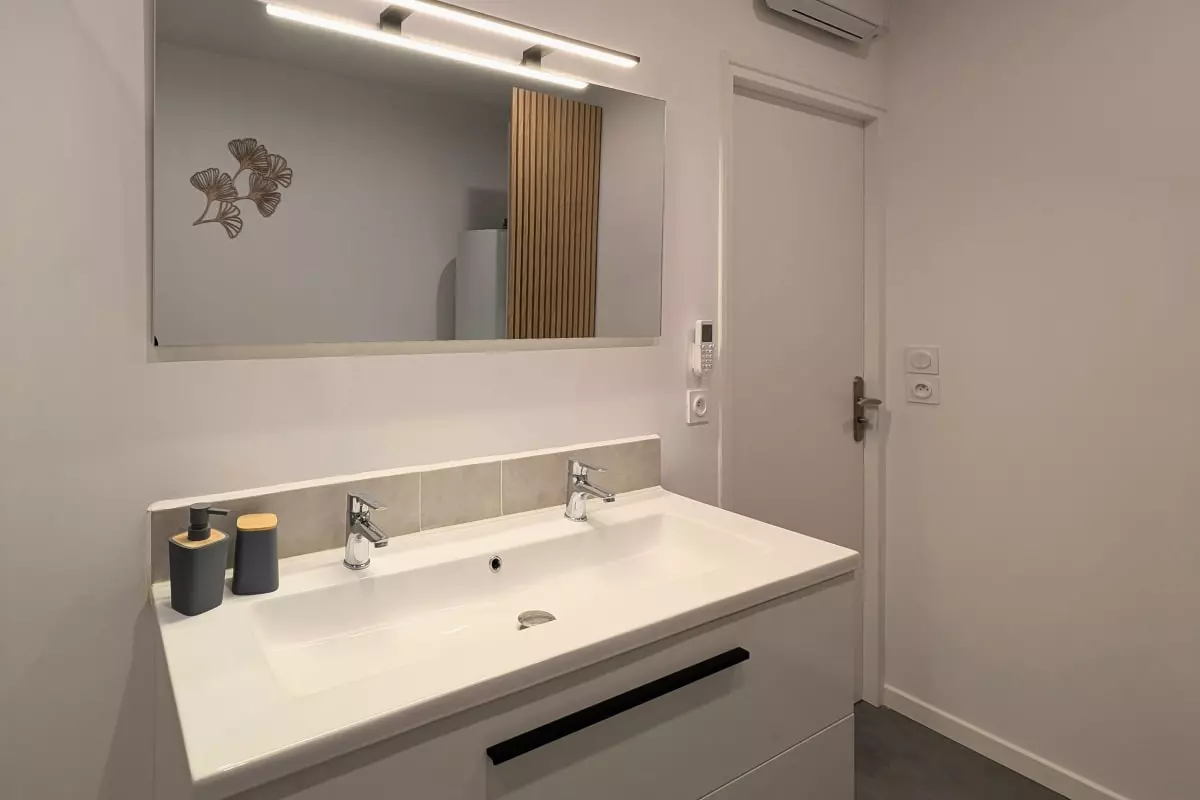 Bienvenue à L’ÉCRIN DE LA VÉRONNIÈRE, un appartement de 75 m² de plain-pied, pensé pour offrir le confort d’une maison avec extérieur, à seulement 3 minutes à pied de la plage de la Véronnière.