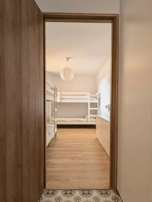 - 1 chambre familiale avec 2 lits superposés (90 x 200) soit 4 couchages